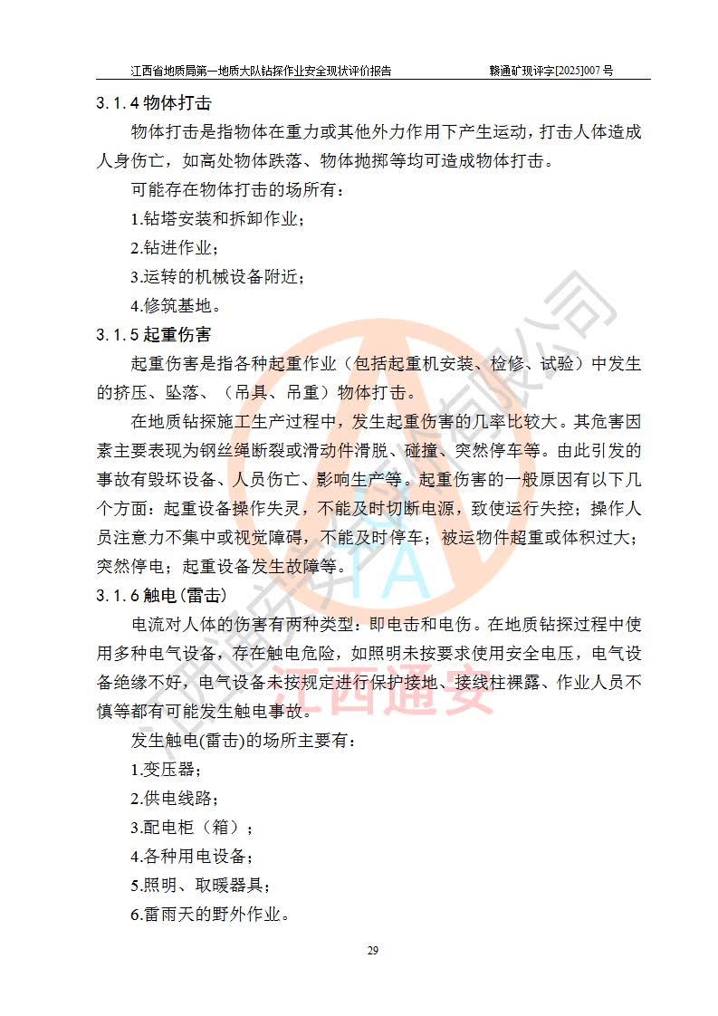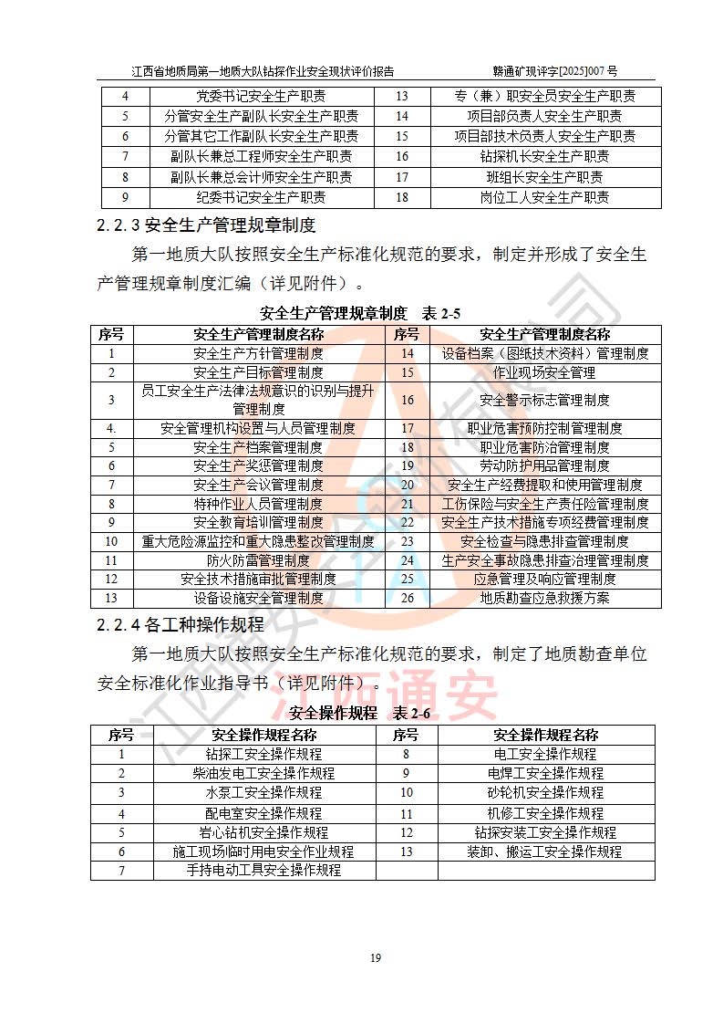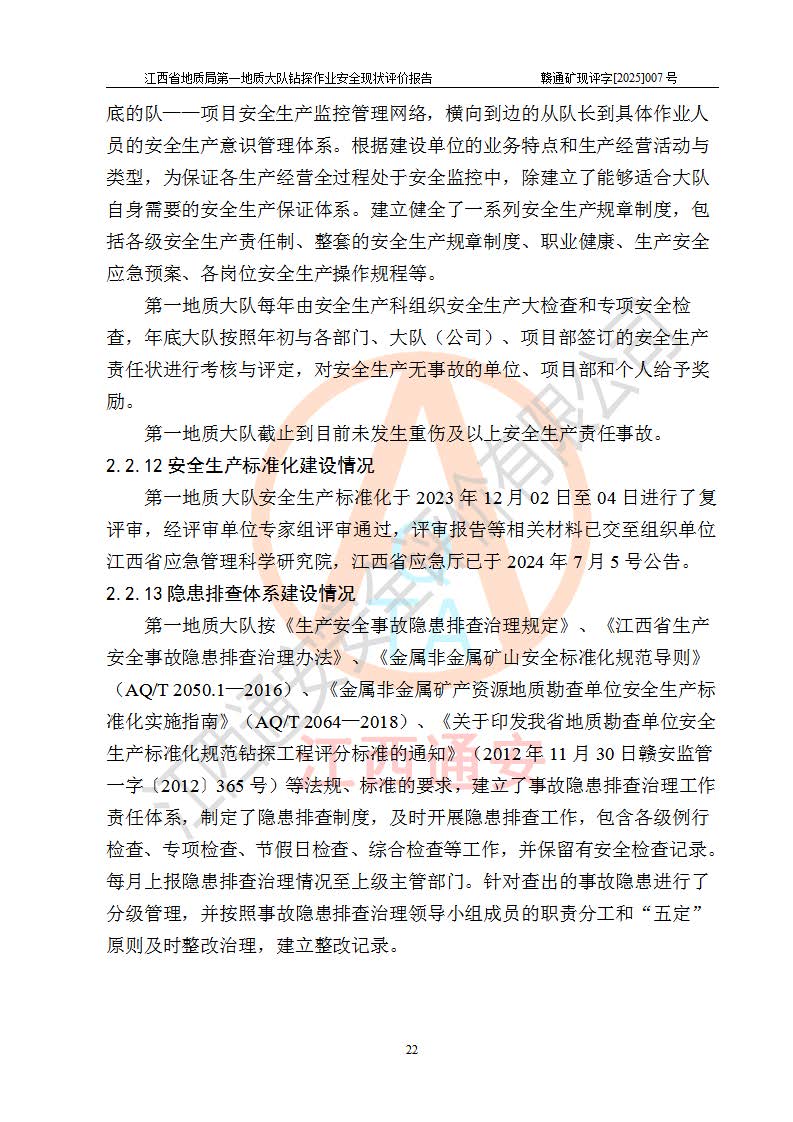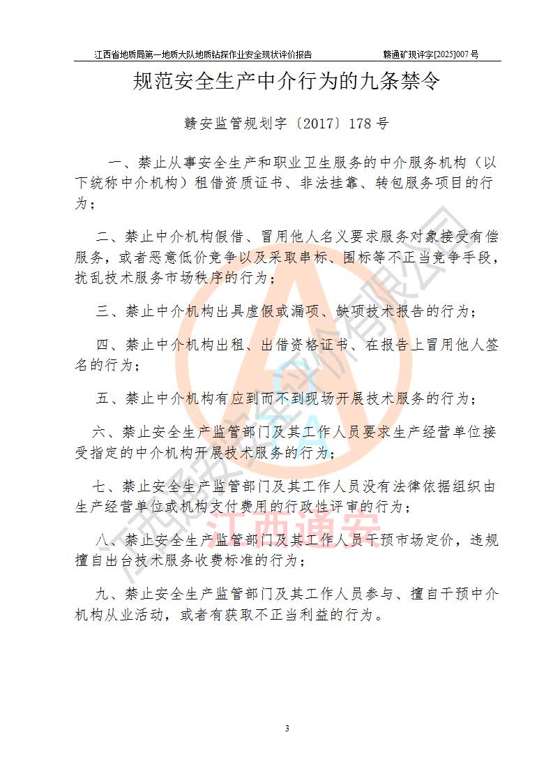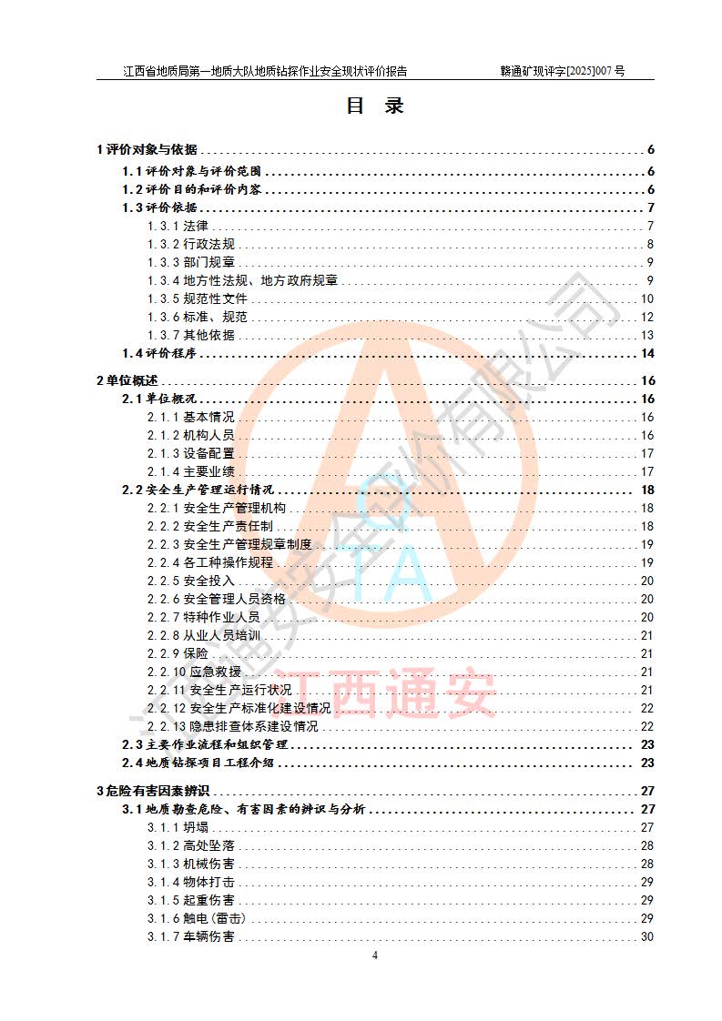報(bào)告名稱 | 江西省地質(zhì)局**地質(zhì)大隊(duì)地質(zhì)鉆探作業(yè)安全現(xiàn)狀評價(jià)報(bào)告 | |||||