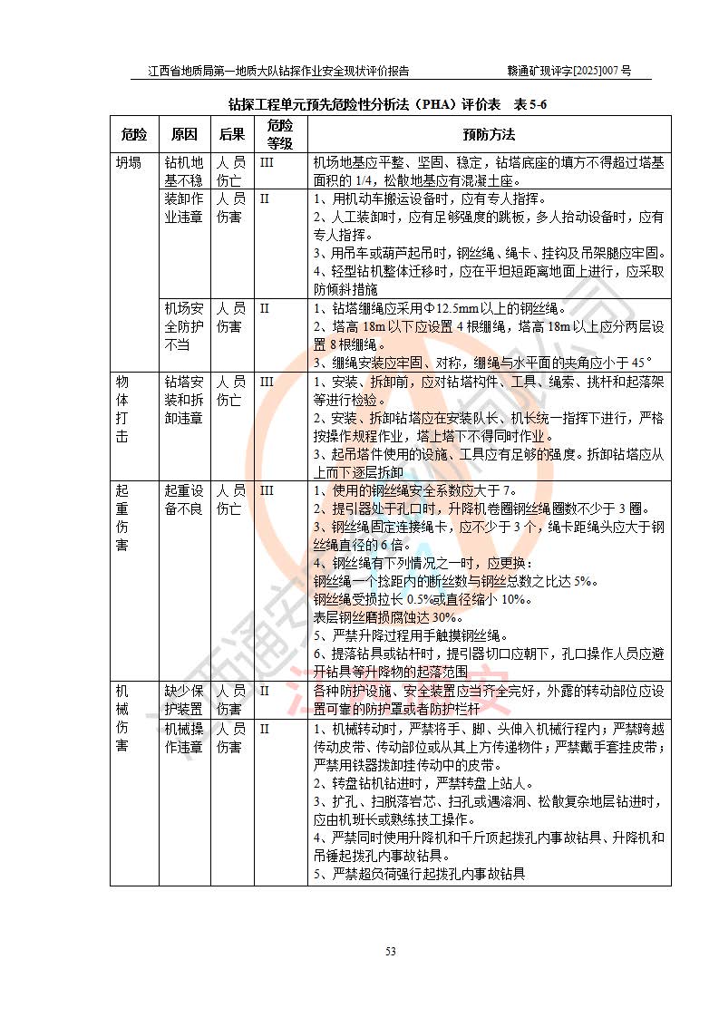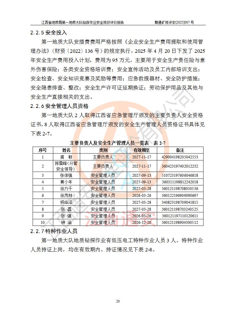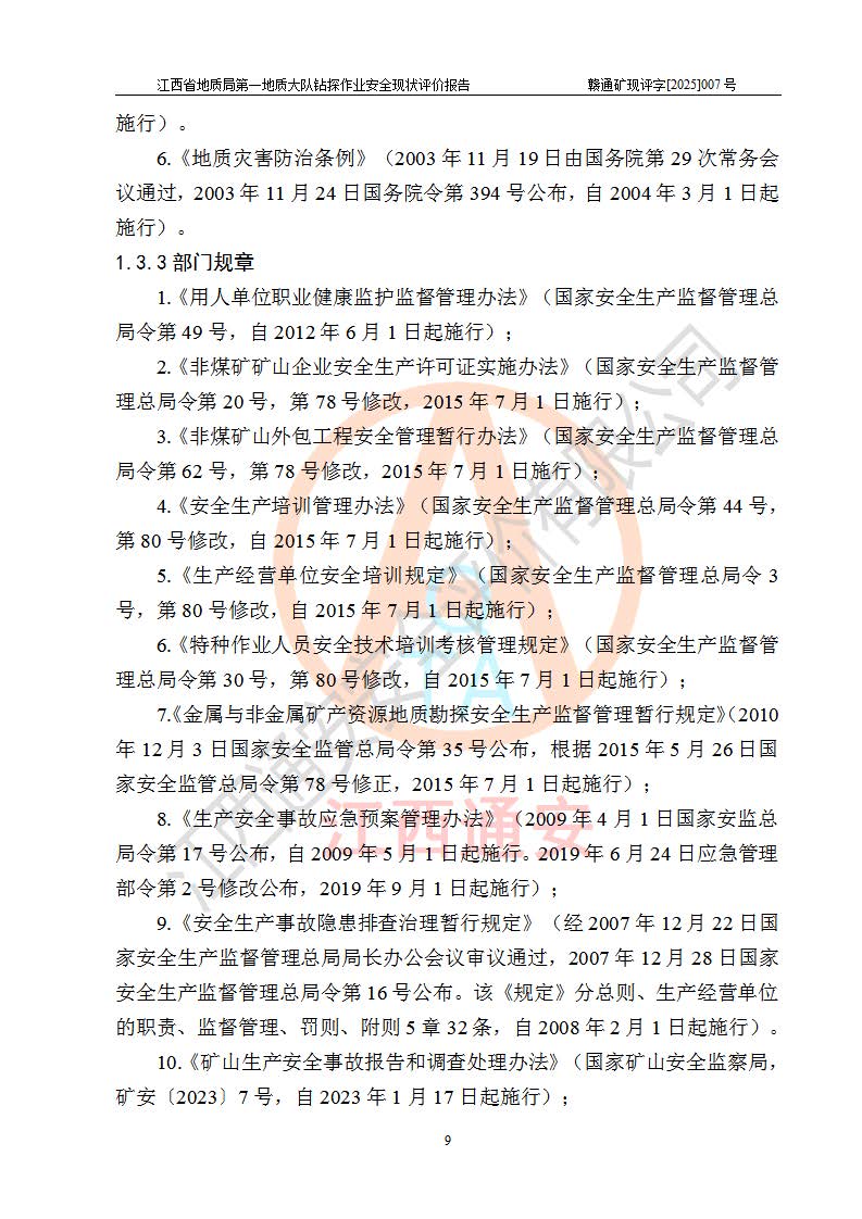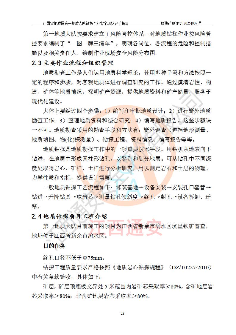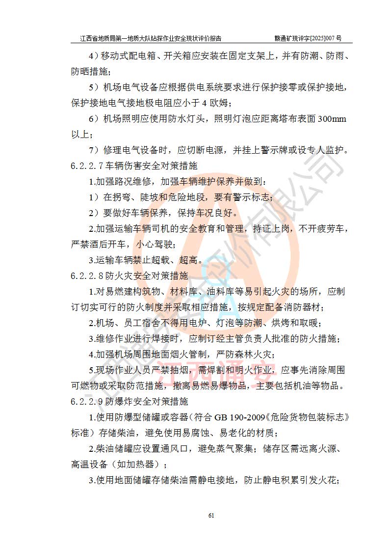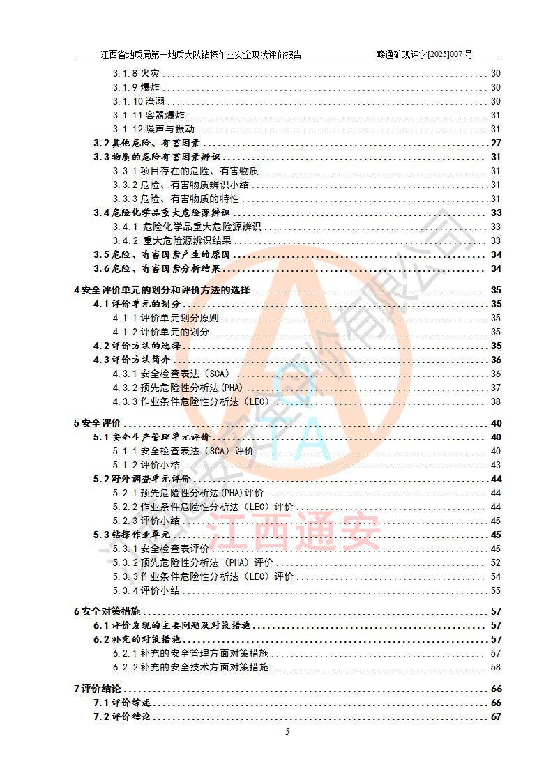 報(bào)告名稱 | 江西省地質(zhì)局**地質(zhì)大隊(duì)地質(zhì)鉆探作業(yè)安全現(xiàn)狀評價(jià)報(bào)告 | |||||