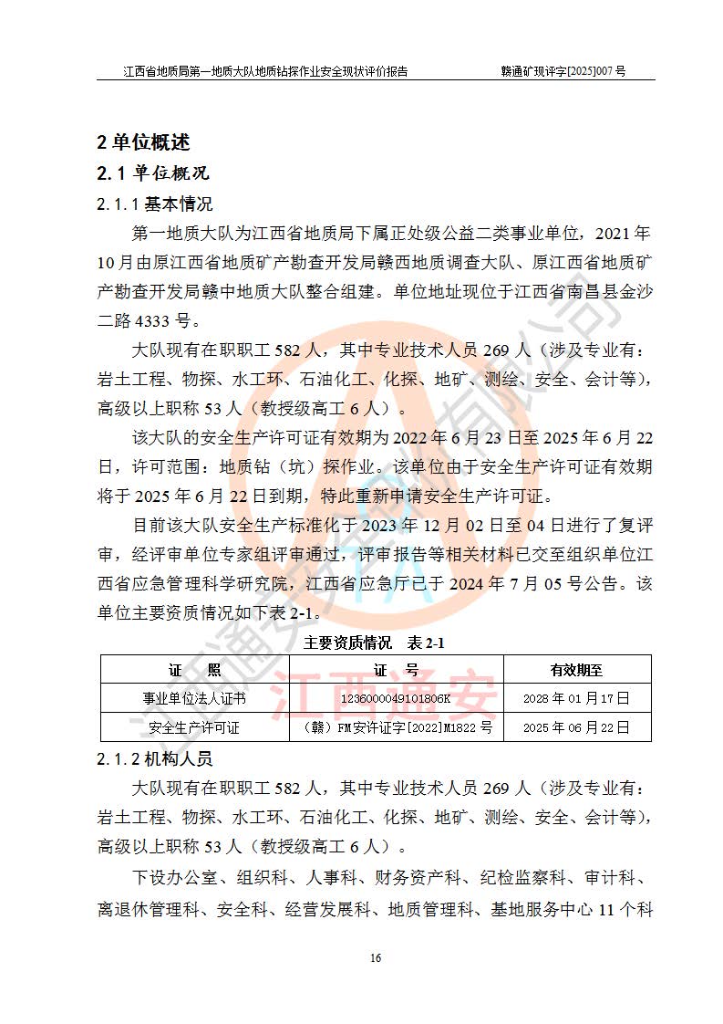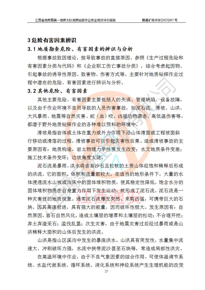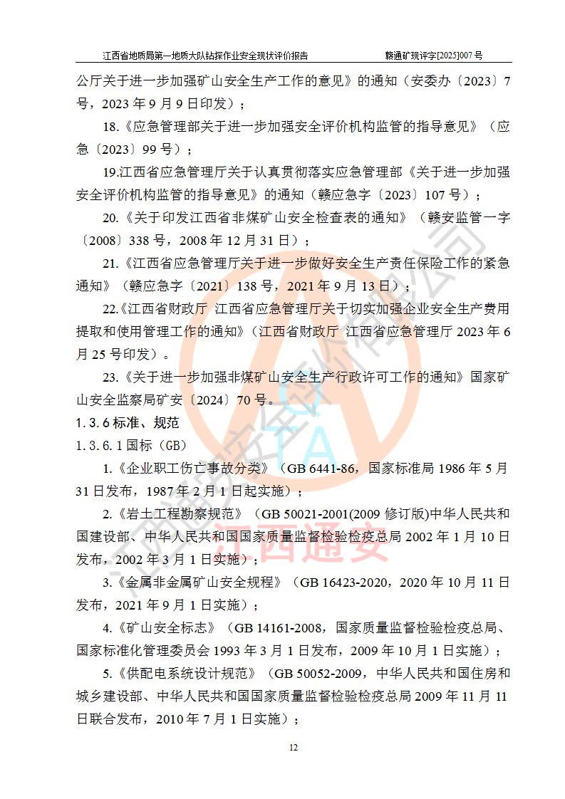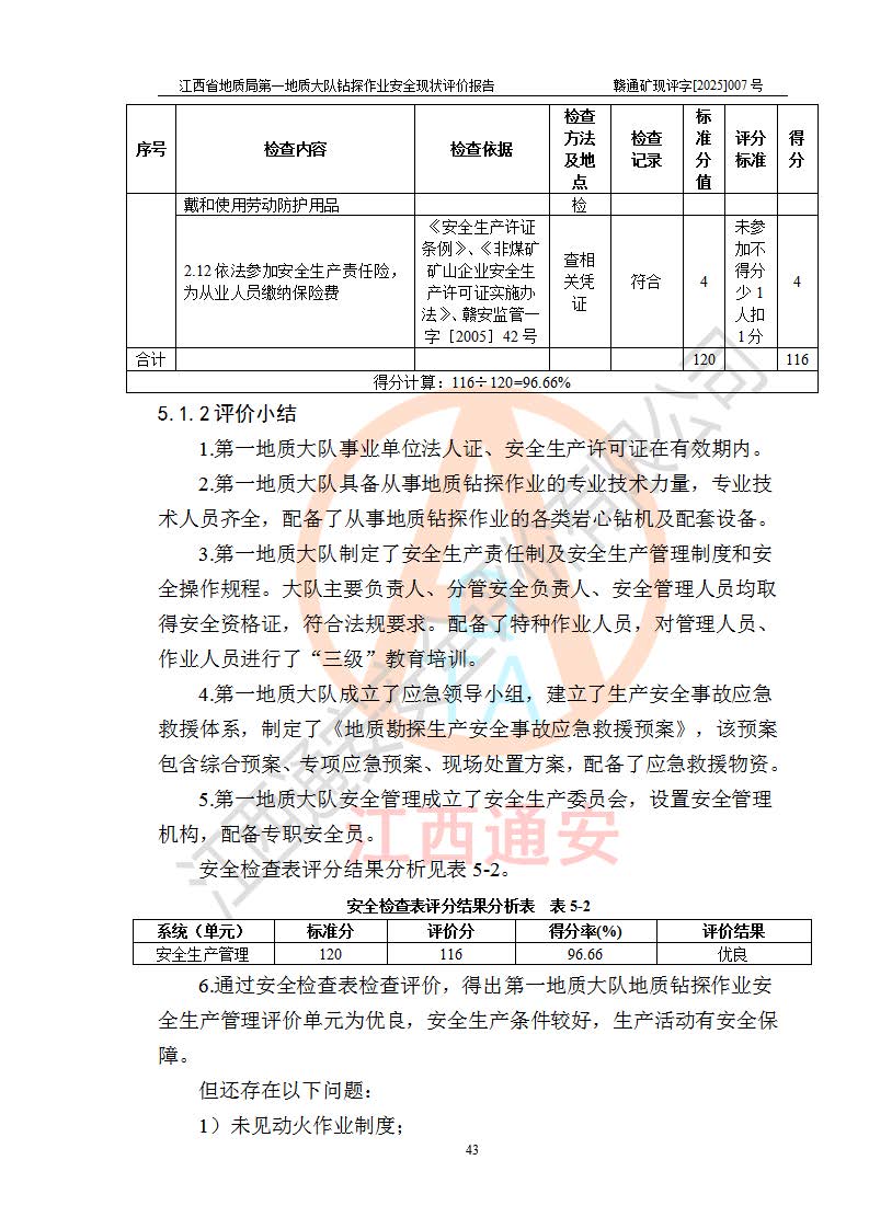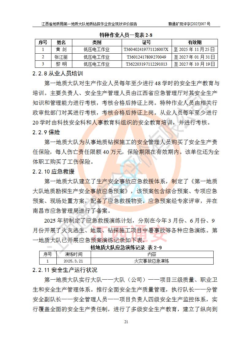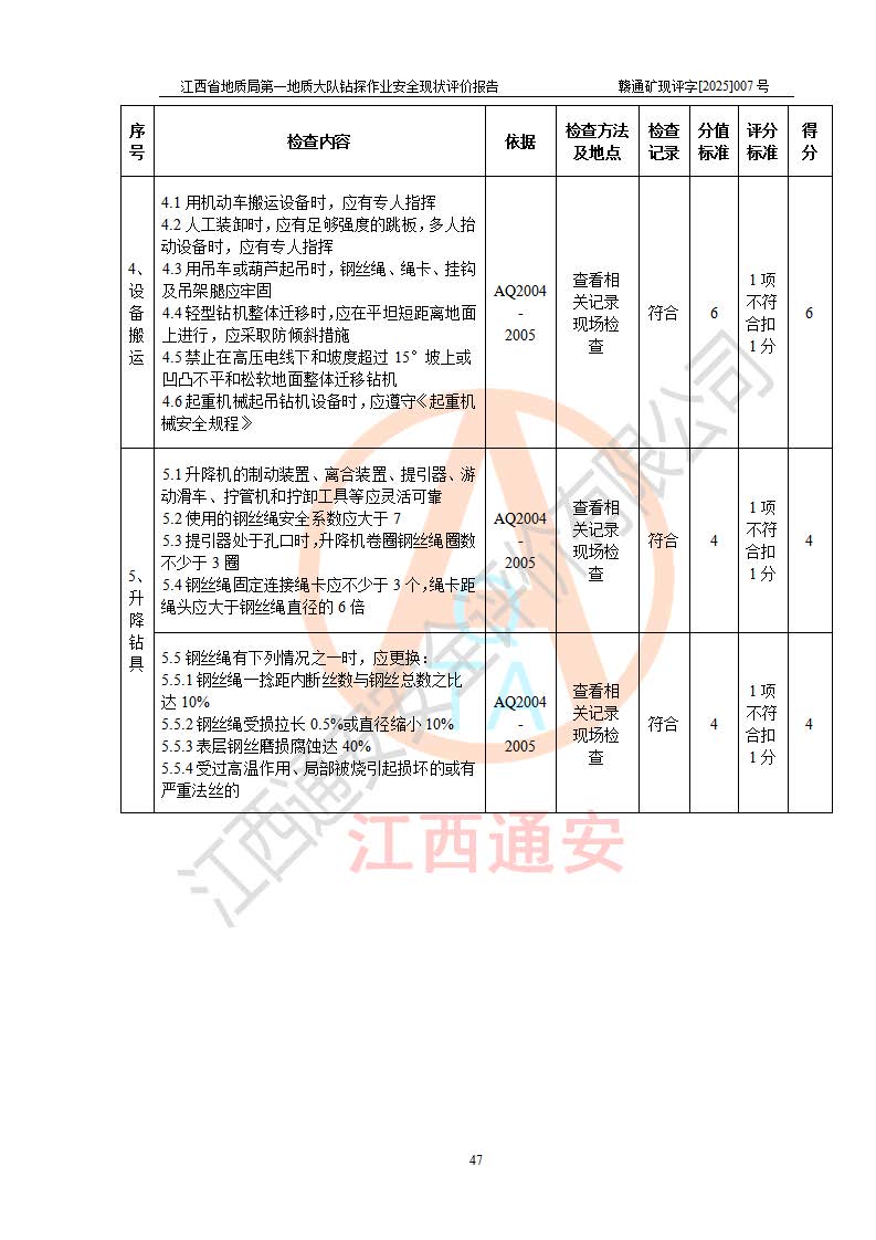 報(bào)告名稱 | 江西省地質(zhì)局**地質(zhì)大隊(duì)地質(zhì)鉆探作業(yè)安全現(xiàn)狀評價(jià)報(bào)告 | |||||