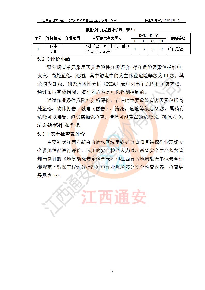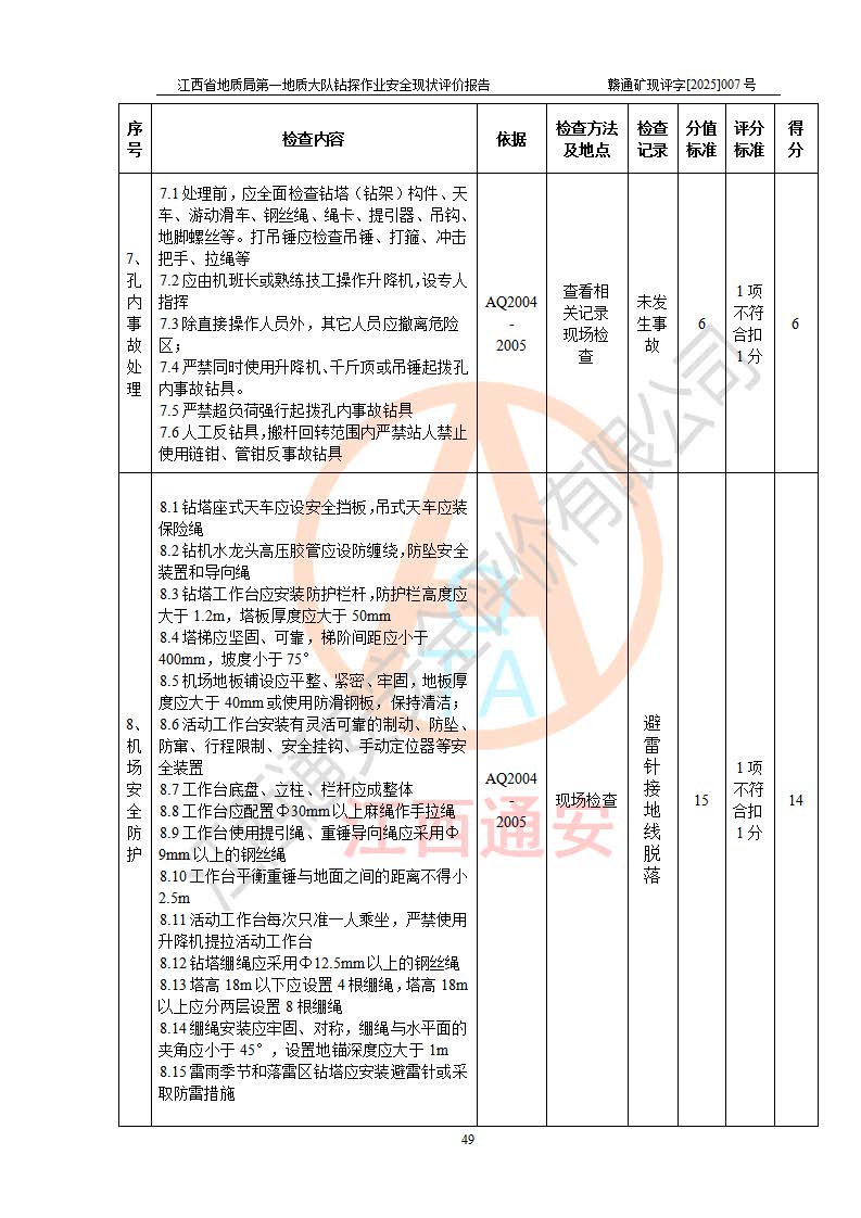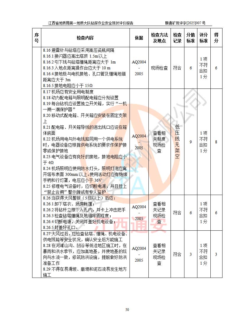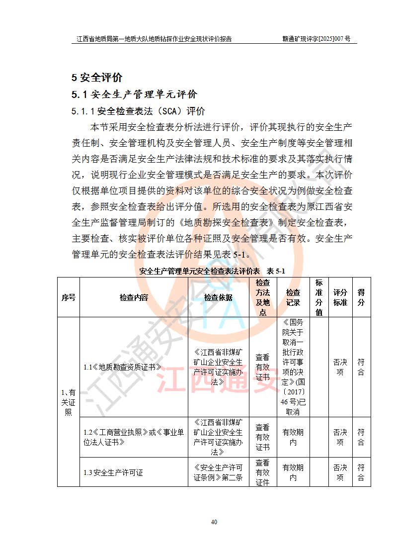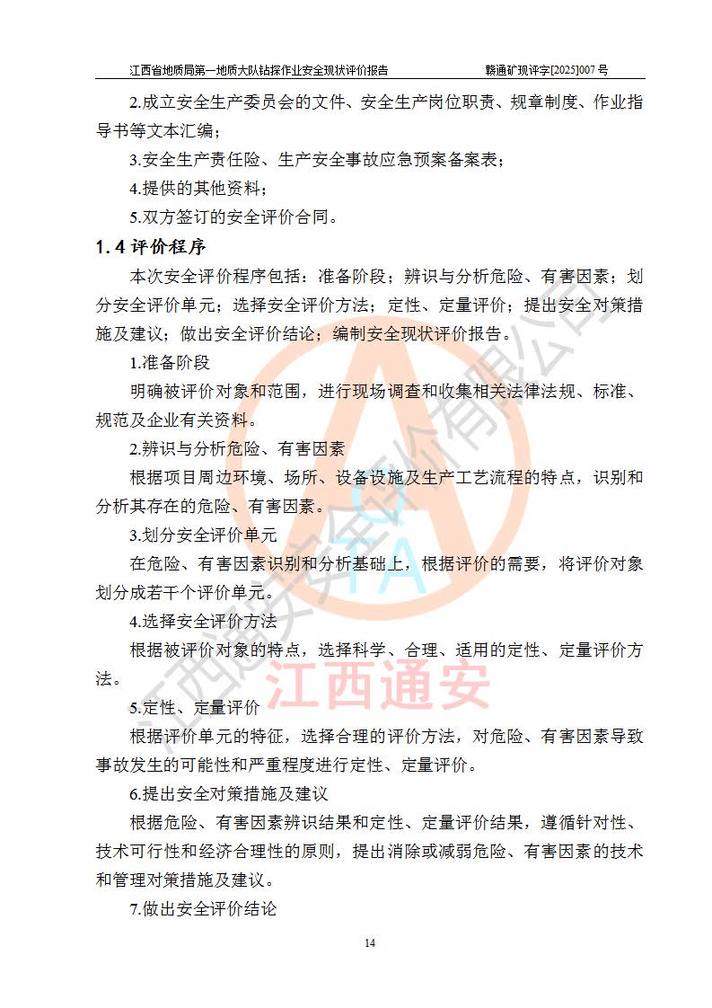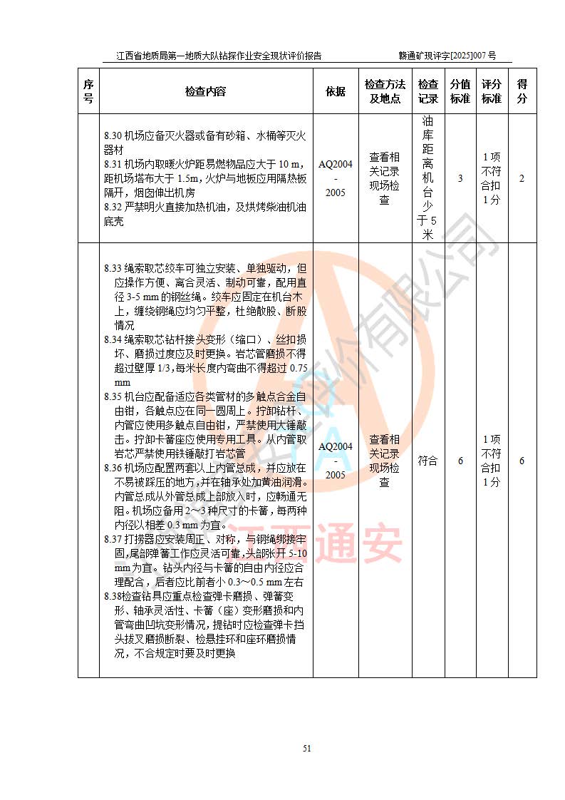 報(bào)告名稱 | 江西省地質(zhì)局**地質(zhì)大隊(duì)地質(zhì)鉆探作業(yè)安全現(xiàn)狀評價(jià)報(bào)告 | |||||