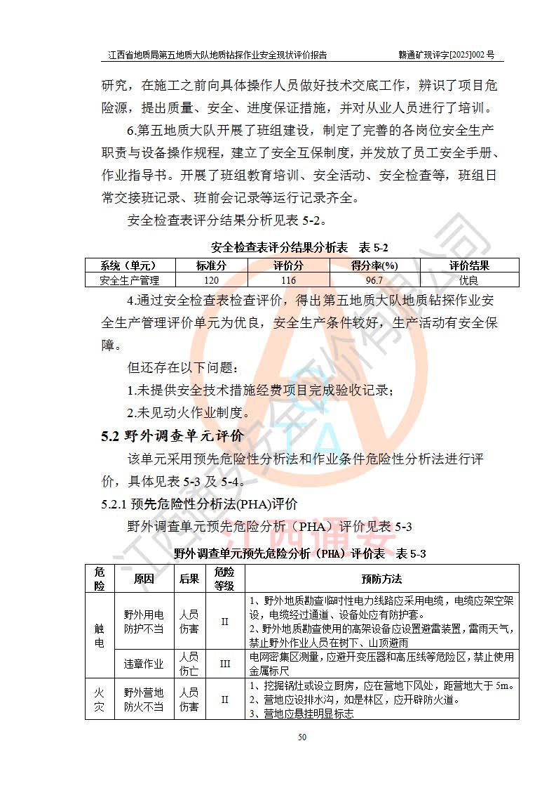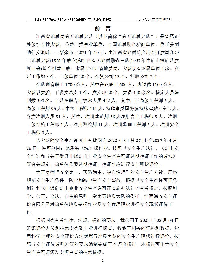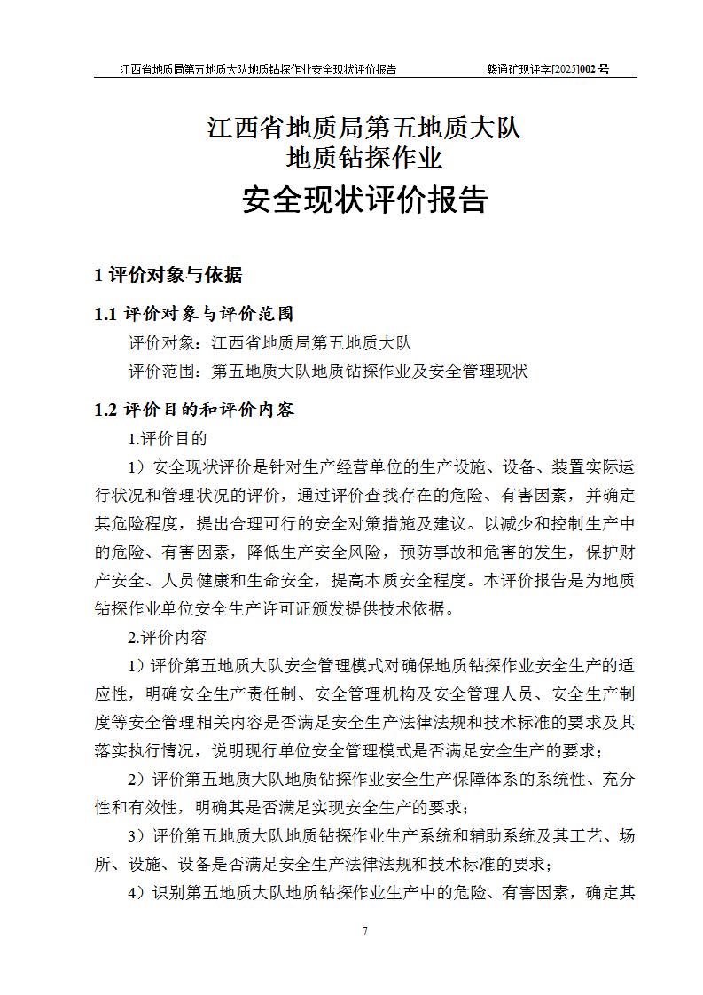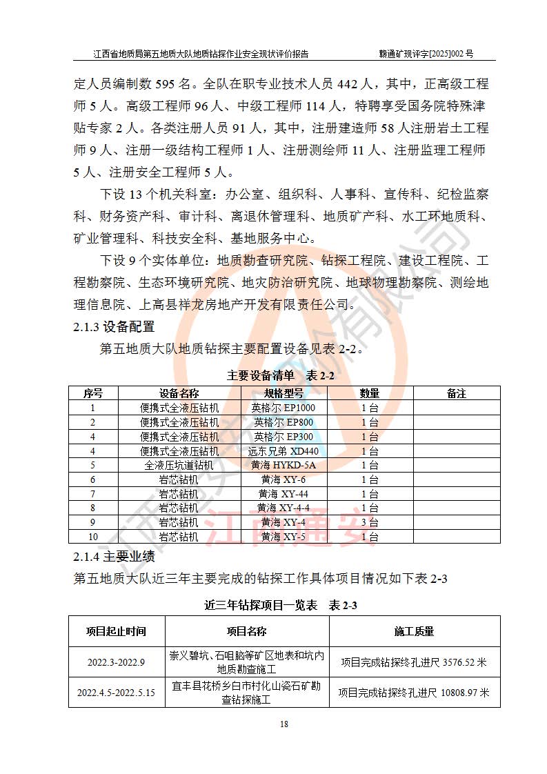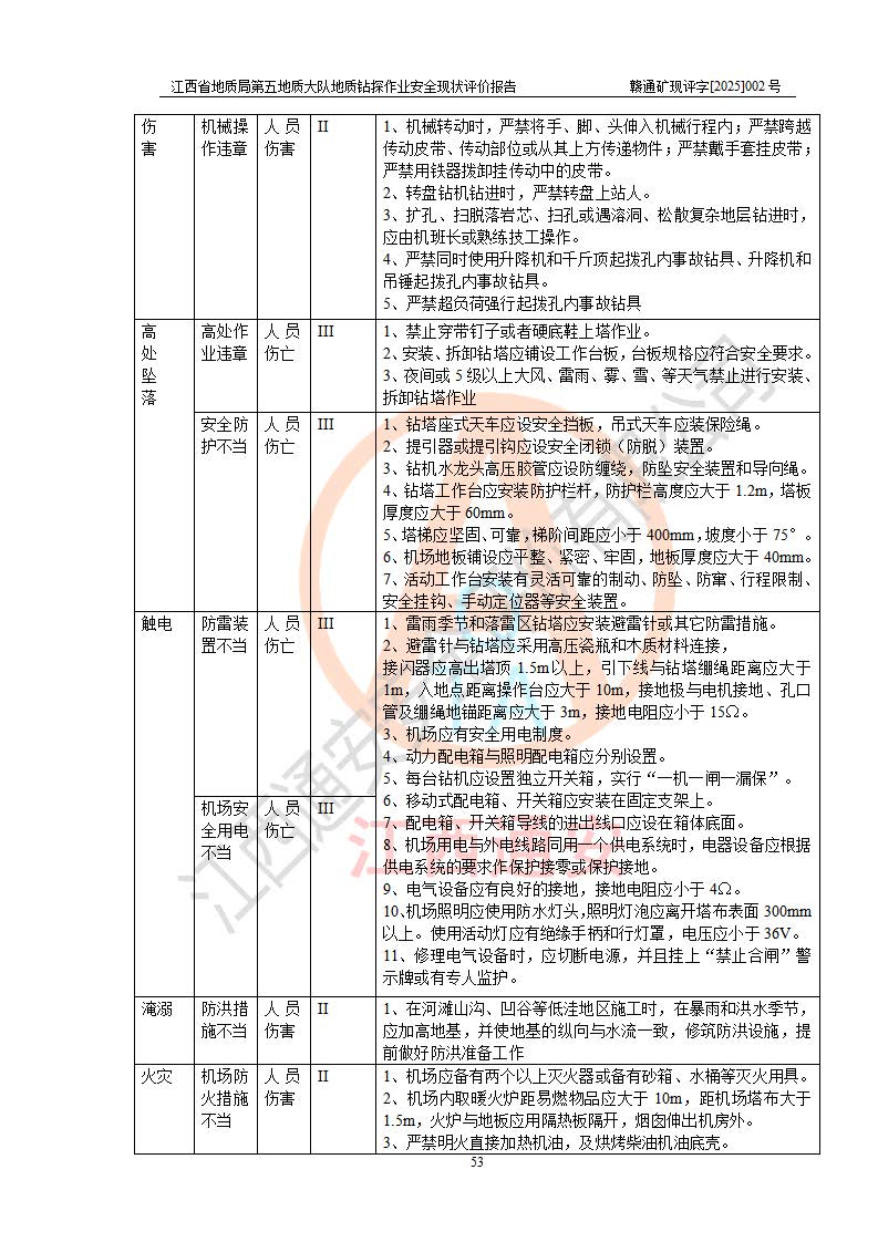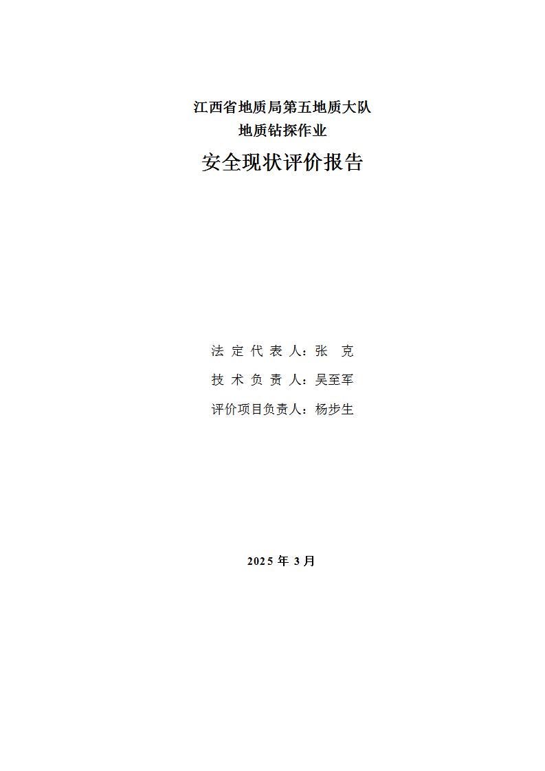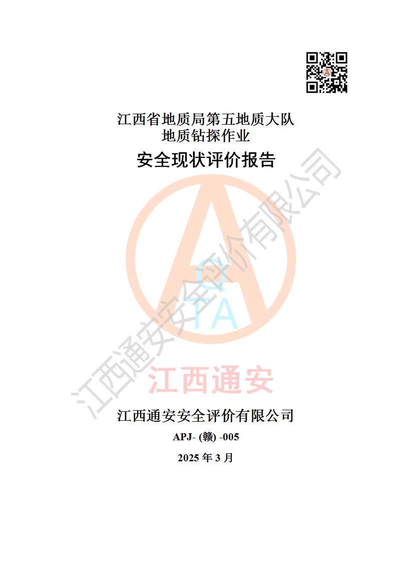 報告名稱 | 江西省地質(zhì)局第五地質(zhì)大隊地質(zhì)鉆探作業(yè)安全現(xiàn)狀評價報告 | |||||