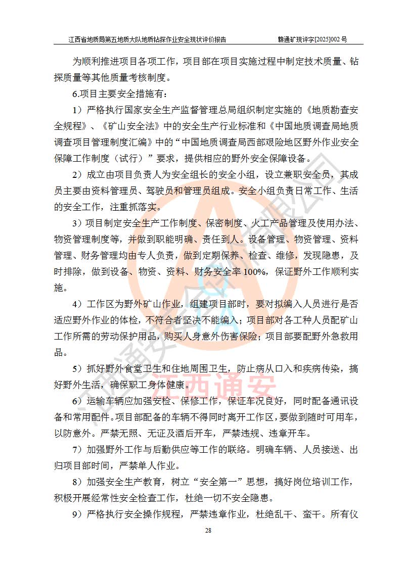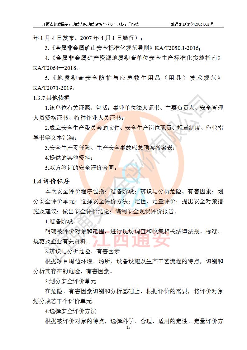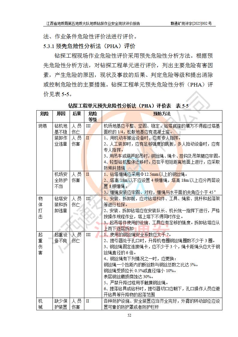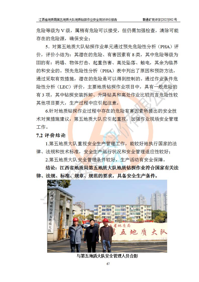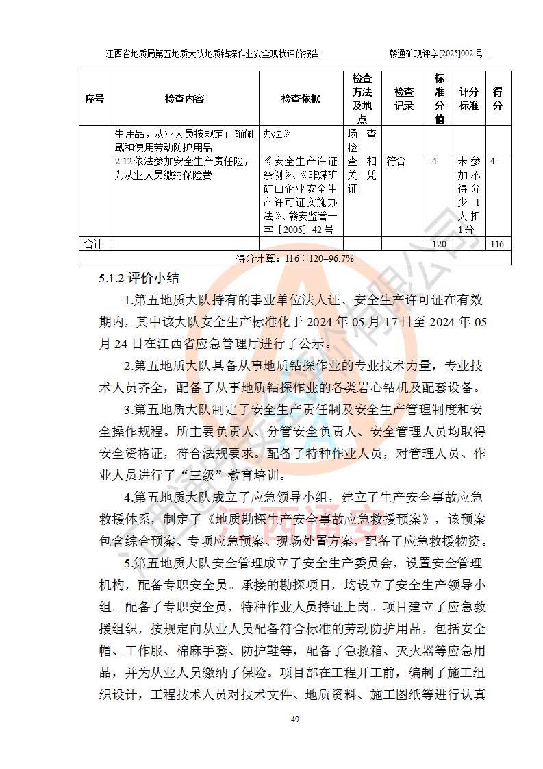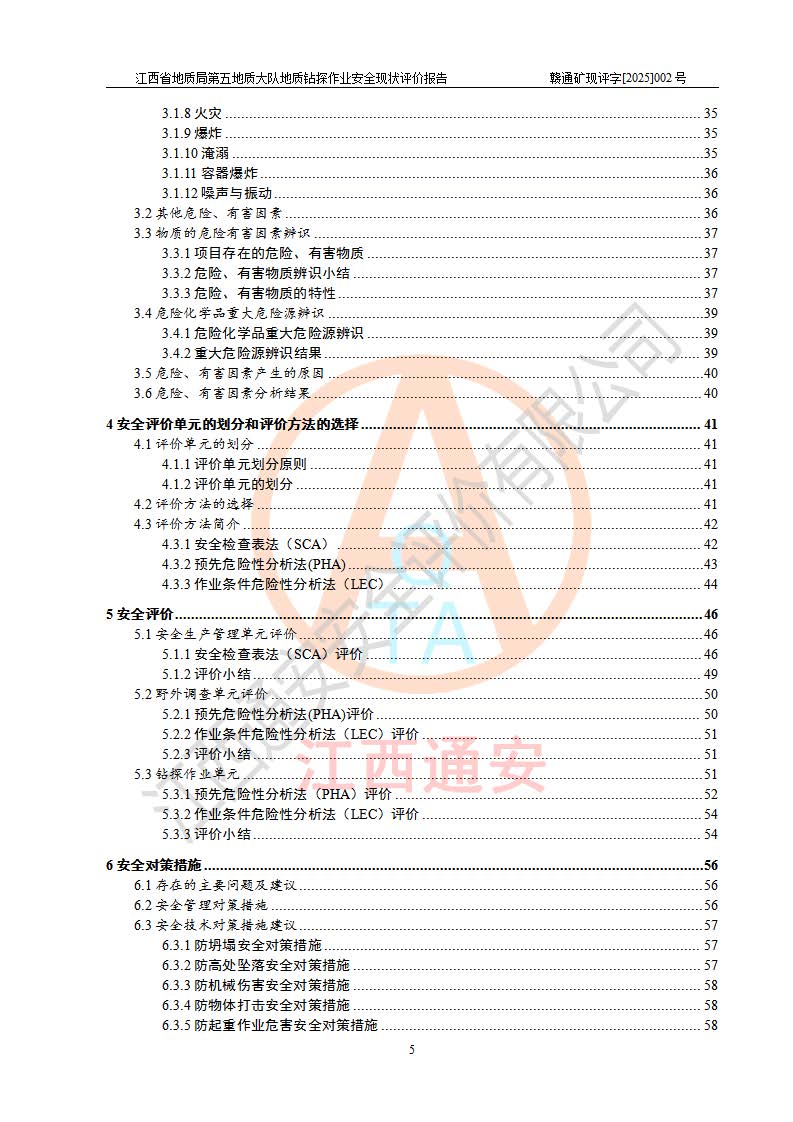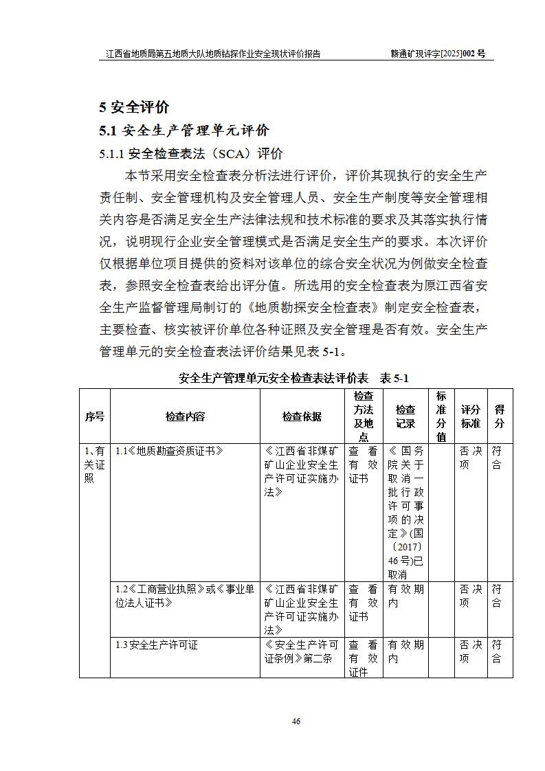 報告名稱 | 江西省地質(zhì)局第五地質(zhì)大隊地質(zhì)鉆探作業(yè)安全現(xiàn)狀評價報告 | |||||