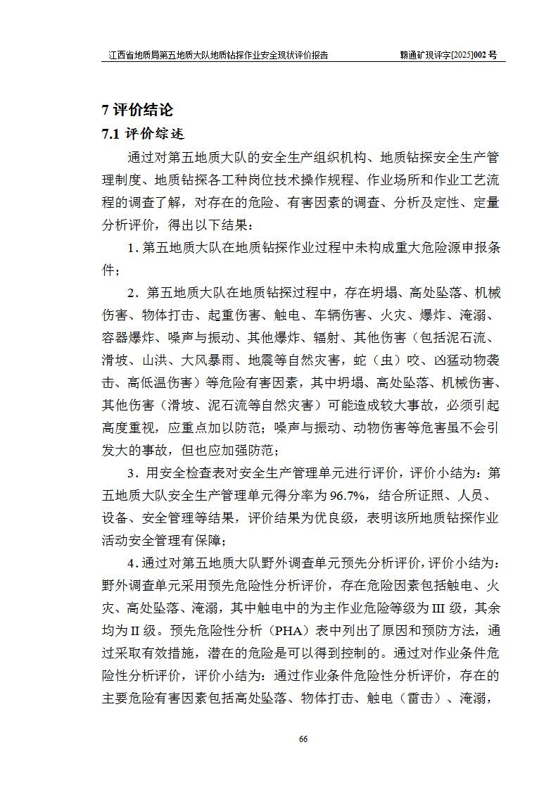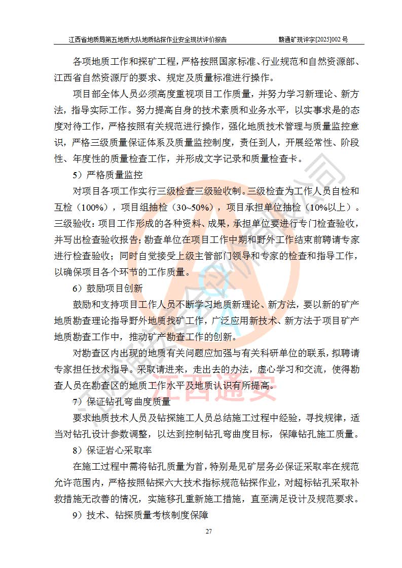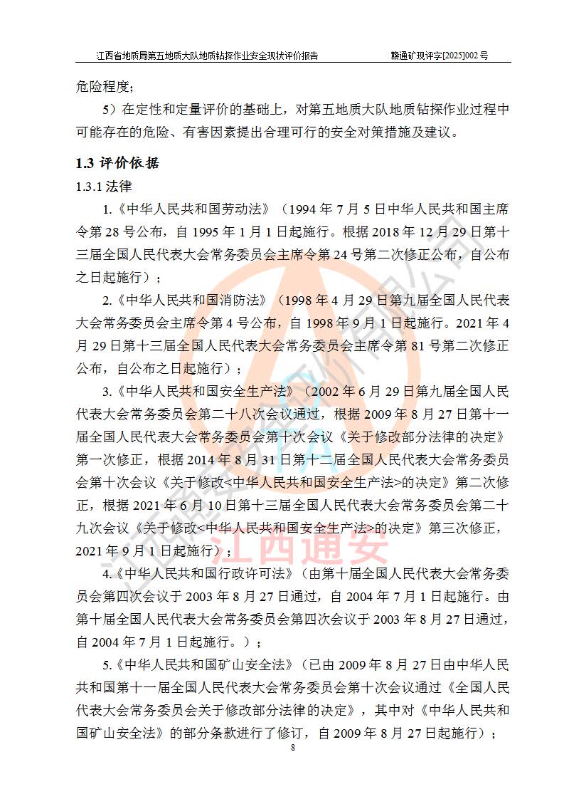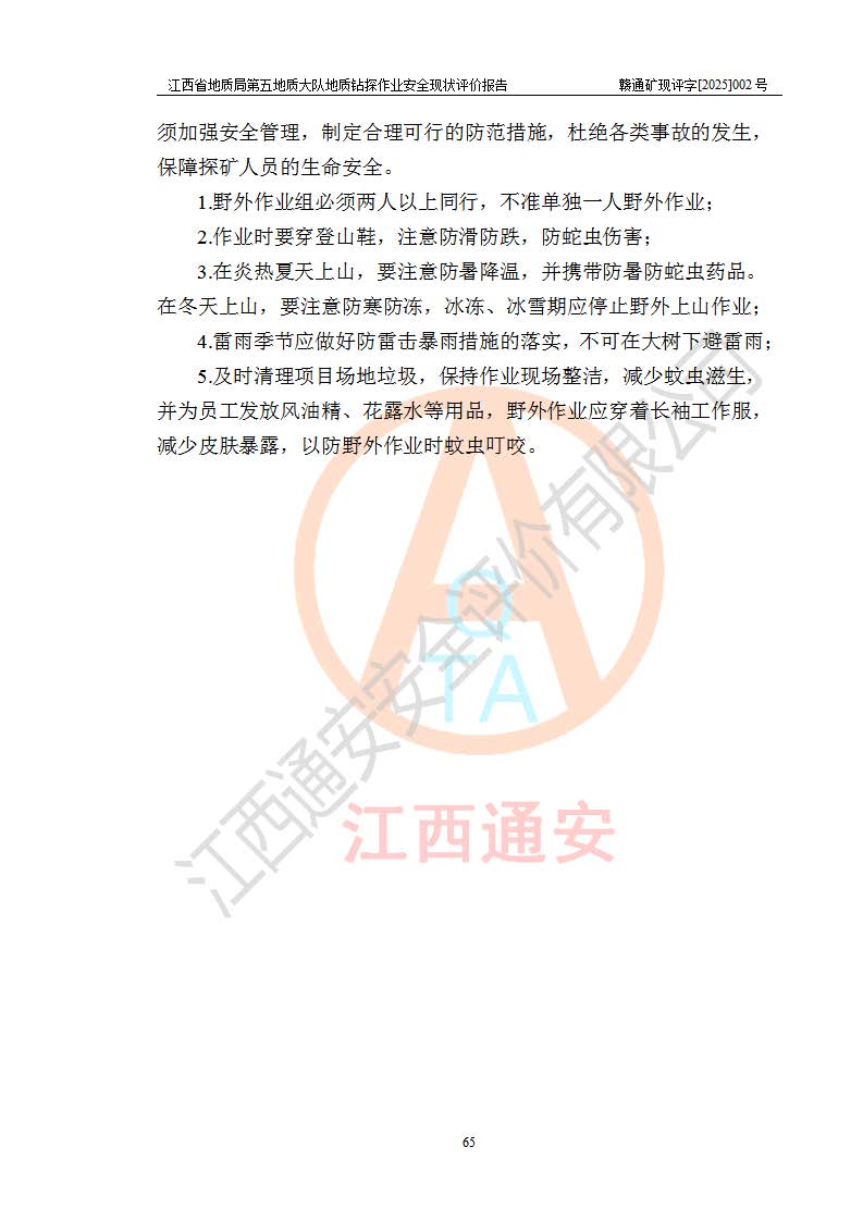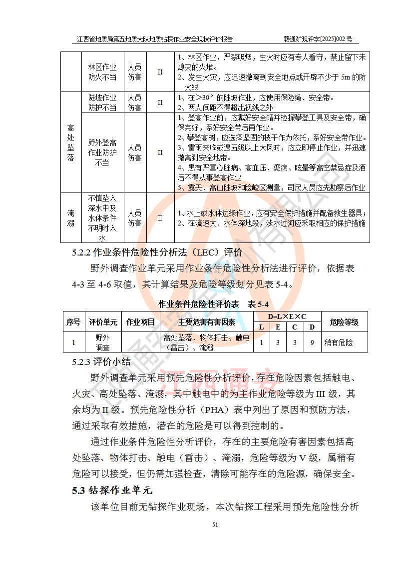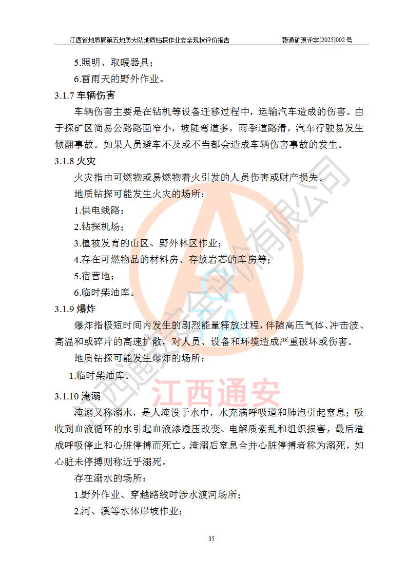 報告名稱 | 江西省地質(zhì)局第五地質(zhì)大隊地質(zhì)鉆探作業(yè)安全現(xiàn)狀評價報告 | |||||