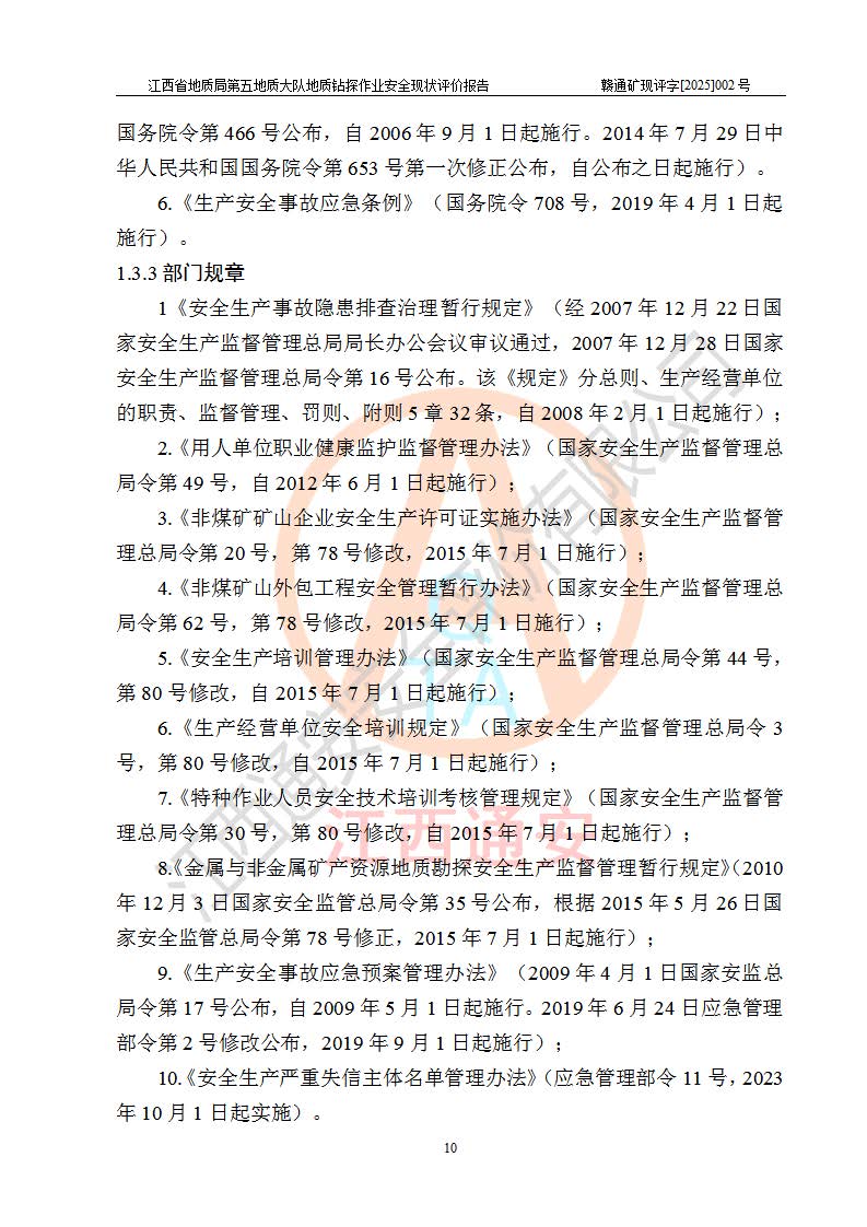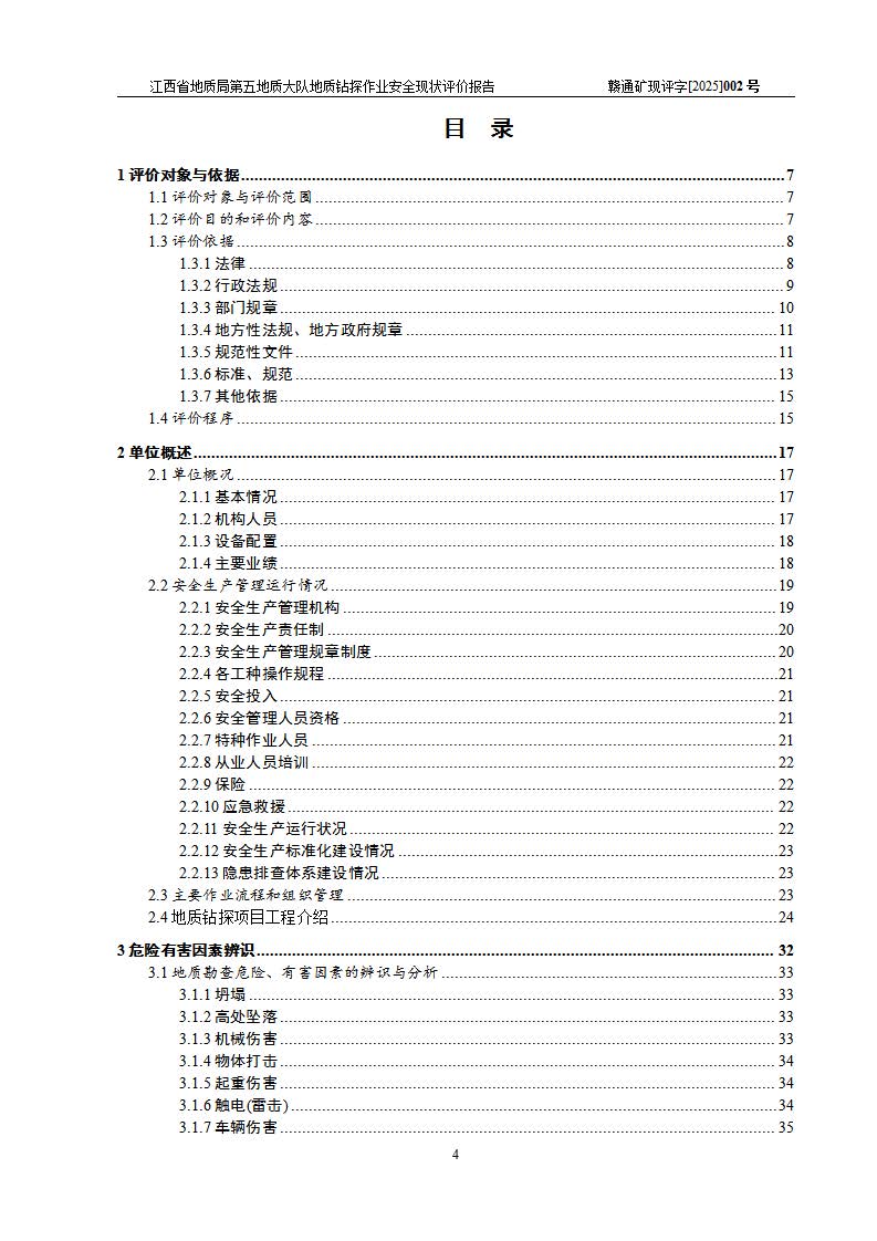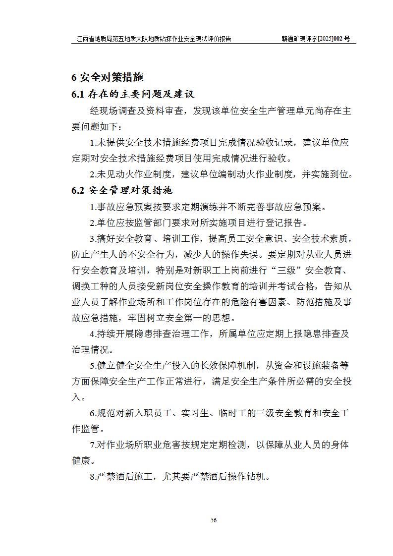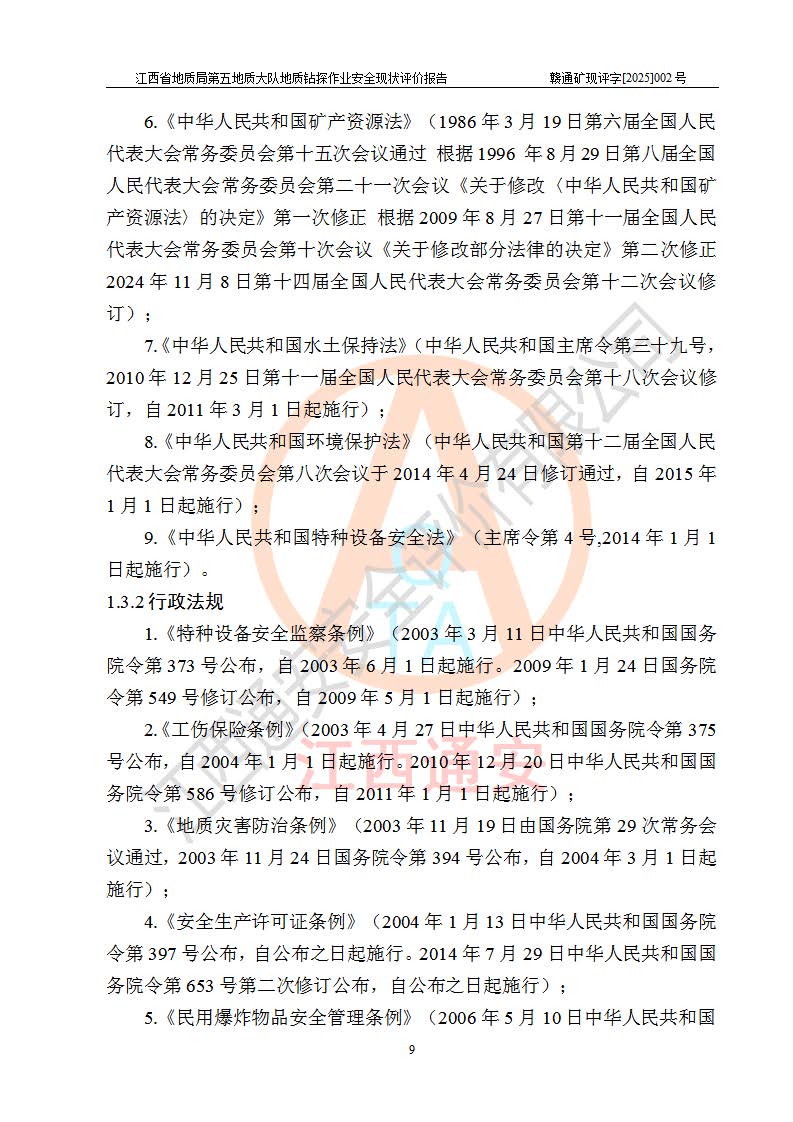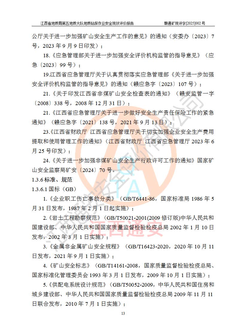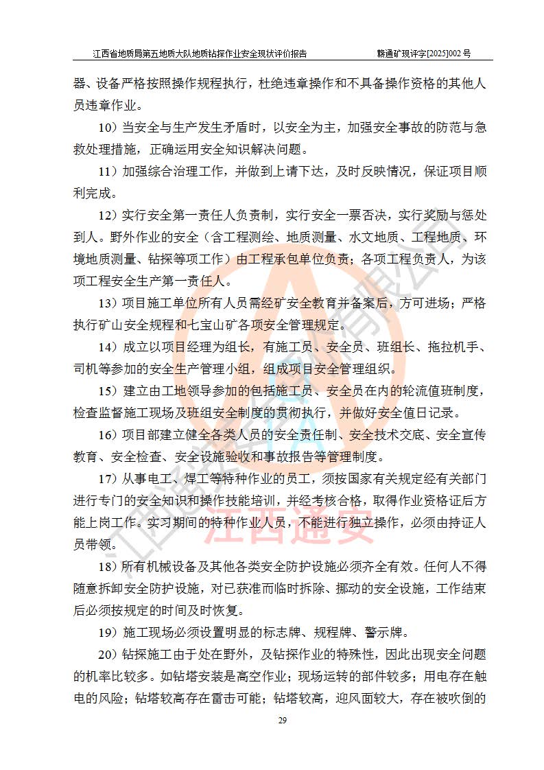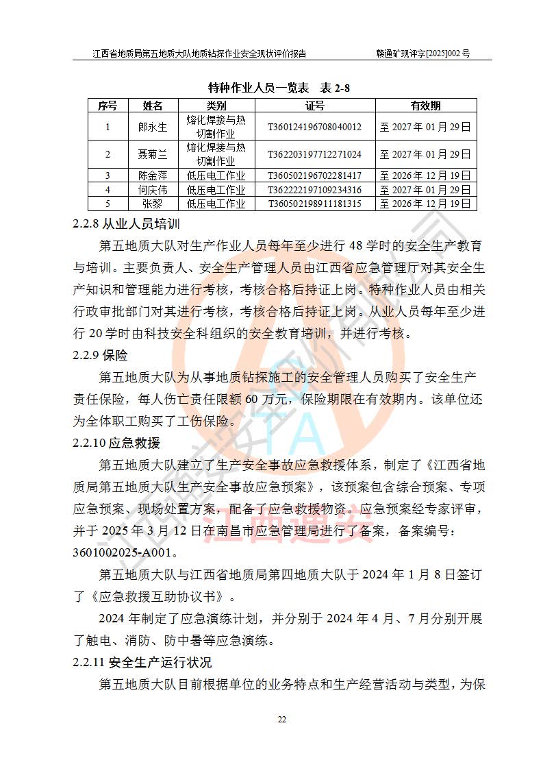 報告名稱 | 江西省地質(zhì)局第五地質(zhì)大隊地質(zhì)鉆探作業(yè)安全現(xiàn)狀評價報告 | |||||
