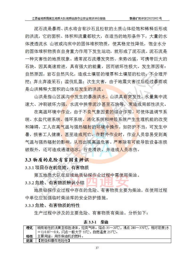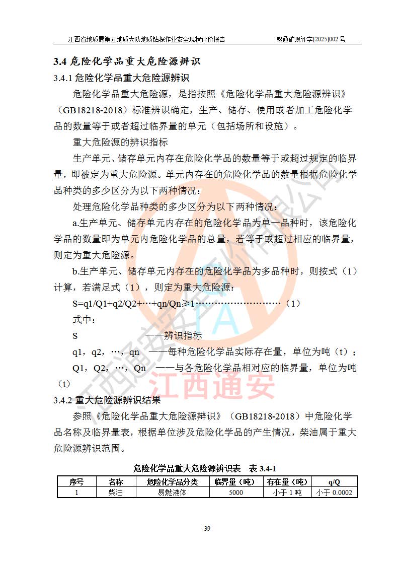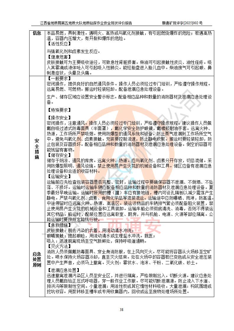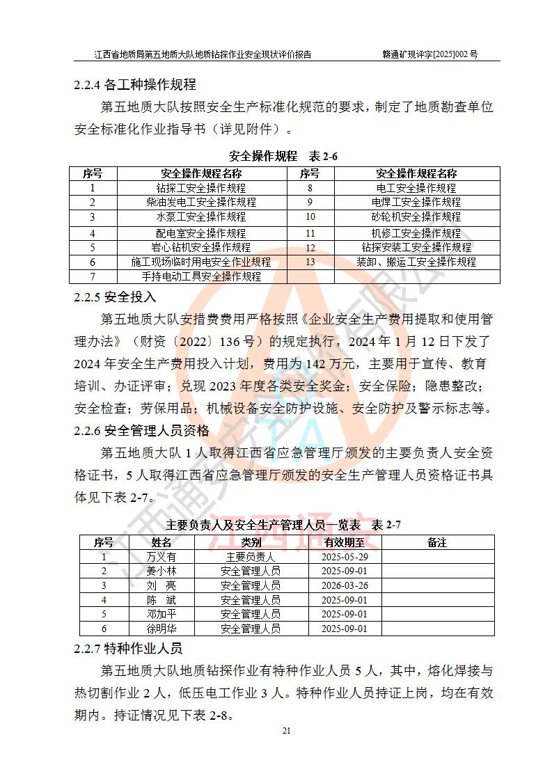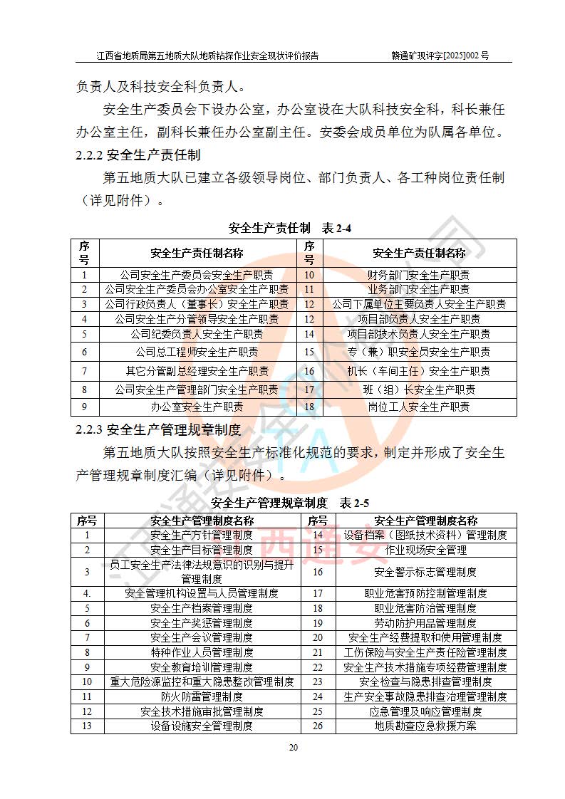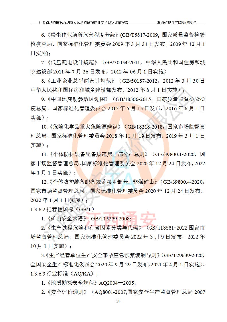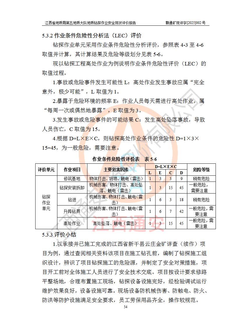 報告名稱 | 江西省地質(zhì)局第五地質(zhì)大隊地質(zhì)鉆探作業(yè)安全現(xiàn)狀評價報告 | |||||