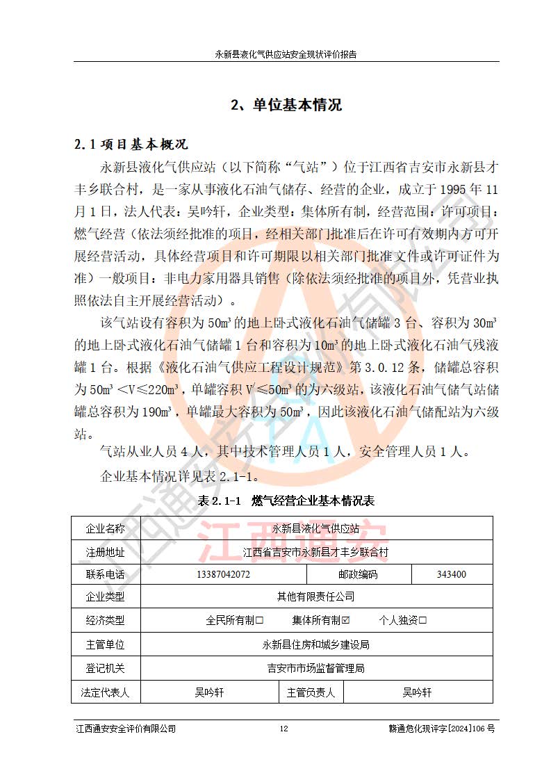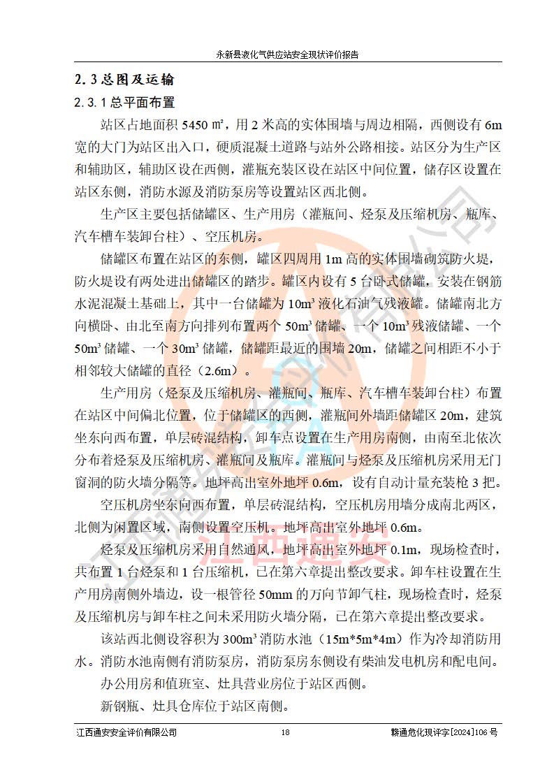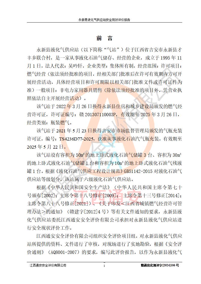 評價報告名稱 | 永新縣液化氣供應站安全現(xiàn)狀評價報告 | |||