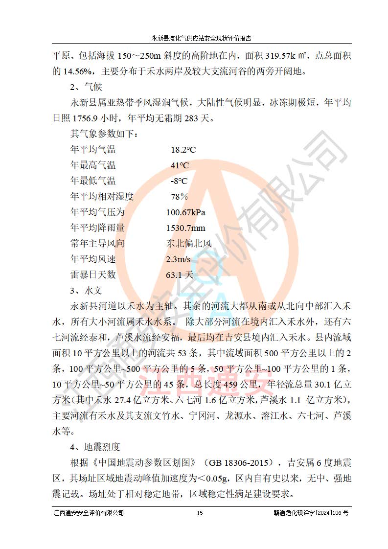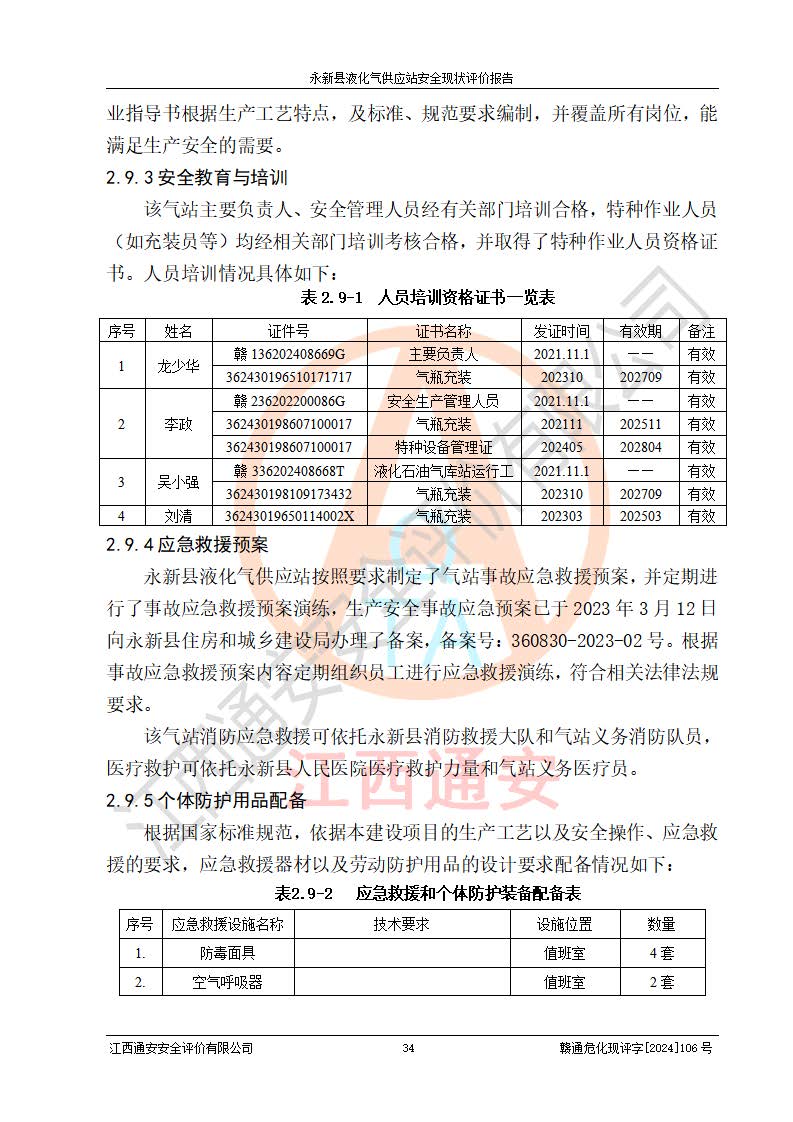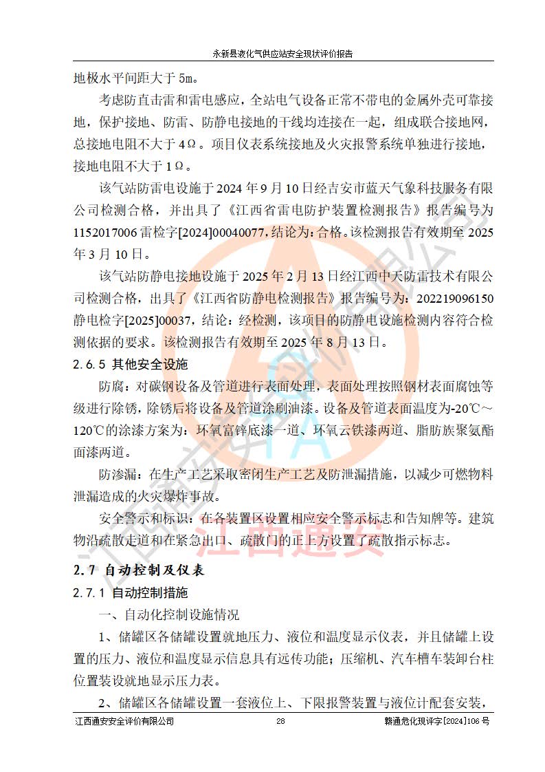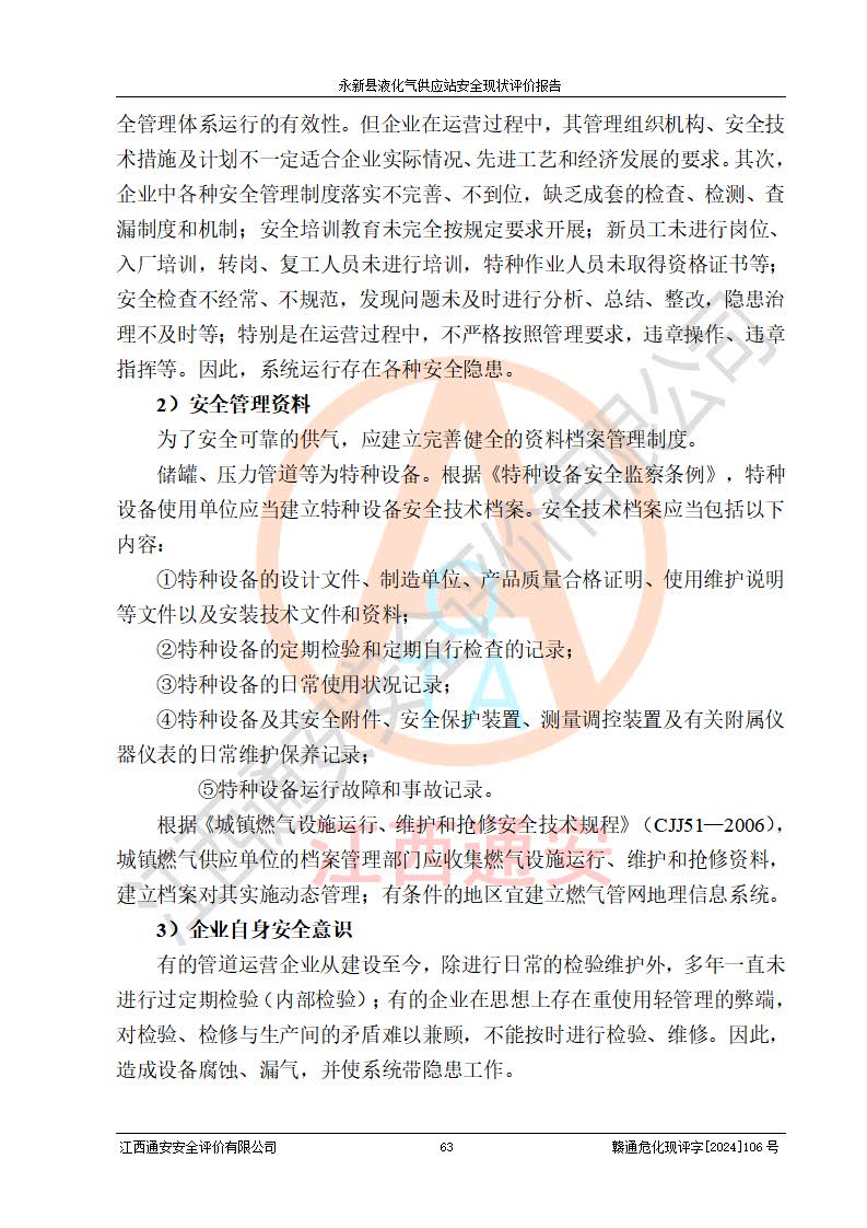 評價報告名稱 | 永新縣液化氣供應站安全現(xiàn)狀評價報告 | |||