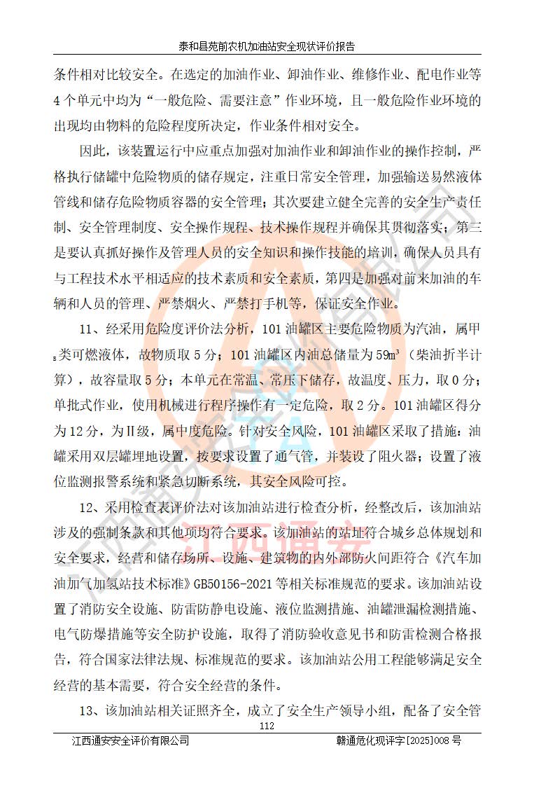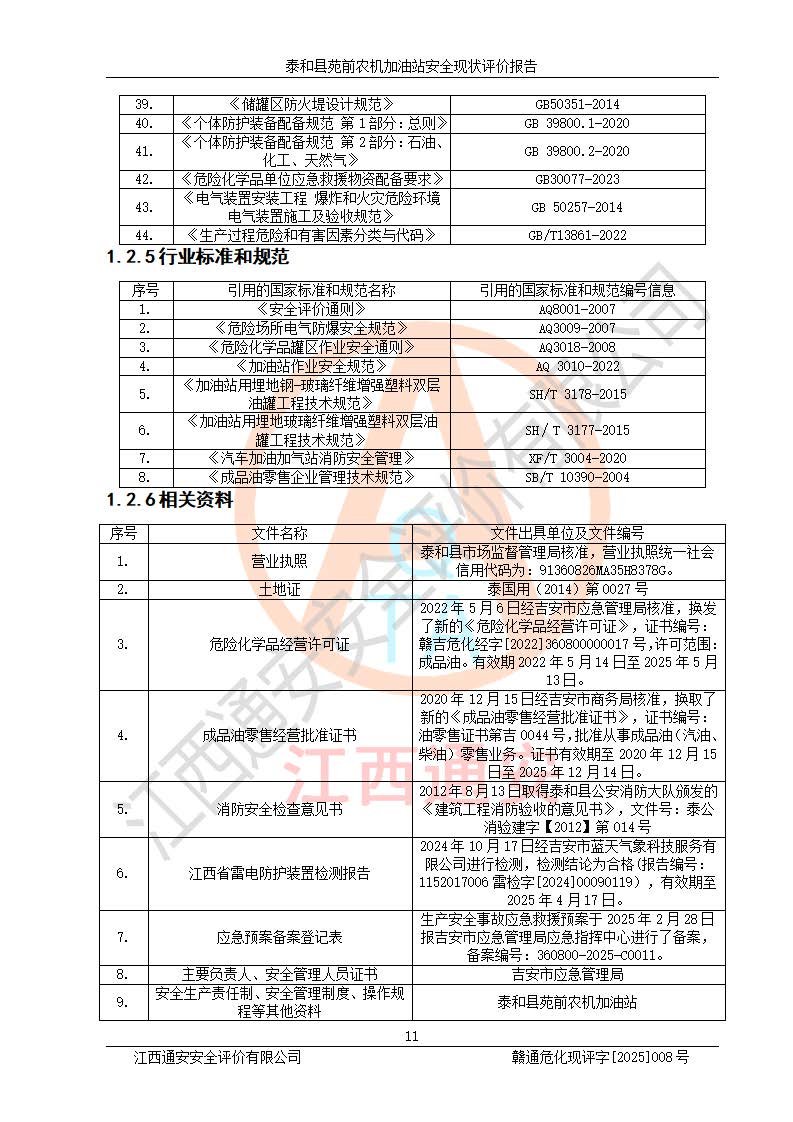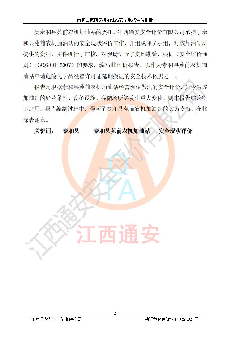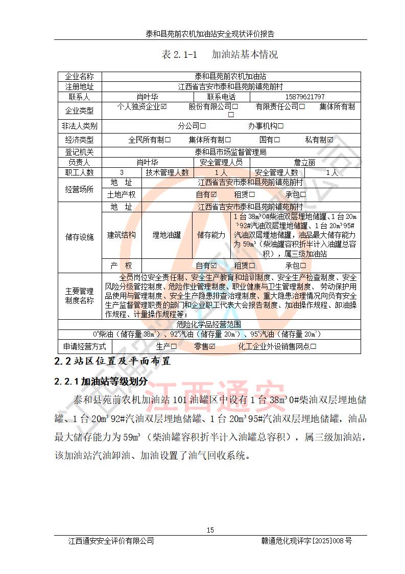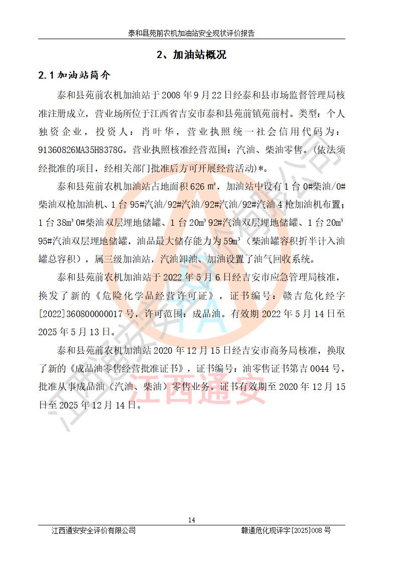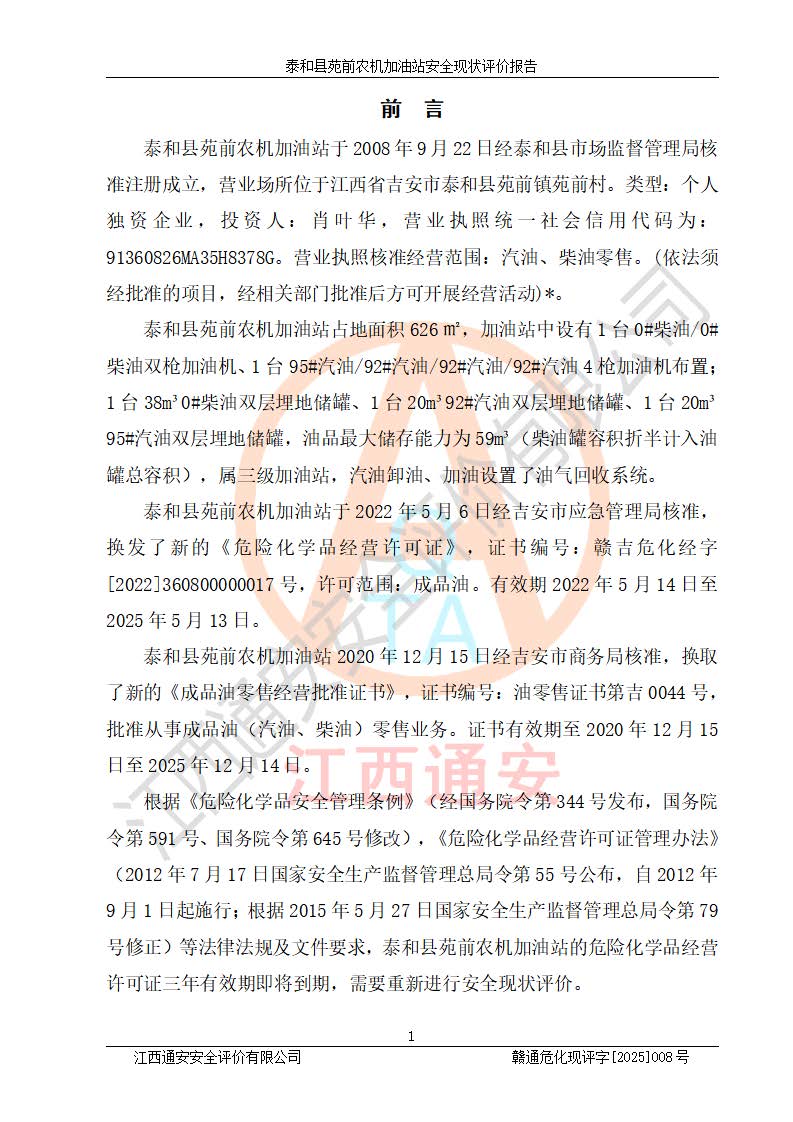 項(xiàng)目名稱(chēng) | 泰和縣苑前農(nóng)機(jī)加油站安全現(xiàn)狀評(píng)價(jià)報(bào)告 | ||||
