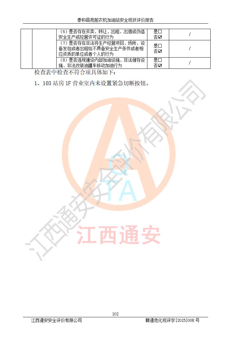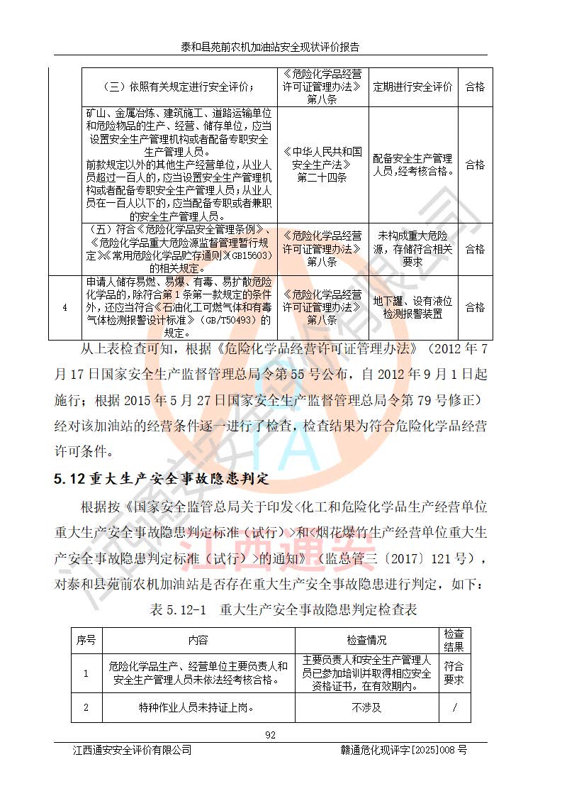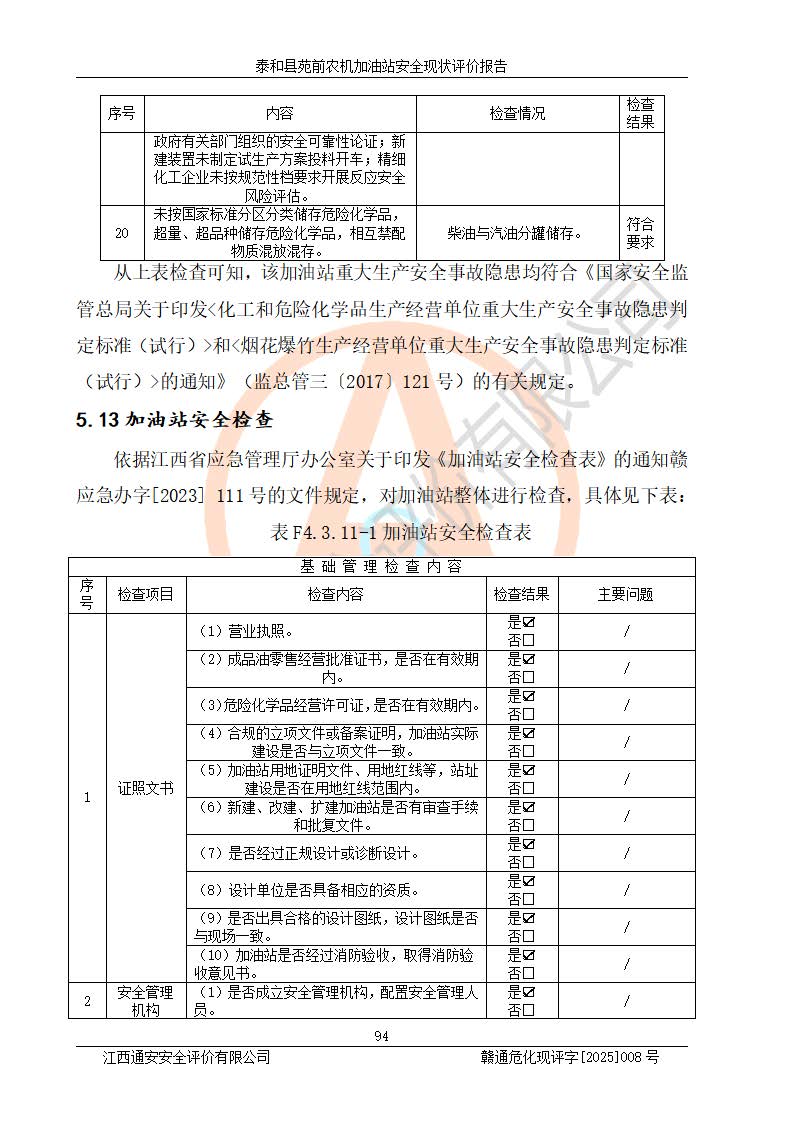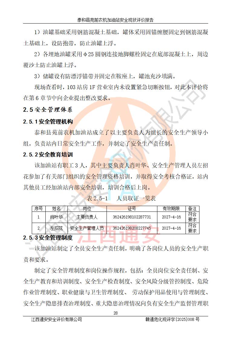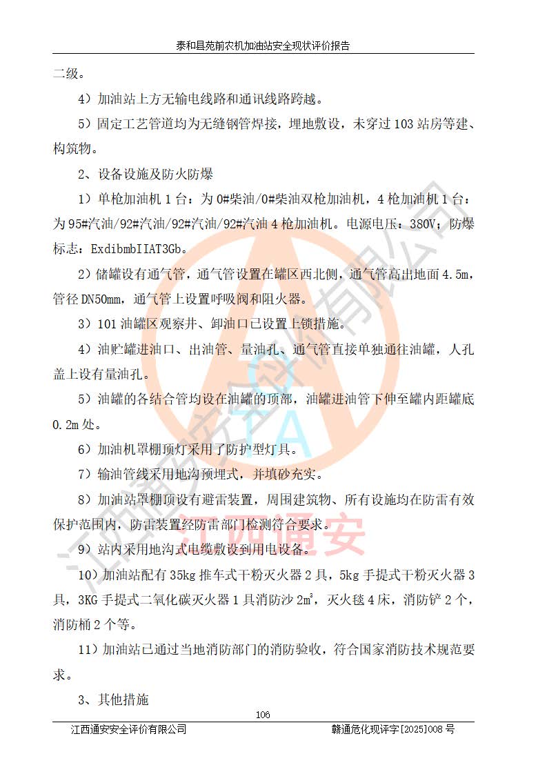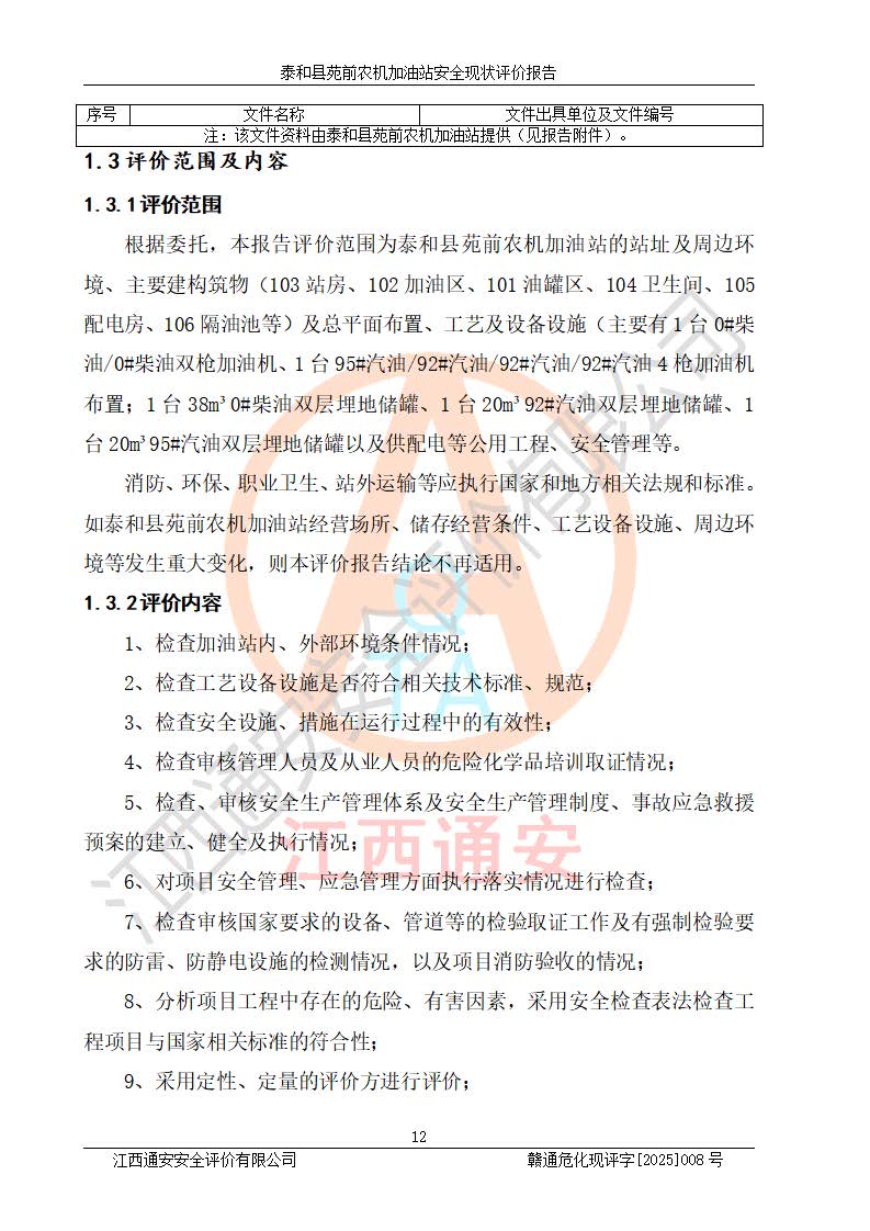 項(xiàng)目名稱(chēng) | 泰和縣苑前農(nóng)機(jī)加油站安全現(xiàn)狀評(píng)價(jià)報(bào)告 | ||||