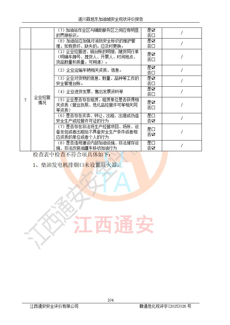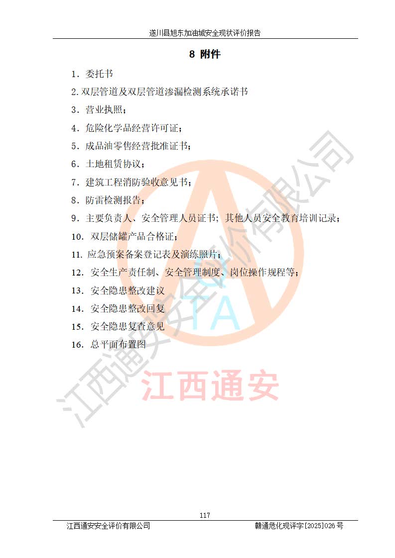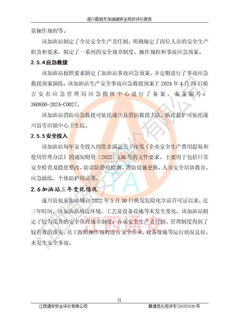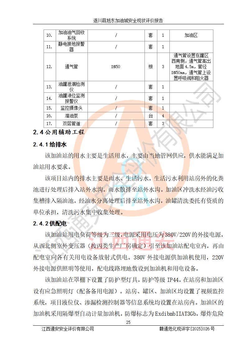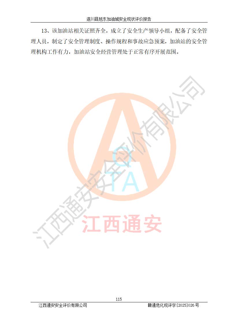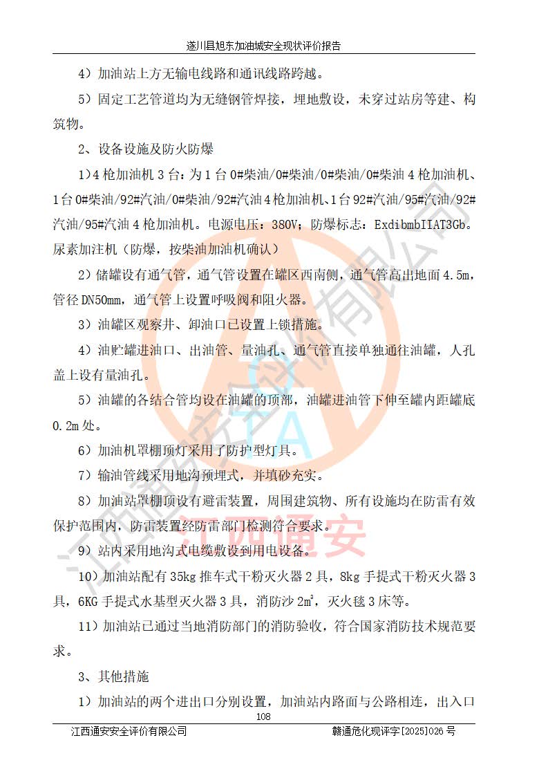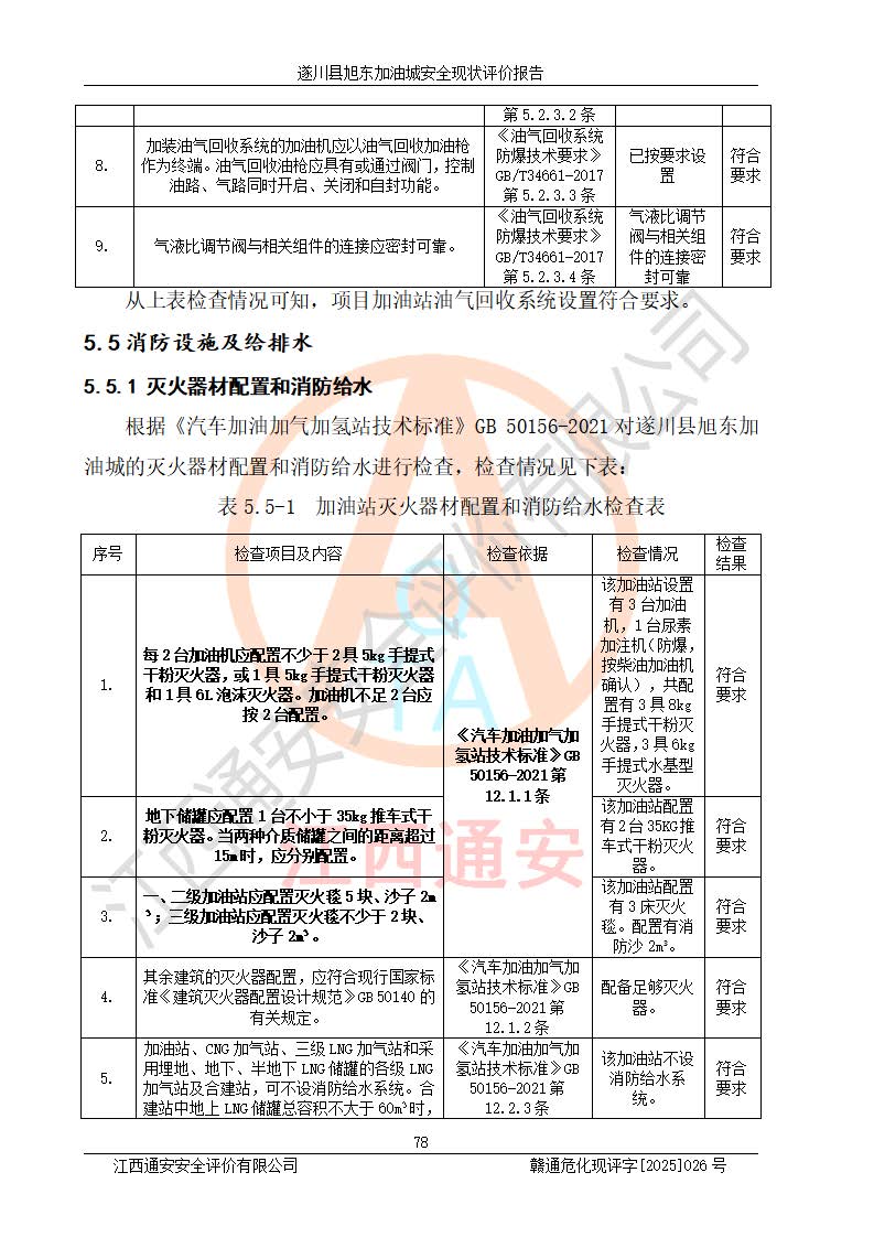 項(xiàng)目簡(jiǎn)介 | 遂川縣旭東加油城于2001年12月30日經(jīng)遂川縣市場(chǎng)監(jiān)督管理局核準(zhǔn)注冊(cè)成立,營(yíng)業(yè)場(chǎng)所位于江西省吉安市遂川縣于田鎮(zhèn)石下村云南坑。類型:個(gè)人獨(dú)資企業(yè),投資人:林章貴,營(yíng)業(yè)執(zhí)照統(tǒng)一社會(huì)信用代碼為:9136082773393277XU。營(yíng)業(yè)執(zhí)照核準(zhǔn)經(jīng)營(yíng)范圍:許可項(xiàng)目:成品油零售,餐飲服務(wù),食品銷售,煙草制品零售(依法須經(jīng)批準(zhǔn)的項(xiàng)目,經(jīng)相關(guān)部門批準(zhǔn)后在許可**期內(nèi)方可開展經(jīng)營(yíng)活動(dòng),具體經(jīng)營(yíng)項(xiàng)目和許可期限以相關(guān)部門批準(zhǔn)文件或許可證件為準(zhǔn))一般項(xiàng)目:日用百貨銷售(除依法須經(jīng)批準(zhǔn)的項(xiàng)目外,憑營(yíng)業(yè)執(zhí)照依法自主開展經(jīng)營(yíng)活動(dòng))。 遂川縣旭東加油城設(shè)有1臺(tái)0#柴油/0#柴油/0#柴油/0#柴油4槍加油機(jī)、1臺(tái)0#柴油/92#汽油/0#柴油/92#汽油4槍加油機(jī)、1臺(tái)92#汽油/95#汽油/92#汽油/95#汽油4槍加油機(jī)、尿素加注機(jī)(防爆,按柴油加油機(jī)確認(rèn))布置;1臺(tái)30m30#柴油雙層埋地儲(chǔ)罐、1臺(tái)30m30#柴油雙層埋地儲(chǔ)罐、1臺(tái)30m392#汽油雙層埋地儲(chǔ)罐、1臺(tái)30m395#汽油雙層埋地儲(chǔ)罐,油品*大儲(chǔ)存能力為90m3(柴油罐容積折半計(jì)入油罐總?cè)莘e),屬三級(jí)加油站,汽油卸油、加油設(shè)置了油氣回收系統(tǒng)。 遂川縣旭東加油城于2022年5月30日經(jīng)吉安市應(yīng)急管理局核準(zhǔn),換發(fā)了新的《危險(xiǎn)化學(xué)品經(jīng)營(yíng)許可證》,證書編號(hào):贛吉危化經(jīng)字[2022]360800000022號(hào),許可范圍:成品油。**期2022年7月25日至2025年7月24日。 遂川縣旭東加油城2022年11月21日經(jīng)吉安市商務(wù)局核準(zhǔn),換取了新的《成品油零售經(jīng)營(yíng)批準(zhǔn)證書》,證書編號(hào):油零售證書第吉0209號(hào),批準(zhǔn)從事成品油(汽油、柴油)零售業(yè)務(wù)。證書**期至2022年11月21日至2027年11月20日。 | ||||