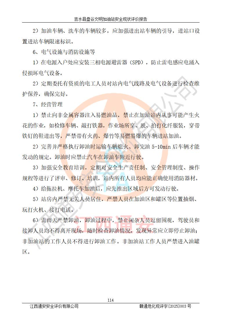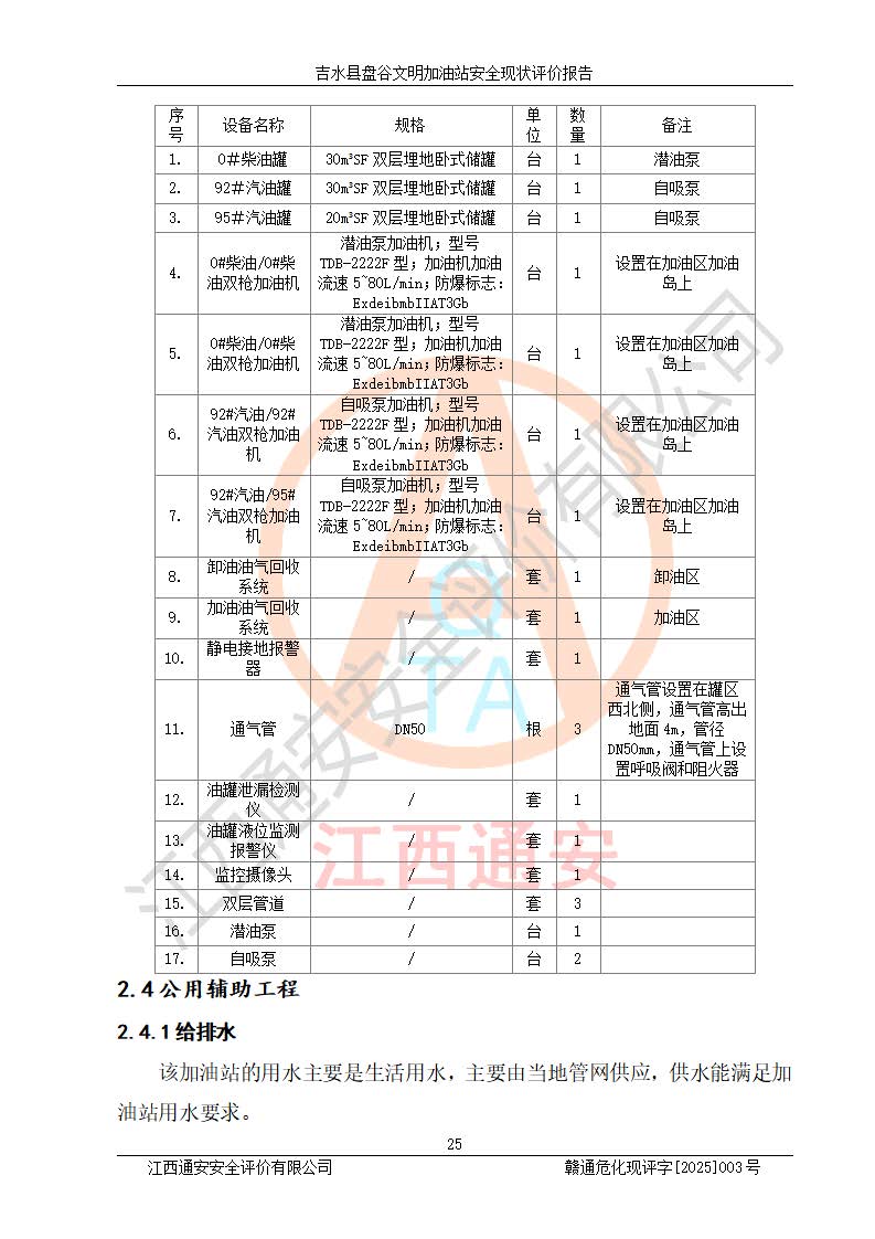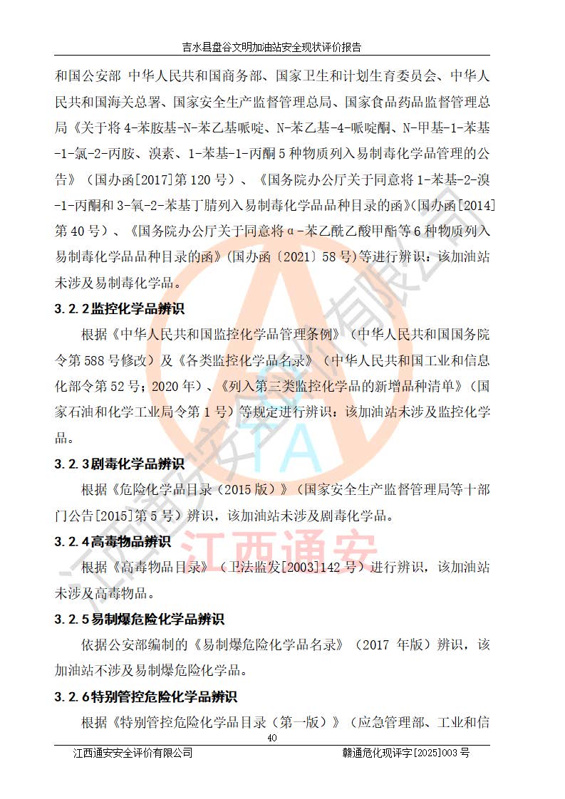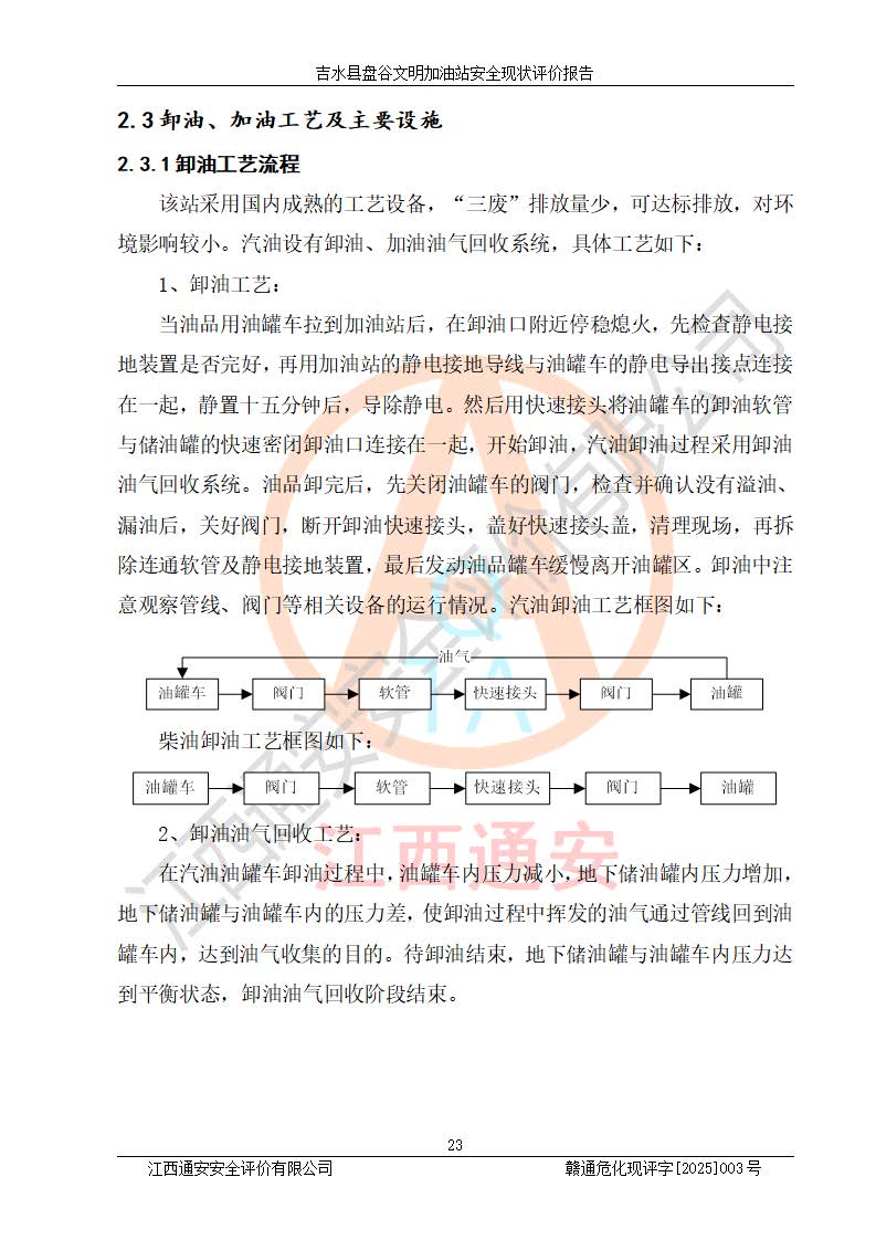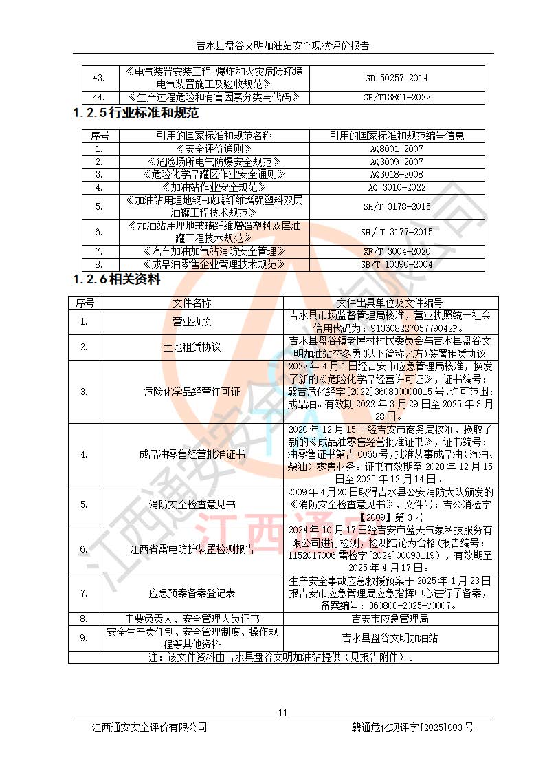 項(xiàng)目簡介 | 吉水縣盤谷文明加油站于1998年6月30日經(jīng)吉水縣市場監(jiān)督管理局核準(zhǔn)注冊成立,營業(yè)場所位于江西省吉安市吉水縣盤谷鎮(zhèn)文明村。類型:個人獨(dú)資企業(yè),投資人:李冬勇,營業(yè)執(zhí)照統(tǒng)一社會信用代碼為:91360822705779042P。營業(yè)執(zhí)照核準(zhǔn)經(jīng)營范圍:許可項(xiàng)目:成品油零售(依法須經(jīng)批準(zhǔn)的項(xiàng)目,經(jīng)相關(guān)部門批準(zhǔn)后在許可**期內(nèi)方可開展經(jīng)營活動,具體經(jīng)營項(xiàng)目和許可期限以相關(guān)部門批準(zhǔn)文件或許可證件為準(zhǔn))一般項(xiàng)目:潤滑油銷售,食品銷售(僅銷售預(yù)包裝食品)(除依法須經(jīng)批準(zhǔn)的項(xiàng)目外,憑營業(yè)執(zhí)照依法自主開展經(jīng)營活動)。 吉水縣盤谷文明加油站占地面積3072㎡,加油站中設(shè)有1臺0#柴油/0#柴油雙槍加油機(jī)、1臺0#柴油/0#柴油雙槍加油機(jī)、1臺92#汽油/92#汽油雙槍加油機(jī)、1臺92#汽油/95#汽油雙槍加油機(jī)布置;1臺30m30#柴油雙層埋地儲罐、1臺30m392#汽油雙層埋地儲罐、1臺20m395#汽油雙層埋地儲罐,油品*大儲存能力為65m3(柴油罐容積折半計(jì)入油罐總?cè)莘e),屬三級加油站,汽油卸油、加油設(shè)置了油氣回收系統(tǒng)。 吉水縣盤谷文明加油站于2022年4月1日經(jīng)吉安市應(yīng)急管理局核準(zhǔn),換發(fā)了新的《危險化學(xué)品經(jīng)營許可證》,證書編號:贛吉?;?/span>經(jīng)字[2022]360800000015號,許可范圍:成品油。**期2022年3月29日至2025年3月28日。 吉水縣盤谷文明加油站2020年12月15日經(jīng)吉安市商務(wù)局核準(zhǔn),換取了新的《成品油零售經(jīng)營批準(zhǔn)證書》,證書編號:油零售證書第吉0065號,批準(zhǔn)從事成品油(汽油、柴油)零售業(yè)務(wù)。證書**期至2020年12月15日至2025年12月14日。 | ||||