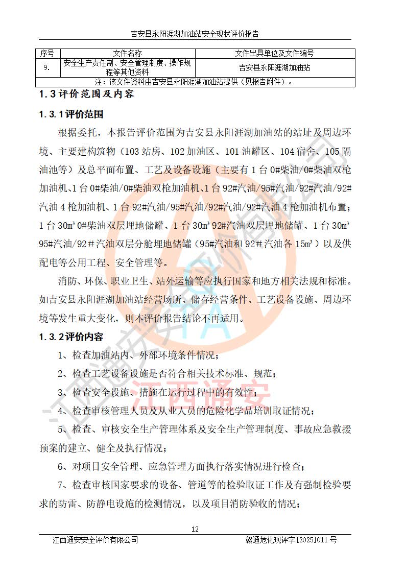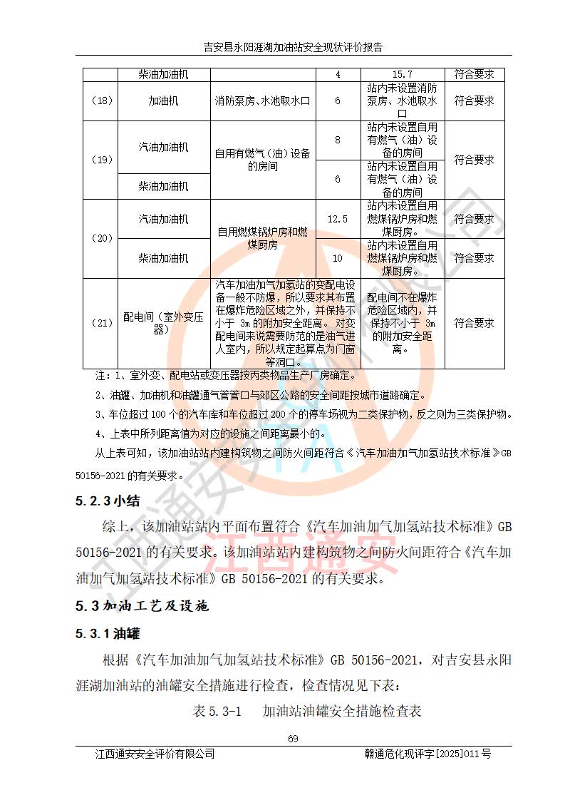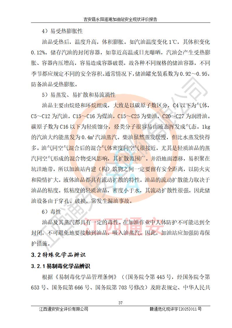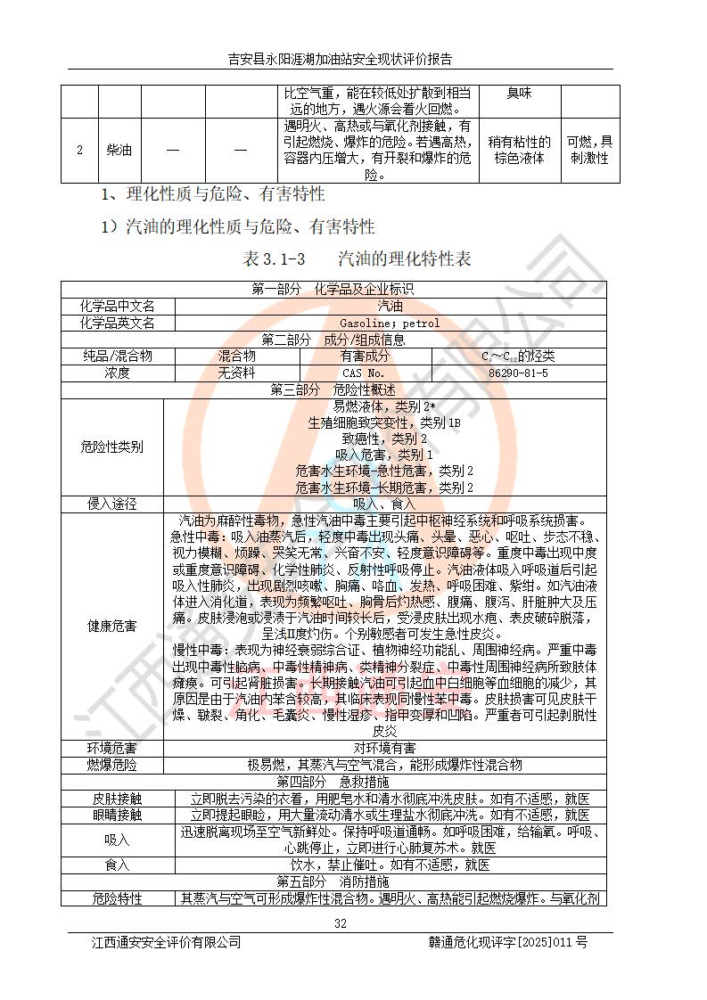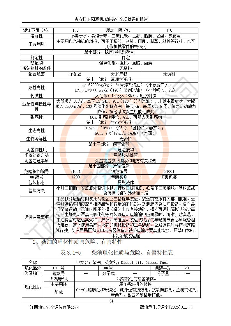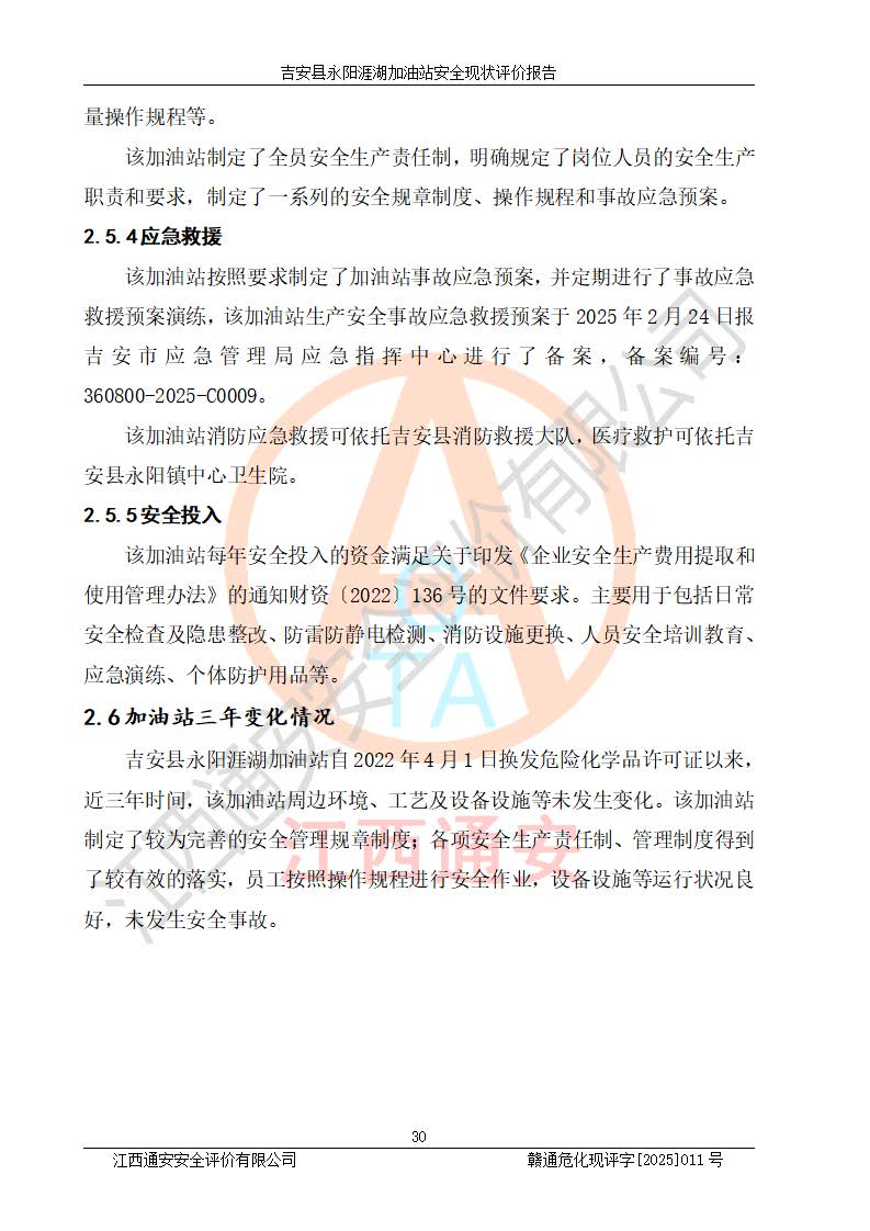 項目簡介 | 吉安縣永陽涯湖加油站于2019年8月16日經(jīng)吉安縣市場監(jiān)督管理局核準注冊成立,營業(yè)場所位于江西省吉安市吉安縣永陽鎮(zhèn)涯湖村。類型:個人獨資企業(yè),投資人:張愛芳,營業(yè)執(zhí)照統(tǒng)一社會信用代碼為:91360821MA38RQ3152。營業(yè)執(zhí)照核準經(jīng)營范圍:成品油零售(依法須經(jīng)批準的項目,經(jīng)相關(guān)部門批準后方可開展經(jīng)營活動)。 吉安縣永陽涯湖加油站占地面積8648.6㎡,加油站中設(shè)有1臺0#柴油/0#柴油雙槍加油機、1臺0#柴油/0#柴油雙槍加油機、1臺92#汽油/95#汽油/92#汽油/92#汽油4槍加油機、1臺92#汽油/95#汽油/92#汽油/92#汽油4槍加油機布置;1臺30m30#柴油雙層埋地儲罐、1臺30m392#汽油雙層埋地儲罐、1臺30m395#汽油/92#汽油雙層分艙埋地儲罐(95#汽油和92#汽油各15m3),油品*大儲存能力為75m3(柴油罐容積折半計入油罐總?cè)莘e),屬三級加油站,汽油卸油、加油設(shè)置了油氣回收系統(tǒng)。 吉安縣永陽涯湖加油站于2022年4月1日經(jīng)吉安市應(yīng)急管理局核準,換發(fā)了新的《危險化學(xué)品經(jīng)營許可證》,證書編號:贛吉?;?/span>經(jīng)字[2022]360800000016號,許可范圍:成品油。**期2022年5月23日至2025年5月22日。 吉安縣永陽涯湖加油站2020年9月7日經(jīng)吉安市商務(wù)局核準,換取了新的《成品油零售經(jīng)營批準證書》,證書編號:油零售證書第吉0004號,批準從事成品油(汽油、柴油)零售業(yè)務(wù)。證書**期至2020年9月7日至2025年9月6日。 | ||||
