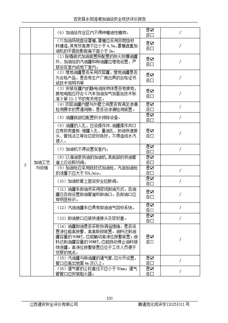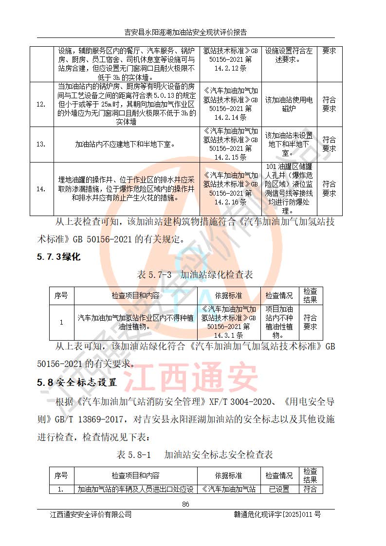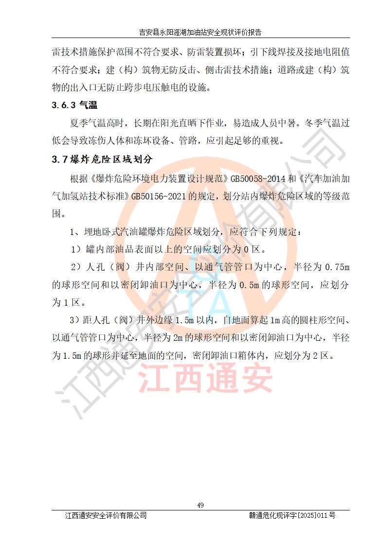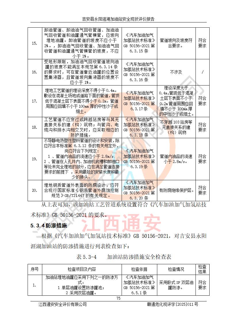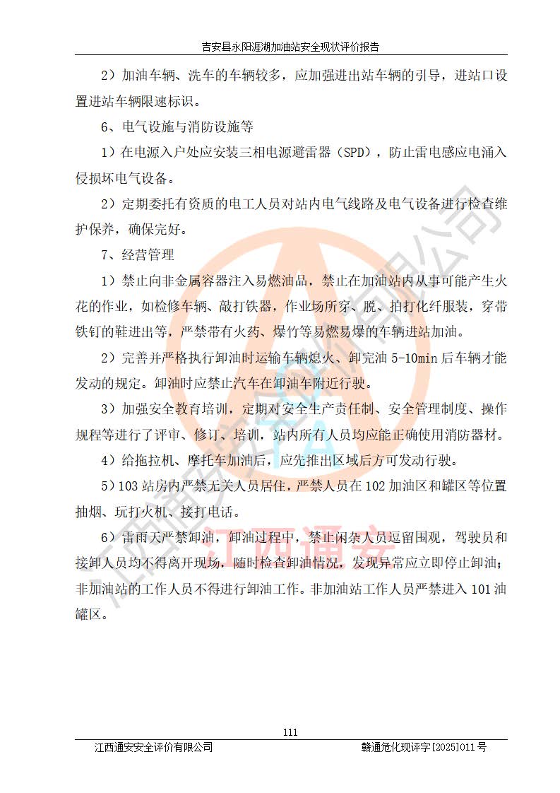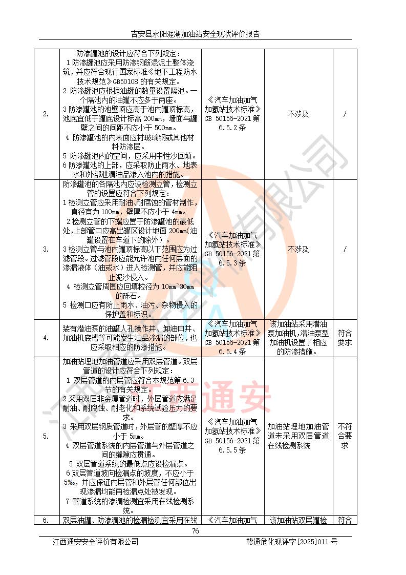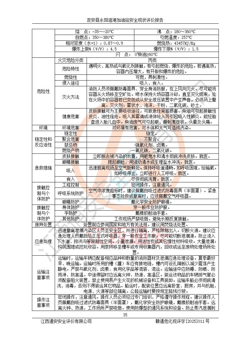 項目簡介 | 吉安縣永陽涯湖加油站于2019年8月16日經(jīng)吉安縣市場監(jiān)督管理局核準注冊成立,營業(yè)場所位于江西省吉安市吉安縣永陽鎮(zhèn)涯湖村。類型:個人獨資企業(yè),投資人:張愛芳,營業(yè)執(zhí)照統(tǒng)一社會信用代碼為:91360821MA38RQ3152。營業(yè)執(zhí)照核準經(jīng)營范圍:成品油零售(依法須經(jīng)批準的項目,經(jīng)相關(guān)部門批準后方可開展經(jīng)營活動)。 吉安縣永陽涯湖加油站占地面積8648.6㎡,加油站中設(shè)有1臺0#柴油/0#柴油雙槍加油機、1臺0#柴油/0#柴油雙槍加油機、1臺92#汽油/95#汽油/92#汽油/92#汽油4槍加油機、1臺92#汽油/95#汽油/92#汽油/92#汽油4槍加油機布置;1臺30m30#柴油雙層埋地儲罐、1臺30m392#汽油雙層埋地儲罐、1臺30m395#汽油/92#汽油雙層分艙埋地儲罐(95#汽油和92#汽油各15m3),油品*大儲存能力為75m3(柴油罐容積折半計入油罐總?cè)莘e),屬三級加油站,汽油卸油、加油設(shè)置了油氣回收系統(tǒng)。 吉安縣永陽涯湖加油站于2022年4月1日經(jīng)吉安市應(yīng)急管理局核準,換發(fā)了新的《危險化學(xué)品經(jīng)營許可證》,證書編號:贛吉?;?/span>經(jīng)字[2022]360800000016號,許可范圍:成品油。**期2022年5月23日至2025年5月22日。 吉安縣永陽涯湖加油站2020年9月7日經(jīng)吉安市商務(wù)局核準,換取了新的《成品油零售經(jīng)營批準證書》,證書編號:油零售證書第吉0004號,批準從事成品油(汽油、柴油)零售業(yè)務(wù)。證書**期至2020年9月7日至2025年9月6日。 | ||||