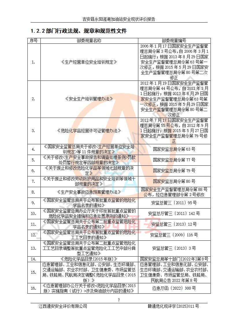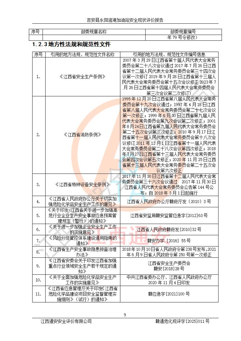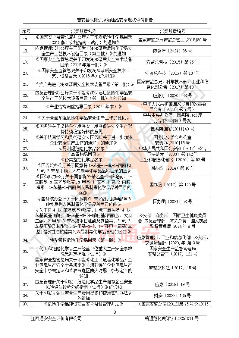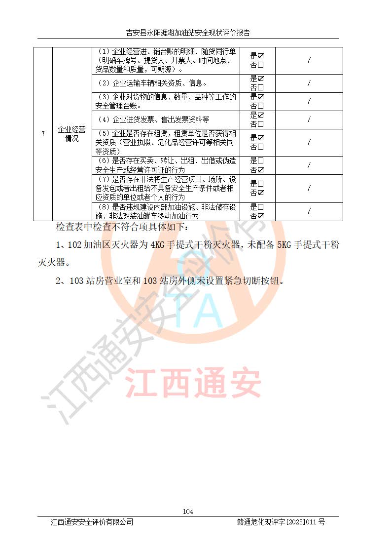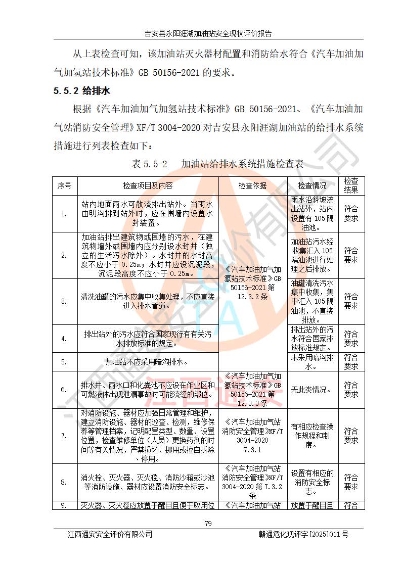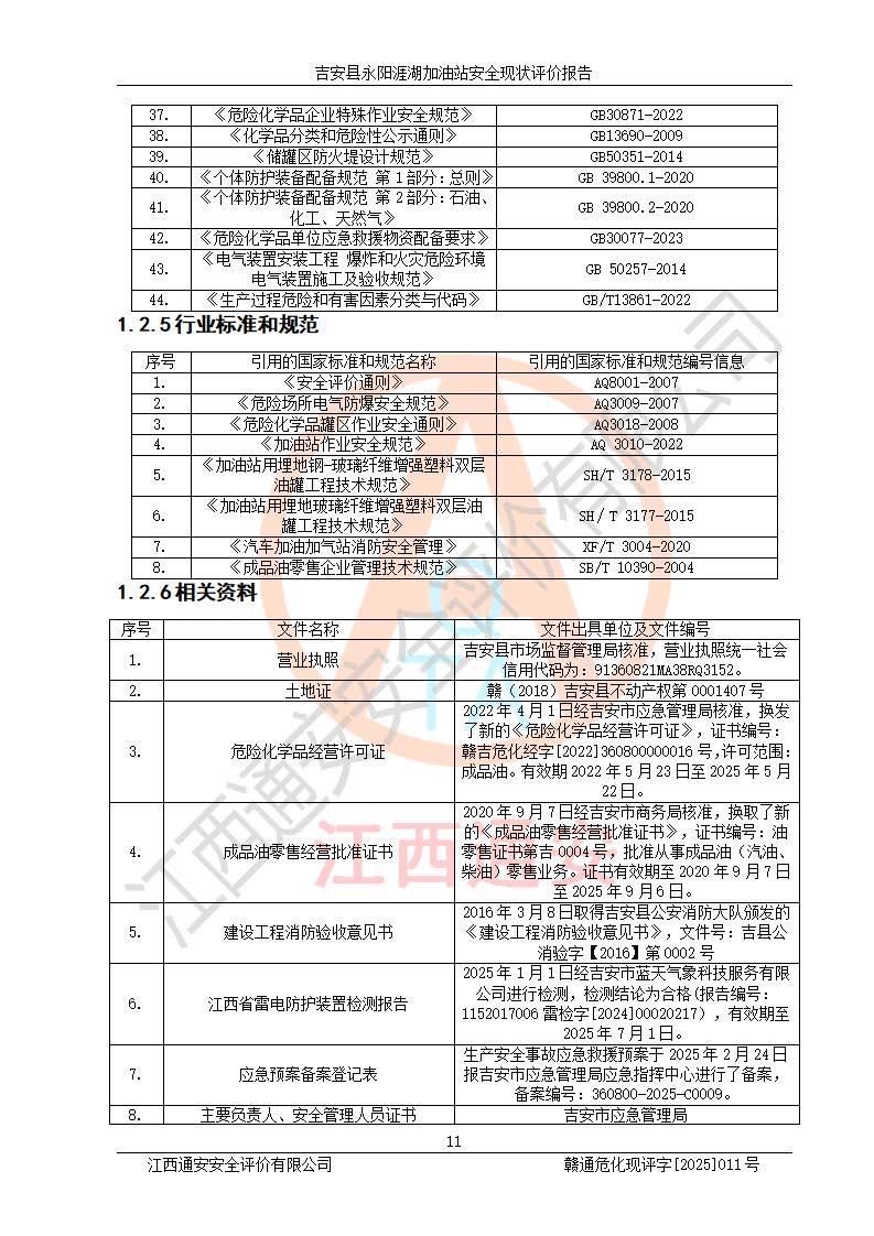 項目簡介 | 吉安縣永陽涯湖加油站于2019年8月16日經(jīng)吉安縣市場監(jiān)督管理局核準注冊成立,營業(yè)場所位于江西省吉安市吉安縣永陽鎮(zhèn)涯湖村。類型:個人獨資企業(yè),投資人:張愛芳,營業(yè)執(zhí)照統(tǒng)一社會信用代碼為:91360821MA38RQ3152。營業(yè)執(zhí)照核準經(jīng)營范圍:成品油零售(依法須經(jīng)批準的項目,經(jīng)相關(guān)部門批準后方可開展經(jīng)營活動)。 吉安縣永陽涯湖加油站占地面積8648.6㎡,加油站中設(shè)有1臺0#柴油/0#柴油雙槍加油機、1臺0#柴油/0#柴油雙槍加油機、1臺92#汽油/95#汽油/92#汽油/92#汽油4槍加油機、1臺92#汽油/95#汽油/92#汽油/92#汽油4槍加油機布置;1臺30m30#柴油雙層埋地儲罐、1臺30m392#汽油雙層埋地儲罐、1臺30m395#汽油/92#汽油雙層分艙埋地儲罐(95#汽油和92#汽油各15m3),油品*大儲存能力為75m3(柴油罐容積折半計入油罐總?cè)莘e),屬三級加油站,汽油卸油、加油設(shè)置了油氣回收系統(tǒng)。 吉安縣永陽涯湖加油站于2022年4月1日經(jīng)吉安市應(yīng)急管理局核準,換發(fā)了新的《危險化學(xué)品經(jīng)營許可證》,證書編號:贛吉?;?/span>經(jīng)字[2022]360800000016號,許可范圍:成品油。**期2022年5月23日至2025年5月22日。 吉安縣永陽涯湖加油站2020年9月7日經(jīng)吉安市商務(wù)局核準,換取了新的《成品油零售經(jīng)營批準證書》,證書編號:油零售證書第吉0004號,批準從事成品油(汽油、柴油)零售業(yè)務(wù)。證書**期至2020年9月7日至2025年9月6日。 | ||||