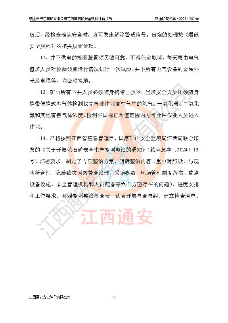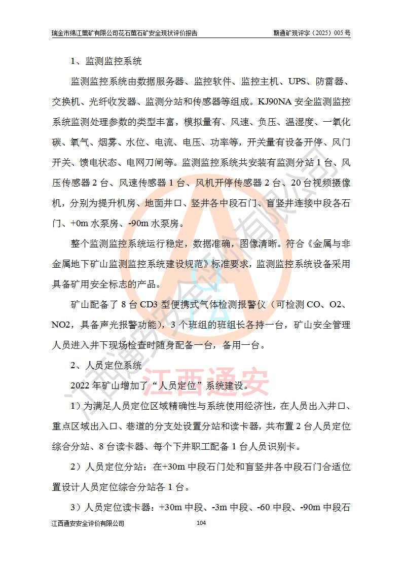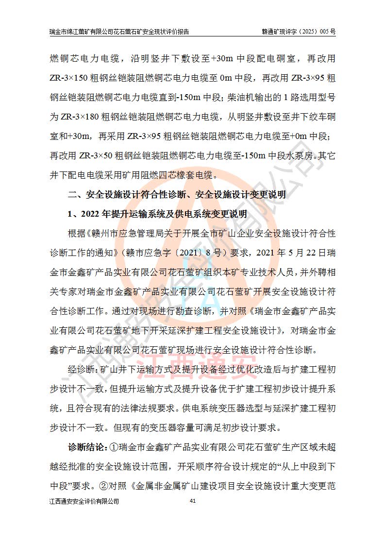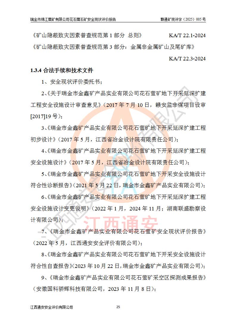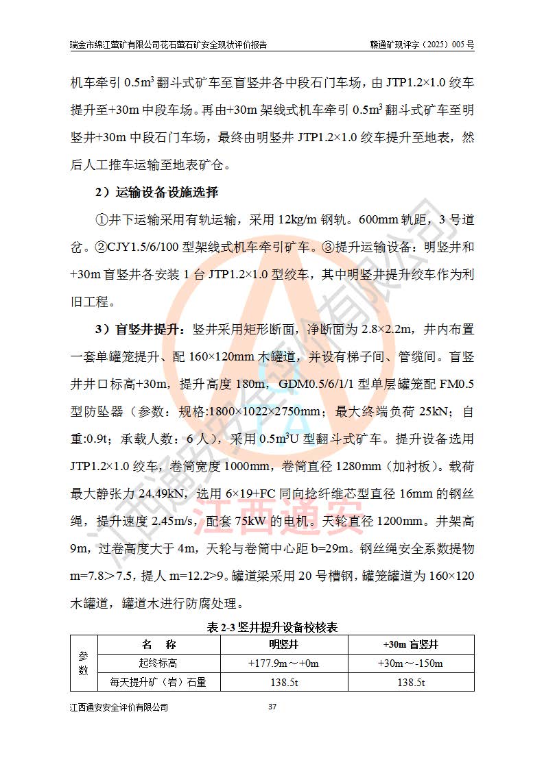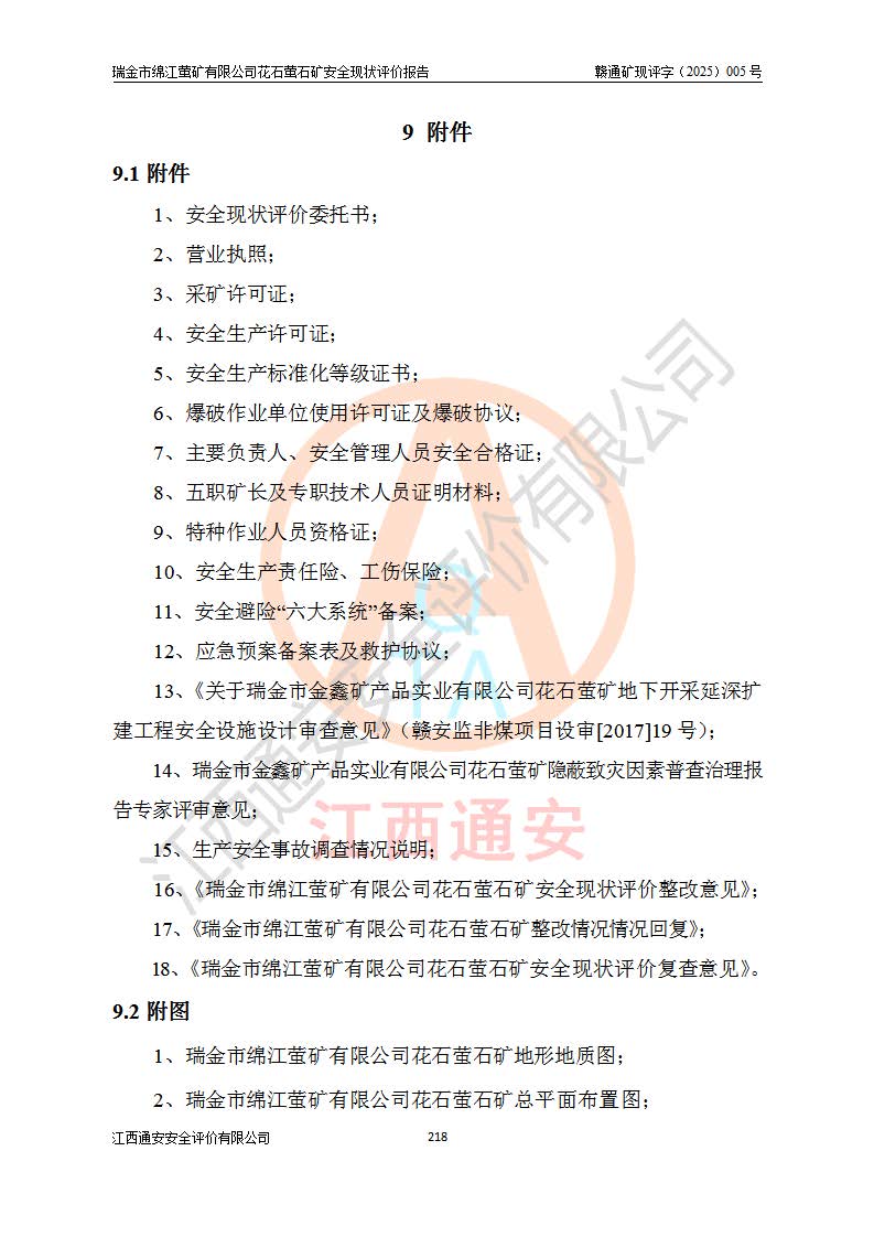 瑞金市綿江螢礦有限公司花石螢石礦區(qū)位于瑞金市南西215°方位直距30km處,礦區(qū)中心位置地理坐標(biāo)為東經(jīng)115°51′24″,北緯25°39′21″,行政區(qū)劃屬瑞金市謝坊鎮(zhèn)管轄。 礦山前身為瑞金市金鑫礦產(chǎn)品實(shí)業(yè)有限公司花石螢礦。為了進(jìn)一步穩(wěn)固螢石礦產(chǎn)業(yè)鏈,2024年9月瑞金市綿江螢礦有限公司申請(qǐng)將瑞金市金鑫礦產(chǎn)品實(shí)業(yè)有限公司花石螢礦采礦權(quán)**至其公司。2025年4月6日,花石螢石礦完成了采礦權(quán)人**手續(xù),并取得了新采礦許可證。 該螢石礦區(qū)開采始于上世紀(jì)九十年代,由當(dāng)?shù)孛癖娫诨ㄊV點(diǎn)和廟背坑礦點(diǎn)零星開采(廟背坑礦點(diǎn)位于花石礦點(diǎn)東側(cè),兩個(gè)礦點(diǎn)礦體直線距離約1km,廟背坑礦點(diǎn)已停止采礦活動(dòng)。本次評(píng)價(jià)對(duì)象為花石礦點(diǎn))。本世紀(jì)初,經(jīng)礦業(yè)秩序整頓、規(guī)范礦山開采,兩礦點(diǎn)分別由不同采礦權(quán)人依法辦理了采礦許可證,即廟背坑螢礦和花石螢石礦。2005年12月,根據(jù)贛州市人民**《贛市府辦發(fā)〔2005〕14號(hào)》文件有關(guān)礦業(yè)權(quán)整合的指示精神要求,兩個(gè)采礦權(quán)整合為一個(gè)采礦權(quán)人,即瑞金市金鑫礦產(chǎn)品實(shí)業(yè)有限公司,整合后采礦權(quán)面積2.4707km2,開采標(biāo)高+220m~0m。整合后,2011年8月,花石螢石礦委托江西省冶金設(shè)計(jì)院有限責(zé)任公司編制了《瑞金市金鑫礦產(chǎn)品實(shí)業(yè)有限公司花石螢礦地下開采整改初步設(shè)計(jì)安全專篇》。整改設(shè)計(jì)開采對(duì)象為花石區(qū)段V1礦體,采用豎井+盲豎井聯(lián)合開拓,主要井筒為SJ3豎井、MJ1盲豎井,SJ3豎井連接+125m中段,采用JTP-1.2×1.0型礦用提升絞車提升,MJ1盲豎井連接+65m中段、+83m中段,采用JTK-1.0×0.8型塊式制動(dòng)礦用提升絞車提升。設(shè)計(jì)開采深度+220m至+67m標(biāo)高,共布置+125m、+83m、+65m三個(gè)中段;設(shè)計(jì)生產(chǎn)規(guī)模為4萬噸/年,采礦方法選用淺孔留礦法。 根據(jù)整改設(shè)計(jì)要求,礦山經(jīng)過近一年多的整改施工,2012年9月通過由原贛州市安全生產(chǎn)監(jiān)督管理局組織的安全設(shè)施整改驗(yàn)收。2012年9月26日取得了由原江西省安全生產(chǎn)監(jiān)督管理局延期換發(fā)的《安全生產(chǎn)許可證》(編號(hào):FM安許證字[2005]M0033號(hào)),許可范圍:螢石礦4萬噸/年,豎井+盲豎井聯(lián)合開拓,+67m中段地下開采。 由于原整改設(shè)計(jì)范圍內(nèi)(+67m以上中段)V1礦體資源儲(chǔ)量無法使礦井達(dá)到持續(xù)穩(wěn)定的生產(chǎn)接替,根據(jù)2011年11月264核工業(yè)大隊(duì)《江西省瑞金市花石螢石礦資源儲(chǔ)量核實(shí)報(bào)告》及礦山提交的2013年度資源儲(chǔ)量動(dòng)態(tài)檢測(cè)報(bào)告。2013年4月,花石螢石礦又委托江西省冶金設(shè)計(jì)院有限責(zé)任公司為其編制了《瑞金市金鑫礦產(chǎn)品實(shí)業(yè)有限公司花石螢礦花石礦區(qū)地下開采改建工程初步設(shè)計(jì)安全專篇》。設(shè)計(jì)開采范圍+83m~+0m標(biāo)高;采用豎井開拓。設(shè)計(jì)新建開拓工程為新豎井及+83m、+40m、+0m三個(gè)中段。采礦方法為淺孔留礦法。 由于部分工程與設(shè)計(jì)不符。2014年10月,礦山委托江西省冶金設(shè)計(jì)院有限責(zé)任公司編制了《瑞金市金鑫礦產(chǎn)品實(shí)業(yè)有限公司花石螢礦花石礦區(qū)地下開采改建工程變更設(shè)計(jì)》,其中段布置變更為+30m、+0m中段;通風(fēng)系統(tǒng)變更為以新豎井為進(jìn)風(fēng)井;采用SJ3北東已有的平峒(PD)及平硐內(nèi)的人行、回風(fēng)斜巷MXJ1、MXJ2 、MXJ3并配置相關(guān)工程后作為礦區(qū)北東翼礦體開采的北東翼回風(fēng)系統(tǒng)。主扇安裝于+190m中段回風(fēng)道。 2015年9月,礦山改建工程安全設(shè)施通過了原江西省安全生產(chǎn)監(jiān)督管理局組織專家組竣工驗(yàn)收,并取得了原江西省安監(jiān)局延期換發(fā)的《安全生產(chǎn)許可證》(編號(hào):FM安許證字[2005]M0033號(hào)),許可范圍:螢石礦4萬噸/年,豎井開拓,+30m、0m中段地下開采。 花石螢礦V1礦體經(jīng)過多年開采后,原改建工程設(shè)計(jì)范圍內(nèi)(+0m以上中段)螢石礦資源儲(chǔ)量日漸減少。為了擴(kuò)大礦區(qū)資源儲(chǔ)量,延長(zhǎng)礦山服務(wù)年限,查明礦區(qū)深部螢石礦資源儲(chǔ)量。2014年礦山申請(qǐng)了采礦權(quán)變更開采深度的請(qǐng)示。2015年1月16日礦山取得了原贛州市礦產(chǎn)資源管理局頒發(fā)的劃定礦區(qū)范圍批復(fù)(贛市礦劃復(fù)[2015]0001號(hào)),劃定礦區(qū)范圍面積2.47km2,礦區(qū)范圍由7個(gè)拐點(diǎn)圈定,開采深度由+220m~-150m。同年,礦山委托江西省核工業(yè)地質(zhì)局二六四大隊(duì)編制完成了《江西省瑞金市花石螢石礦區(qū)資源儲(chǔ)量核實(shí)報(bào)告》并經(jīng)過了贛州市金輝礦業(yè)技術(shù)服務(wù)有限公司評(píng)審(贛金輝儲(chǔ)審字[2014]12號(hào)),原贛州市礦產(chǎn)資源管理局以“贛市礦儲(chǔ)備字[2014]18號(hào))”文對(duì)該報(bào)告?zhèn)浒浮?/span> 為了使礦井達(dá)到持續(xù)穩(wěn)定的生產(chǎn)接替,保持三級(jí)礦量平衡,2015年7月委托了江西省冶金設(shè)計(jì)院有