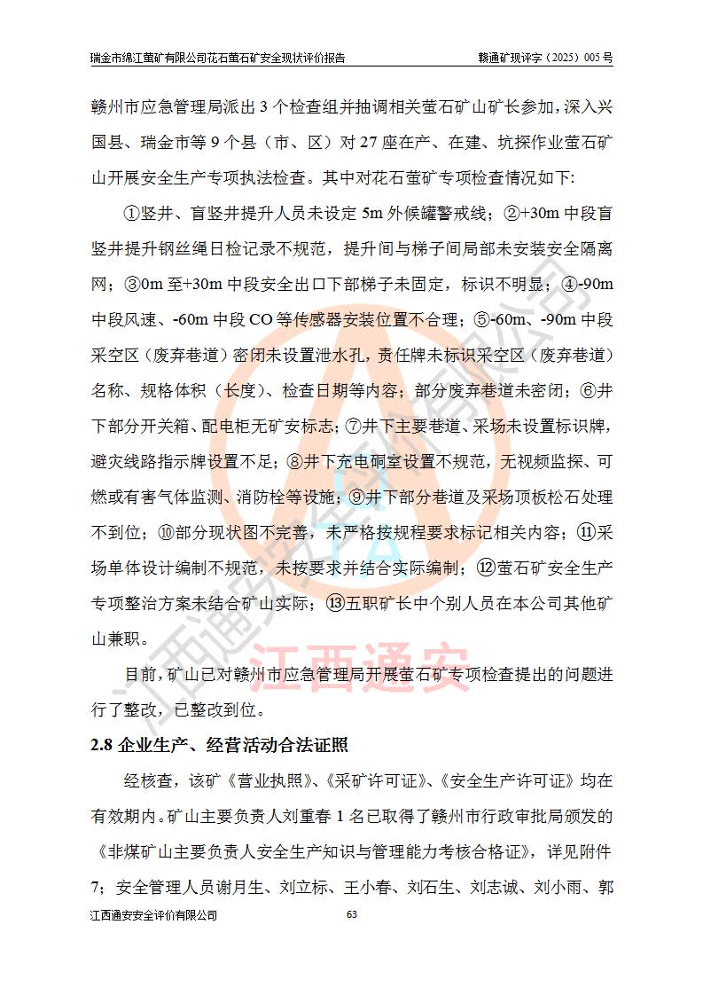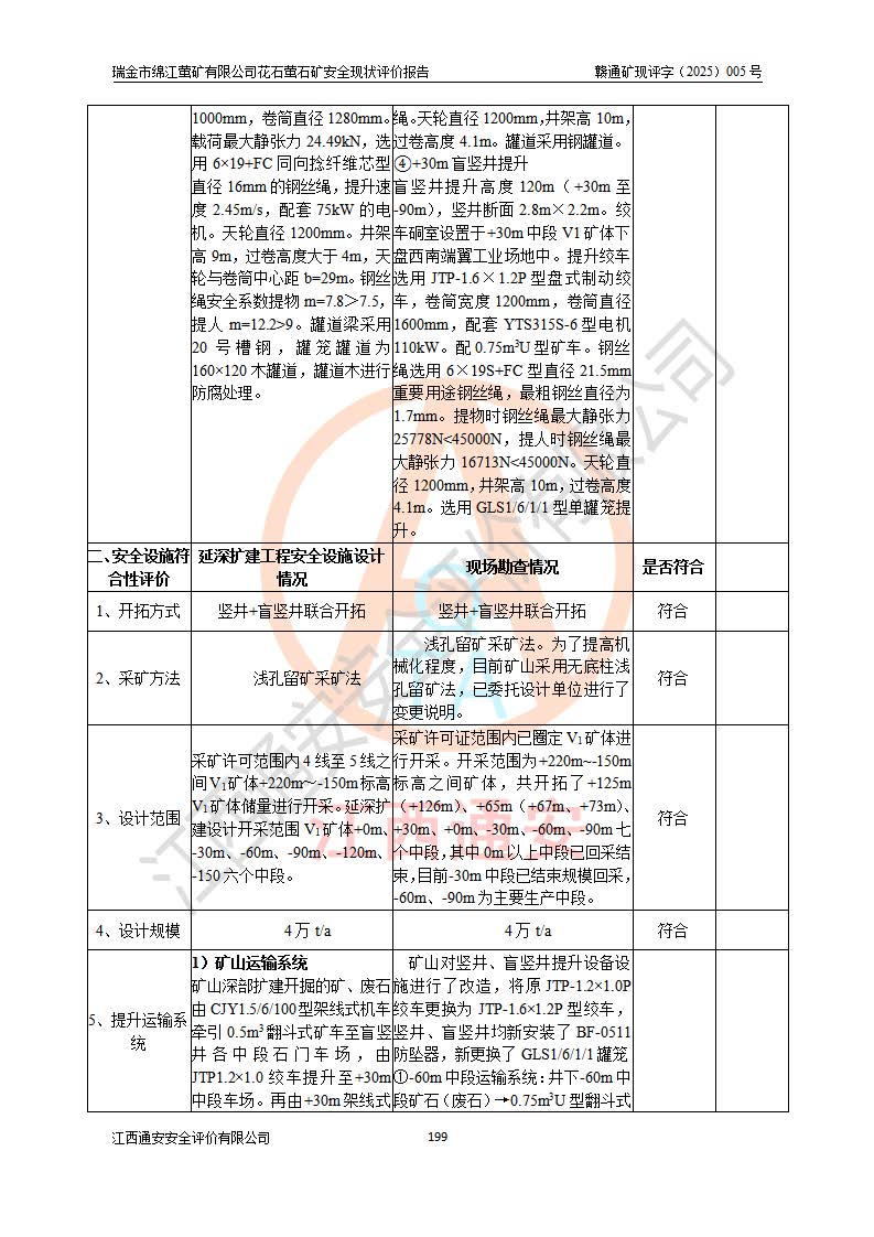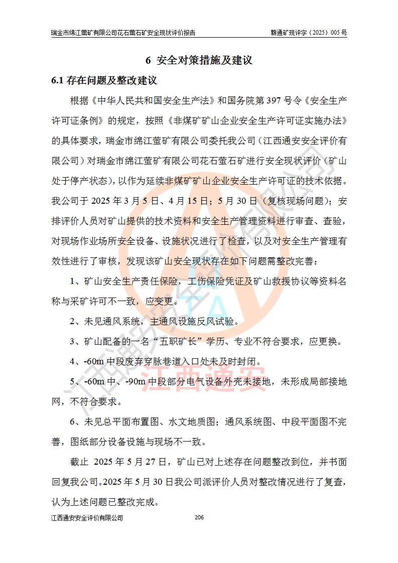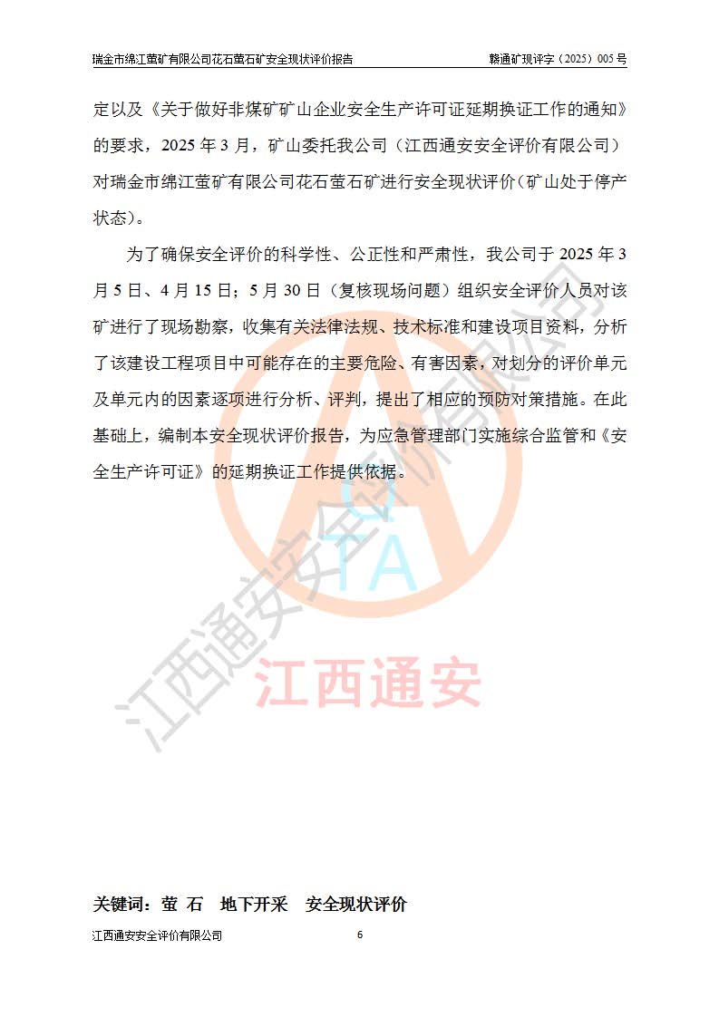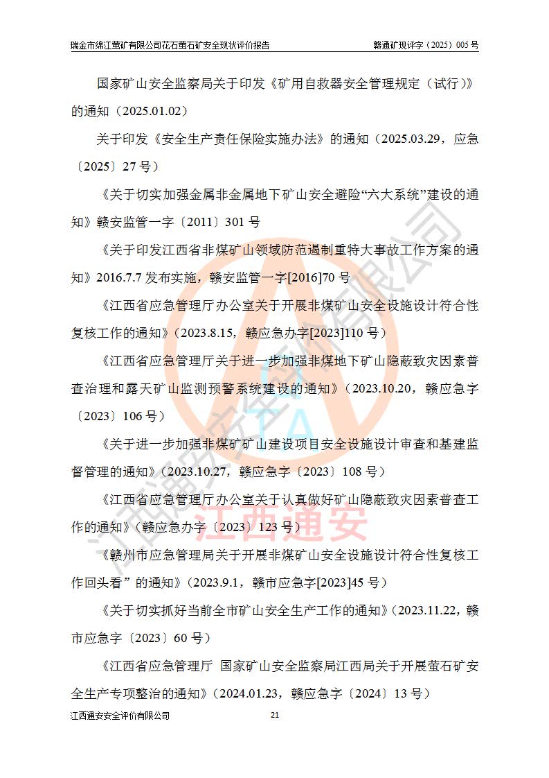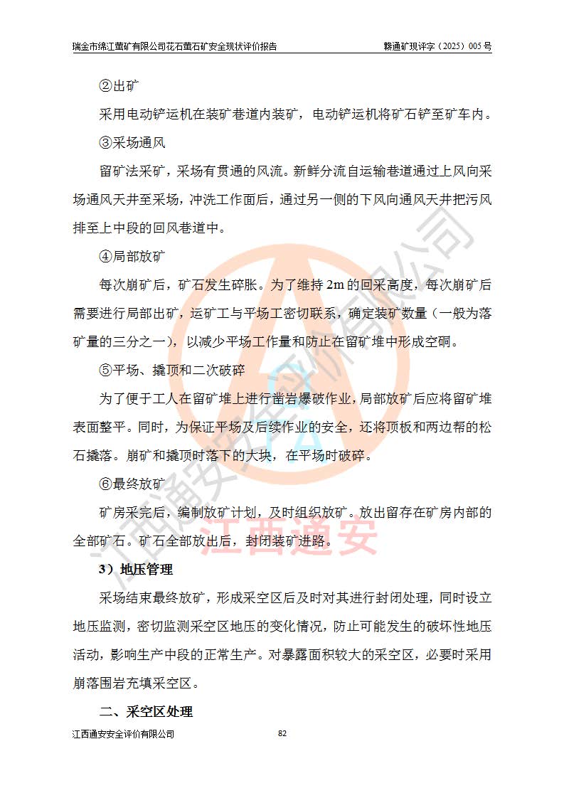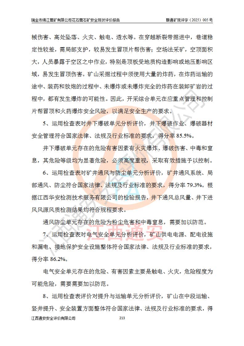 瑞金市綿江螢礦有限公司花石螢石礦區(qū)位于瑞金市南西215°方位直距30km處,礦區(qū)中心位置地理坐標(biāo)為東經(jīng)115°51′24″,北緯25°39′21″,行政區(qū)劃屬瑞金市謝坊鎮(zhèn)管轄。 礦山前身為瑞金市金鑫礦產(chǎn)品實(shí)業(yè)有限公司花石螢礦。為了進(jìn)一步穩(wěn)固螢石礦產(chǎn)業(yè)鏈,2024年9月瑞金市綿江螢礦有限公司申請(qǐng)將瑞金市金鑫礦產(chǎn)品實(shí)業(yè)有限公司花石螢礦采礦權(quán)**至其公司。2025年4月6日,花石螢石礦完成了采礦權(quán)人**手續(xù),并取得了新采礦許可證。 該螢石礦區(qū)開采始于上世紀(jì)九十年代,由當(dāng)?shù)孛癖娫诨ㄊV點(diǎn)和廟背坑礦點(diǎn)零星開采(廟背坑礦點(diǎn)位于花石礦點(diǎn)東側(cè),兩個(gè)礦點(diǎn)礦體直線距離約1km,廟背坑礦點(diǎn)已停止采礦活動(dòng)。本次評(píng)價(jià)對(duì)象為花石礦點(diǎn))。本世紀(jì)初,經(jīng)礦業(yè)秩序整頓、規(guī)范礦山開采,兩礦點(diǎn)分別由不同采礦權(quán)人依法辦理了采礦許可證,即廟背坑螢礦和花石螢石礦。2005年12月,根據(jù)贛州市人民**《贛市府辦發(fā)〔2005〕14號(hào)》文件有關(guān)礦業(yè)權(quán)整合的指示精神要求,兩個(gè)采礦權(quán)整合為一個(gè)采礦權(quán)人,即瑞金市金鑫礦產(chǎn)品實(shí)業(yè)有限公司,整合后采礦權(quán)面積2.4707km2,開采標(biāo)高+220m~0m。整合后,2011年8月,花石螢石礦委托江西省冶金設(shè)計(jì)院有限責(zé)任公司編制了《瑞金市金鑫礦產(chǎn)品實(shí)業(yè)有限公司花石螢礦地下開采整改初步設(shè)計(jì)安全專篇》。整改設(shè)計(jì)開采對(duì)象為花石區(qū)段V1礦體,采用豎井+盲豎井聯(lián)合開拓,主要井筒為SJ3豎井、MJ1盲豎井,SJ3豎井連接+125m中段,采用JTP-1.2×1.0型礦用提升絞車提升,MJ1盲豎井連接+65m中段、+83m中段,采用JTK-1.0×0.8型塊式制動(dòng)礦用提升絞車提升。設(shè)計(jì)開采深度+220m至+67m標(biāo)高,共布置+125m、+83m、+65m三個(gè)中段;設(shè)計(jì)生產(chǎn)規(guī)模為4萬噸/年,采礦方法選用淺孔留礦法。 根據(jù)整改設(shè)計(jì)要求,礦山經(jīng)過近一年多的整改施工,2012年9月通過由原贛州市安全生產(chǎn)監(jiān)督管理局組織的安全設(shè)施整改驗(yàn)收。2012年9月26日取得了由原江西省安全生產(chǎn)監(jiān)督管理局延期換發(fā)的《安全生產(chǎn)許可證》(編號(hào):FM安許證字[2005]M0033號(hào)),許可范圍:螢石礦4萬噸/年,豎井+盲豎井聯(lián)合開拓,+67m中段地下開采。 由于原整改設(shè)計(jì)范圍內(nèi)(+67m以上中段)V1礦體資源儲(chǔ)量無法使礦井達(dá)到持續(xù)穩(wěn)定的生產(chǎn)接替,根據(jù)2011年11月264核工業(yè)大隊(duì)《江西省瑞金市花石螢石礦資源儲(chǔ)量核實(shí)報(bào)告》及礦山提交的2013年度資源儲(chǔ)量動(dòng)態(tài)檢測(cè)報(bào)告。2013年4月,花石螢石礦又委托江西省冶金設(shè)計(jì)院有限責(zé)任公司為其編制了《瑞金市金鑫礦產(chǎn)品實(shí)業(yè)有限公司花石螢礦花石礦區(qū)地下開采改建工程初步設(shè)計(jì)安全專篇》。設(shè)計(jì)開采范圍+83m~+0m標(biāo)高;采用豎井開拓。設(shè)計(jì)新建開拓工程為新豎井及+83m、+40m、+0m三個(gè)中段。采礦方法為淺孔留礦法。 由于部分工程與設(shè)計(jì)不符。2014年10月,礦山委托江西省冶金設(shè)計(jì)院有限責(zé)任公司編制了《瑞金市金鑫礦產(chǎn)品實(shí)業(yè)有限公司花石螢礦花石礦區(qū)地下開采改建工程變更設(shè)計(jì)》,其中段布置變更為+30m、+0m中段;通風(fēng)系統(tǒng)變更為以新豎井為進(jìn)風(fēng)井;采用SJ3北東已有的平峒(PD)及平硐內(nèi)的人行、回風(fēng)斜巷MXJ1、MXJ2 、MXJ3并配置相關(guān)工程后作為礦區(qū)北東翼礦體開采的北東翼回風(fēng)系統(tǒng)。主扇安裝于+190m中段回風(fēng)道。 2015年9月,礦山改建工程安全設(shè)施通過了原江西省安全生產(chǎn)監(jiān)督管理局組織專家組竣工驗(yàn)收,并取得了原江西省安監(jiān)局延期換發(fā)的《安全生產(chǎn)許可證》(編號(hào):FM安許證字[2005]M0033號(hào)),許可范圍:螢石礦4萬噸/年,豎井開拓,+30m、0m中段地下開采。 花石螢礦V1礦體經(jīng)過多年開采后,原改建工程設(shè)計(jì)范圍內(nèi)(+0m以上中段)螢石礦資源儲(chǔ)量日漸減少。為了擴(kuò)大礦區(qū)資源儲(chǔ)量,延長(zhǎng)礦山服務(wù)年限,查明礦區(qū)深部螢石礦資源儲(chǔ)量。2014年礦山申請(qǐng)了采礦權(quán)變更開采深度的請(qǐng)示。2015年1月16日礦山取得了原贛州市礦產(chǎn)資源管理局頒發(fā)的劃定礦區(qū)范圍批復(fù)(贛市礦劃復(fù)[2015]0001號(hào)),劃定礦區(qū)范圍面積2.47km2,礦區(qū)范圍由7個(gè)拐點(diǎn)圈定,開采深度由+220m~-150m。同年,礦山委托江西省核工業(yè)地質(zhì)局二六四大隊(duì)編制完成了《江西省瑞金市花石螢石礦區(qū)資源儲(chǔ)量核實(shí)報(bào)告》并經(jīng)過了贛州市金輝礦業(yè)技術(shù)服務(wù)有限公司評(píng)審(贛金輝儲(chǔ)審字[2014]12號(hào)),原贛州市礦產(chǎn)資源管理局以“贛市礦儲(chǔ)備字[2014]18號(hào))”文對(duì)該報(bào)告?zhèn)浒浮?/span> 為了使礦井達(dá)到持續(xù)穩(wěn)定的生產(chǎn)接替,保持三級(jí)礦量平衡,2015年7月委托了江西省冶金設(shè)計(jì)院有