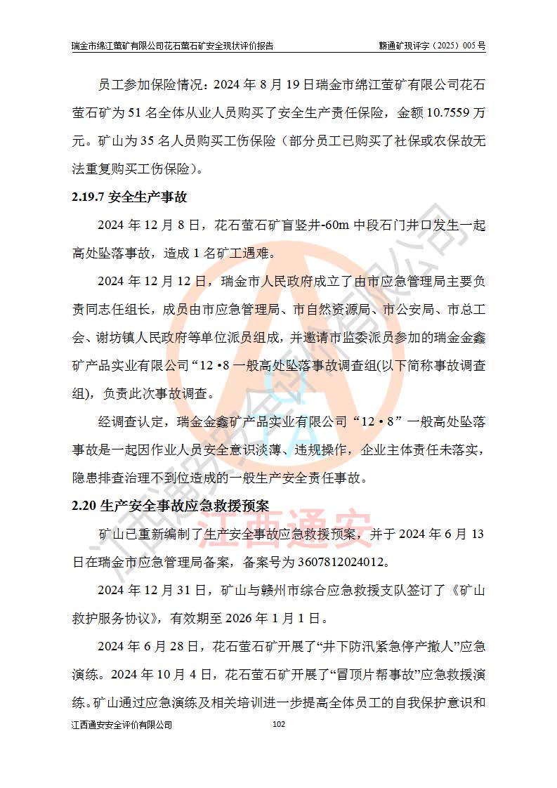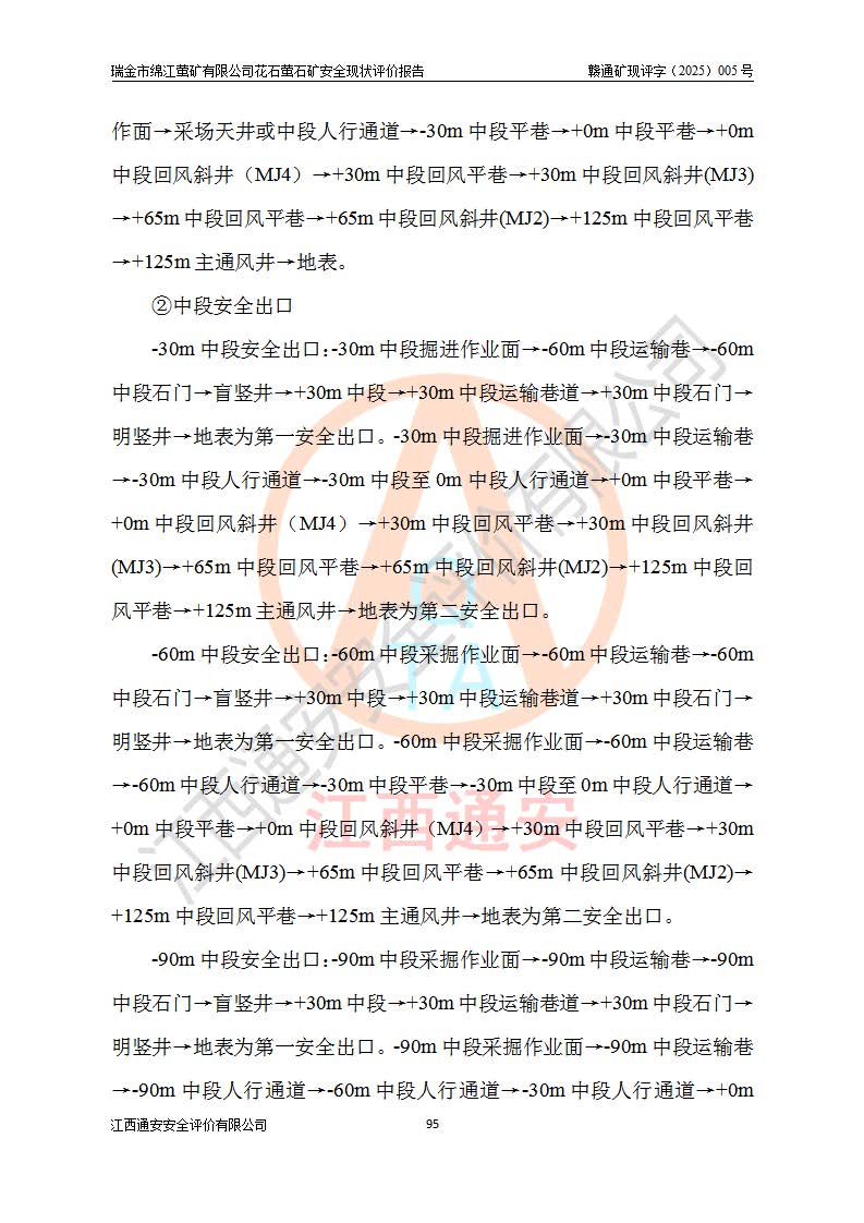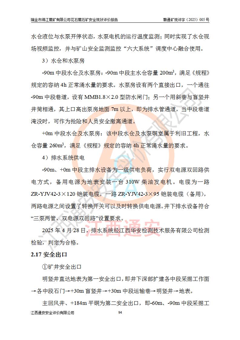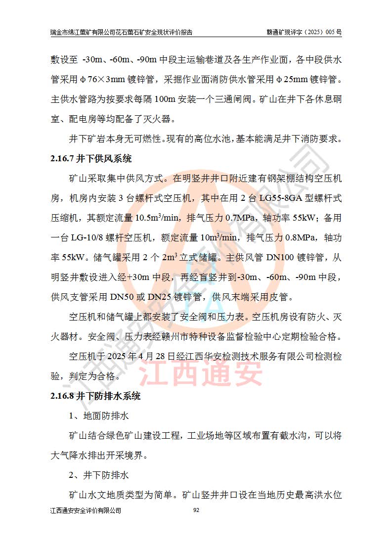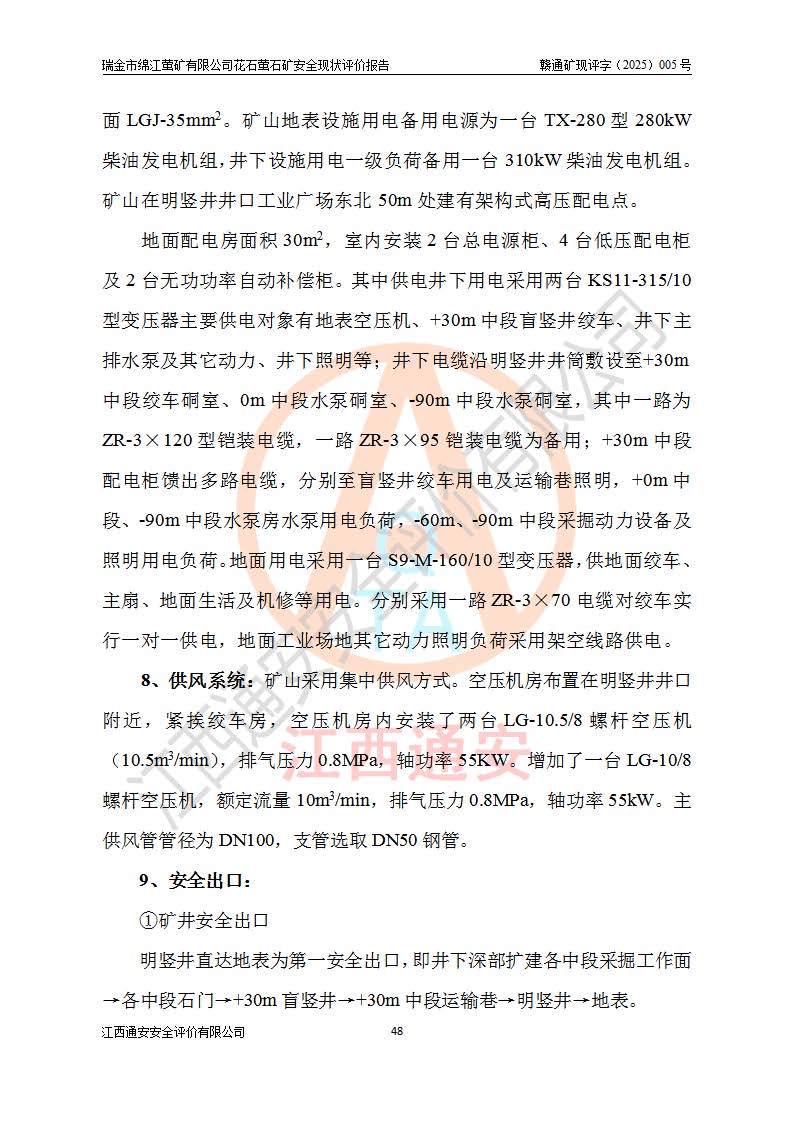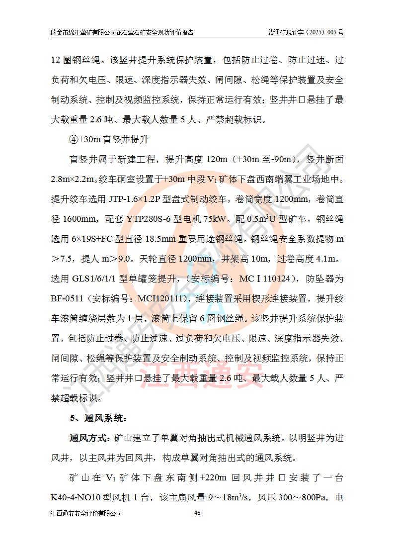 瑞金市綿江螢礦有限公司花石螢石礦區(qū)位于瑞金市南西215°方位直距30km處,礦區(qū)中心位置地理坐標(biāo)為東經(jīng)115°51′24″,北緯25°39′21″,行政區(qū)劃屬瑞金市謝坊鎮(zhèn)管轄。 礦山前身為瑞金市金鑫礦產(chǎn)品實(shí)業(yè)有限公司花石螢礦。為了進(jìn)一步穩(wěn)固螢石礦產(chǎn)業(yè)鏈,2024年9月瑞金市綿江螢礦有限公司申請(qǐng)將瑞金市金鑫礦產(chǎn)品實(shí)業(yè)有限公司花石螢礦采礦權(quán)**至其公司。2025年4月6日,花石螢石礦完成了采礦權(quán)人**手續(xù),并取得了新采礦許可證。 該螢石礦區(qū)開采始于上世紀(jì)九十年代,由當(dāng)?shù)孛癖娫诨ㄊV點(diǎn)和廟背坑礦點(diǎn)零星開采(廟背坑礦點(diǎn)位于花石礦點(diǎn)東側(cè),兩個(gè)礦點(diǎn)礦體直線距離約1km,廟背坑礦點(diǎn)已停止采礦活動(dòng)。本次評(píng)價(jià)對(duì)象為花石礦點(diǎn))。本世紀(jì)初,經(jīng)礦業(yè)秩序整頓、規(guī)范礦山開采,兩礦點(diǎn)分別由不同采礦權(quán)人依法辦理了采礦許可證,即廟背坑螢礦和花石螢石礦。2005年12月,根據(jù)贛州市人民**《贛市府辦發(fā)〔2005〕14號(hào)》文件有關(guān)礦業(yè)權(quán)整合的指示精神要求,兩個(gè)采礦權(quán)整合為一個(gè)采礦權(quán)人,即瑞金市金鑫礦產(chǎn)品實(shí)業(yè)有限公司,整合后采礦權(quán)面積2.4707km2,開采標(biāo)高+220m~0m。整合后,2011年8月,花石螢石礦委托江西省冶金設(shè)計(jì)院有限責(zé)任公司編制了《瑞金市金鑫礦產(chǎn)品實(shí)業(yè)有限公司花石螢礦地下開采整改初步設(shè)計(jì)安全專篇》。整改設(shè)計(jì)開采對(duì)象為花石區(qū)段V1礦體,采用豎井+盲豎井聯(lián)合開拓,主要井筒為SJ3豎井、MJ1盲豎井,SJ3豎井連接+125m中段,采用JTP-1.2×1.0型礦用提升絞車提升,MJ1盲豎井連接+65m中段、+83m中段,采用JTK-1.0×0.8型塊式制動(dòng)礦用提升絞車提升。設(shè)計(jì)開采深度+220m至+67m標(biāo)高,共布置+125m、+83m、+65m三個(gè)中段;設(shè)計(jì)生產(chǎn)規(guī)模為4萬噸/年,采礦方法選用淺孔留礦法。 根據(jù)整改設(shè)計(jì)要求,礦山經(jīng)過近一年多的整改施工,2012年9月通過由原贛州市安全生產(chǎn)監(jiān)督管理局組織的安全設(shè)施整改驗(yàn)收。2012年9月26日取得了由原江西省安全生產(chǎn)監(jiān)督管理局延期換發(fā)的《安全生產(chǎn)許可證》(編號(hào):FM安許證字[2005]M0033號(hào)),許可范圍:螢石礦4萬噸/年,豎井+盲豎井聯(lián)合開拓,+67m中段地下開采。 由于原整改設(shè)計(jì)范圍內(nèi)(+67m以上中段)V1礦體資源儲(chǔ)量無法使礦井達(dá)到持續(xù)穩(wěn)定的生產(chǎn)接替,根據(jù)2011年11月264核工業(yè)大隊(duì)《江西省瑞金市花石螢石礦資源儲(chǔ)量核實(shí)報(bào)告》及礦山提交的2013年度資源儲(chǔ)量動(dòng)態(tài)檢測(cè)報(bào)告。2013年4月,花石螢石礦又委托江西省冶金設(shè)計(jì)院有限責(zé)任公司為其編制了《瑞金市金鑫礦產(chǎn)品實(shí)業(yè)有限公司花石螢礦花石礦區(qū)地下開采改建工程初步設(shè)計(jì)安全專篇》。設(shè)計(jì)開采范圍+83m~+0m標(biāo)高;采用豎井開拓。設(shè)計(jì)新建開拓工程為新豎井及+83m、+40m、+0m三個(gè)中段。采礦方法為淺孔留礦法。 由于部分工程與設(shè)計(jì)不符。2014年10月,礦山委托江西省冶金設(shè)計(jì)院有限責(zé)任公司編制了《瑞金市金鑫礦產(chǎn)品實(shí)業(yè)有限公司花石螢礦花石礦區(qū)地下開采改建工程變更設(shè)計(jì)》,其中段布置變更為+30m、+0m中段;通風(fēng)系統(tǒng)變更為以新豎井為進(jìn)風(fēng)井;采用SJ3北東已有的平峒(PD)及平硐內(nèi)的人行、回風(fēng)斜巷MXJ1、MXJ2 、MXJ3并配置相關(guān)工程后作為礦區(qū)北東翼礦體開采的北東翼回風(fēng)系統(tǒng)。主扇安裝于+190m中段回風(fēng)道。 2015年9月,礦山改建工程安全設(shè)施通過了原江西省安全生產(chǎn)監(jiān)督管理局組織專家組竣工驗(yàn)收,并取得了原江西省安監(jiān)局延期換發(fā)的《安全生產(chǎn)許可證》(編號(hào):FM安許證字[2005]M0033號(hào)),許可范圍:螢石礦4萬噸/年,豎井開拓,+30m、0m中段地下開采。 花石螢礦V1礦體經(jīng)過多年開采后,原改建工程設(shè)計(jì)范圍內(nèi)(+0m以上中段)螢石礦資源儲(chǔ)量日漸減少。為了擴(kuò)大礦區(qū)資源儲(chǔ)量,延長(zhǎng)礦山服務(wù)年限,查明礦區(qū)深部螢石礦資源儲(chǔ)量。2014年礦山申請(qǐng)了采礦權(quán)變更開采深度的請(qǐng)示。2015年1月16日礦山取得了原贛州市礦產(chǎn)資源管理局頒發(fā)的劃定礦區(qū)范圍批復(fù)(贛市礦劃復(fù)[2015]0001號(hào)),劃定礦區(qū)范圍面積2.47km2,礦區(qū)范圍由7個(gè)拐點(diǎn)圈定,開采深度由+220m~-150m。同年,礦山委托江西省核工業(yè)地質(zhì)局二六四大隊(duì)編制完成了《江西省瑞金市花石螢石礦區(qū)資源儲(chǔ)量核實(shí)報(bào)告》并經(jīng)過了贛州市金輝礦業(yè)技術(shù)服務(wù)有限公司評(píng)審(贛金輝儲(chǔ)審字[2014]12號(hào)),原贛州市礦產(chǎn)資源管理局以“贛市礦儲(chǔ)備字[2014]18號(hào))”文對(duì)該報(bào)告?zhèn)浒浮?/span> 為了使礦井達(dá)到持續(xù)穩(wěn)定的生產(chǎn)接替,保持三級(jí)礦量平衡,2015年7月委托了江西省冶金設(shè)計(jì)院有