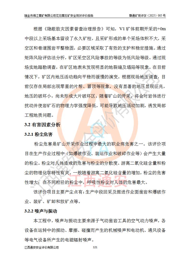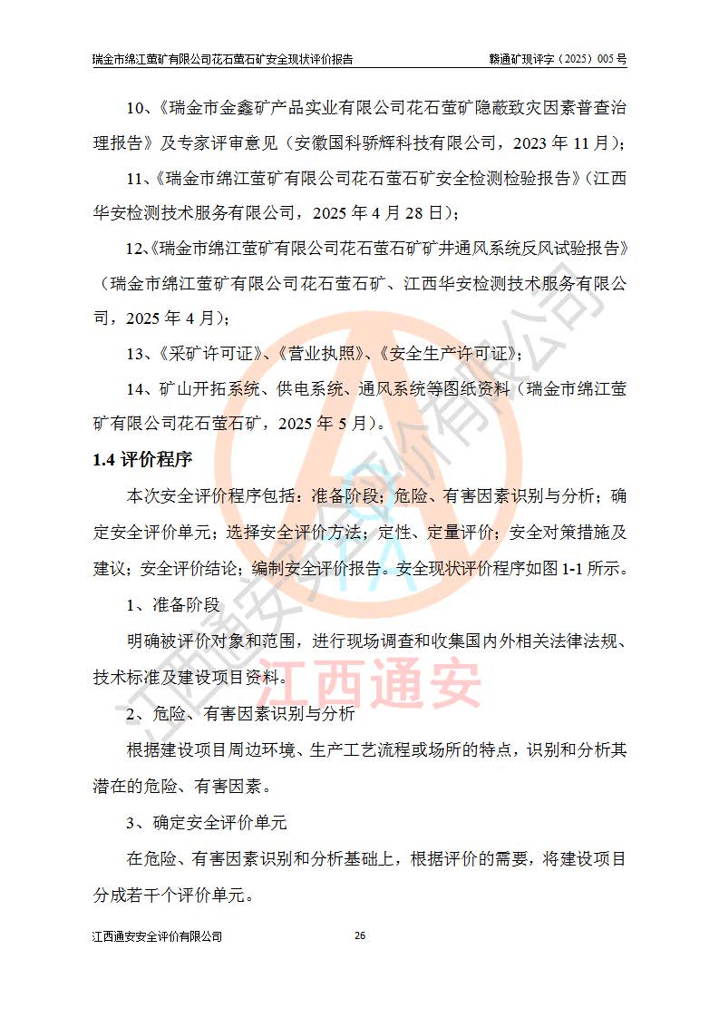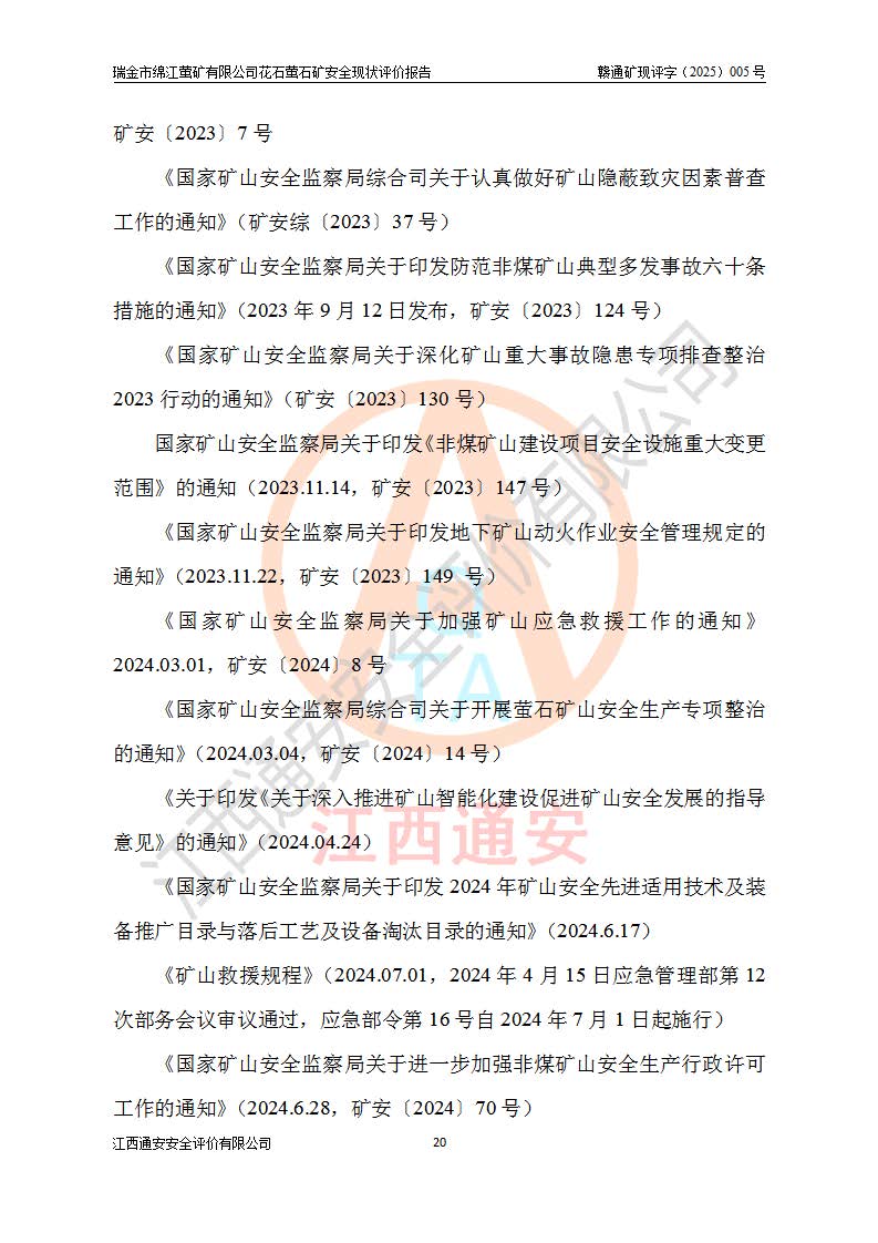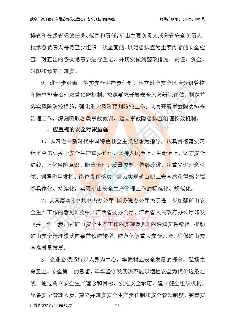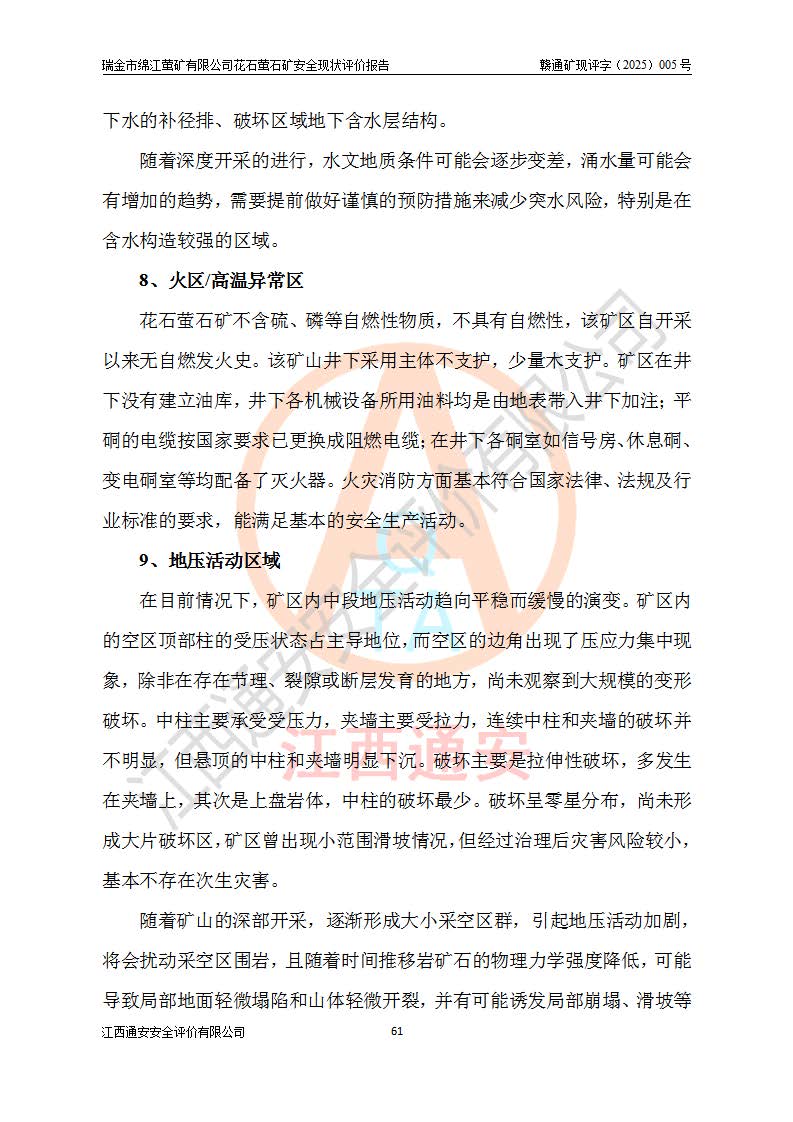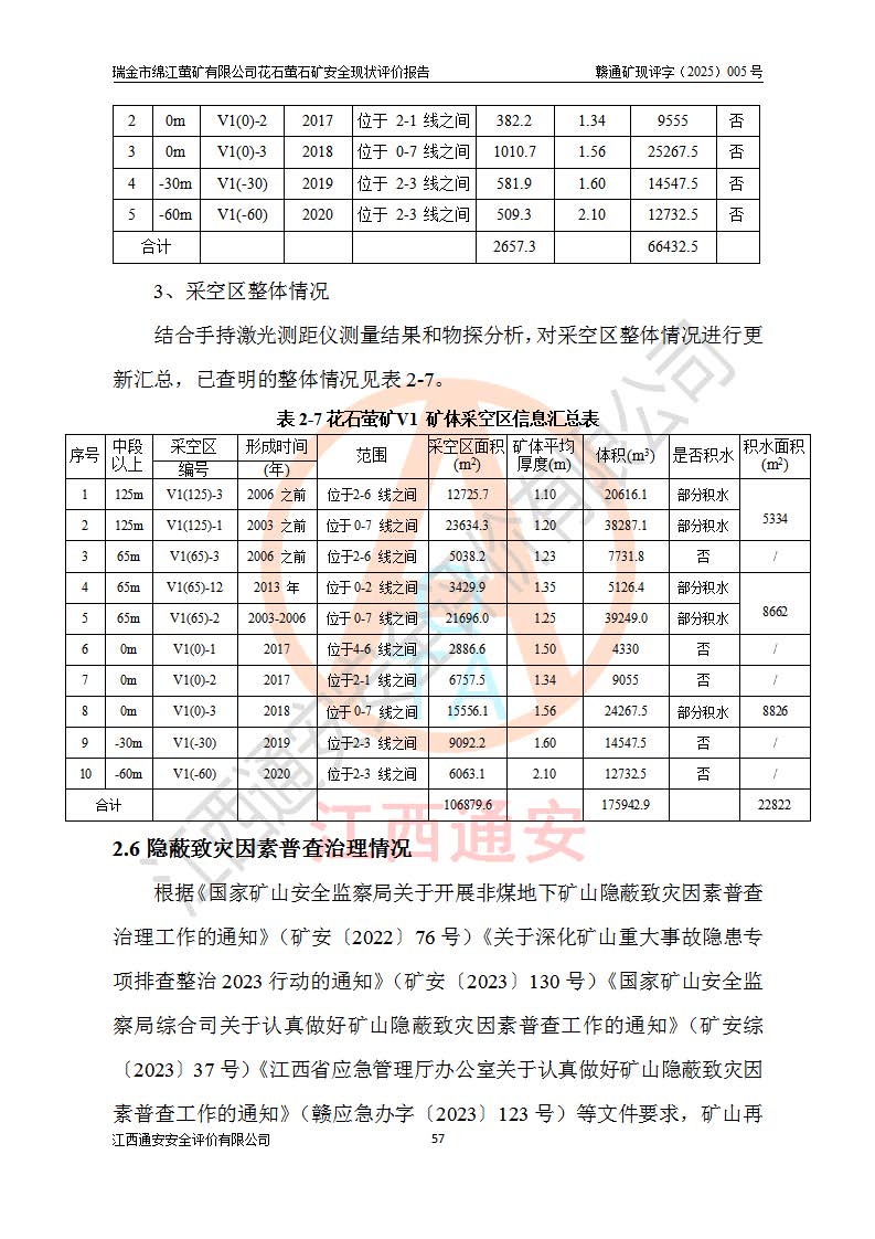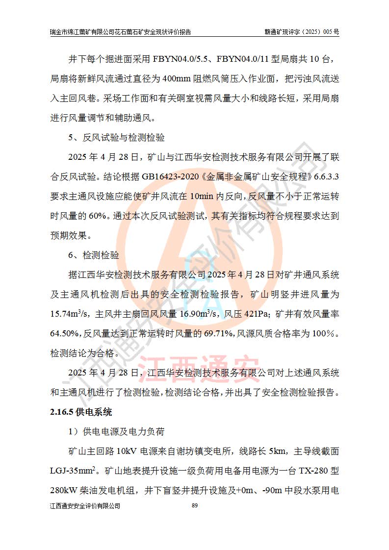 瑞金市綿江螢礦有限公司花石螢石礦區(qū)位于瑞金市南西215°方位直距30km處,礦區(qū)中心位置地理坐標(biāo)為東經(jīng)115°51′24″,北緯25°39′21″,行政區(qū)劃屬瑞金市謝坊鎮(zhèn)管轄。 礦山前身為瑞金市金鑫礦產(chǎn)品實(shí)業(yè)有限公司花石螢礦。為了進(jìn)一步穩(wěn)固螢石礦產(chǎn)業(yè)鏈,2024年9月瑞金市綿江螢礦有限公司申請(qǐng)將瑞金市金鑫礦產(chǎn)品實(shí)業(yè)有限公司花石螢礦采礦權(quán)**至其公司。2025年4月6日,花石螢石礦完成了采礦權(quán)人**手續(xù),并取得了新采礦許可證。 該螢石礦區(qū)開采始于上世紀(jì)九十年代,由當(dāng)?shù)孛癖娫诨ㄊV點(diǎn)和廟背坑礦點(diǎn)零星開采(廟背坑礦點(diǎn)位于花石礦點(diǎn)東側(cè),兩個(gè)礦點(diǎn)礦體直線距離約1km,廟背坑礦點(diǎn)已停止采礦活動(dòng)。本次評(píng)價(jià)對(duì)象為花石礦點(diǎn))。本世紀(jì)初,經(jīng)礦業(yè)秩序整頓、規(guī)范礦山開采,兩礦點(diǎn)分別由不同采礦權(quán)人依法辦理了采礦許可證,即廟背坑螢礦和花石螢石礦。2005年12月,根據(jù)贛州市人民**《贛市府辦發(fā)〔2005〕14號(hào)》文件有關(guān)礦業(yè)權(quán)整合的指示精神要求,兩個(gè)采礦權(quán)整合為一個(gè)采礦權(quán)人,即瑞金市金鑫礦產(chǎn)品實(shí)業(yè)有限公司,整合后采礦權(quán)面積2.4707km2,開采標(biāo)高+220m~0m。整合后,2011年8月,花石螢石礦委托江西省冶金設(shè)計(jì)院有限責(zé)任公司編制了《瑞金市金鑫礦產(chǎn)品實(shí)業(yè)有限公司花石螢礦地下開采整改初步設(shè)計(jì)安全專篇》。整改設(shè)計(jì)開采對(duì)象為花石區(qū)段V1礦體,采用豎井+盲豎井聯(lián)合開拓,主要井筒為SJ3豎井、MJ1盲豎井,SJ3豎井連接+125m中段,采用JTP-1.2×1.0型礦用提升絞車提升,MJ1盲豎井連接+65m中段、+83m中段,采用JTK-1.0×0.8型塊式制動(dòng)礦用提升絞車提升。設(shè)計(jì)開采深度+220m至+67m標(biāo)高,共布置+125m、+83m、+65m三個(gè)中段;設(shè)計(jì)生產(chǎn)規(guī)模為4萬噸/年,采礦方法選用淺孔留礦法。 根據(jù)整改設(shè)計(jì)要求,礦山經(jīng)過近一年多的整改施工,2012年9月通過由原贛州市安全生產(chǎn)監(jiān)督管理局組織的安全設(shè)施整改驗(yàn)收。2012年9月26日取得了由原江西省安全生產(chǎn)監(jiān)督管理局延期換發(fā)的《安全生產(chǎn)許可證》(編號(hào):FM安許證字[2005]M0033號(hào)),許可范圍:螢石礦4萬噸/年,豎井+盲豎井聯(lián)合開拓,+67m中段地下開采。 由于原整改設(shè)計(jì)范圍內(nèi)(+67m以上中段)V1礦體資源儲(chǔ)量無法使礦井達(dá)到持續(xù)穩(wěn)定的生產(chǎn)接替,根據(jù)2011年11月264核工業(yè)大隊(duì)《江西省瑞金市花石螢石礦資源儲(chǔ)量核實(shí)報(bào)告》及礦山提交的2013年度資源儲(chǔ)量動(dòng)態(tài)檢測(cè)報(bào)告。2013年4月,花石螢石礦又委托江西省冶金設(shè)計(jì)院有限責(zé)任公司為其編制了《瑞金市金鑫礦產(chǎn)品實(shí)業(yè)有限公司花石螢礦花石礦區(qū)地下開采改建工程初步設(shè)計(jì)安全專篇》。設(shè)計(jì)開采范圍+83m~+0m標(biāo)高;采用豎井開拓。設(shè)計(jì)新建開拓工程為新豎井及+83m、+40m、+0m三個(gè)中段。采礦方法為淺孔留礦法。 由于部分工程與設(shè)計(jì)不符。2014年10月,礦山委托江西省冶金設(shè)計(jì)院有限責(zé)任公司編制了《瑞金市金鑫礦產(chǎn)品實(shí)業(yè)有限公司花石螢礦花石礦區(qū)地下開采改建工程變更設(shè)計(jì)》,其中段布置變更為+30m、+0m中段;通風(fēng)系統(tǒng)變更為以新豎井為進(jìn)風(fēng)井;采用SJ3北東已有的平峒(PD)及平硐內(nèi)的人行、回風(fēng)斜巷MXJ1、MXJ2 、MXJ3并配置相關(guān)工程后作為礦區(qū)北東翼礦體開采的北東翼回風(fēng)系統(tǒng)。主扇安裝于+190m中段回風(fēng)道。 2015年9月,礦山改建工程安全設(shè)施通過了原江西省安全生產(chǎn)監(jiān)督管理局組織專家組竣工驗(yàn)收,并取得了原江西省安監(jiān)局延期換發(fā)的《安全生產(chǎn)許可證》(編號(hào):FM安許證字[2005]M0033號(hào)),許可范圍:螢石礦4萬噸/年,豎井開拓,+30m、0m中段地下開采。 花石螢礦V1礦體經(jīng)過多年開采后,原改建工程設(shè)計(jì)范圍內(nèi)(+0m以上中段)螢石礦資源儲(chǔ)量日漸減少。為了擴(kuò)大礦區(qū)資源儲(chǔ)量,延長(zhǎng)礦山服務(wù)年限,查明礦區(qū)深部螢石礦資源儲(chǔ)量。2014年礦山申請(qǐng)了采礦權(quán)變更開采深度的請(qǐng)示。2015年1月16日礦山取得了原贛州市礦產(chǎn)資源管理局頒發(fā)的劃定礦區(qū)范圍批復(fù)(贛市礦劃復(fù)[2015]0001號(hào)),劃定礦區(qū)范圍面積2.47km2,礦區(qū)范圍由7個(gè)拐點(diǎn)圈定,開采深度由+220m~-150m。同年,礦山委托江西省核工業(yè)地質(zhì)局二六四大隊(duì)編制完成了《江西省瑞金市花石螢石礦區(qū)資源儲(chǔ)量核實(shí)報(bào)告》并經(jīng)過了贛州市金輝礦業(yè)技術(shù)服務(wù)有限公司評(píng)審(贛金輝儲(chǔ)審字[2014]12號(hào)),原贛州市礦產(chǎn)資源管理局以“贛市礦儲(chǔ)備字[2014]18號(hào))”文對(duì)該報(bào)告?zhèn)浒浮?/span> 為了使礦井達(dá)到持續(xù)穩(wěn)定的生產(chǎn)接替,保持三級(jí)礦量平衡,2015年7月委托了江西省冶金設(shè)計(jì)院有