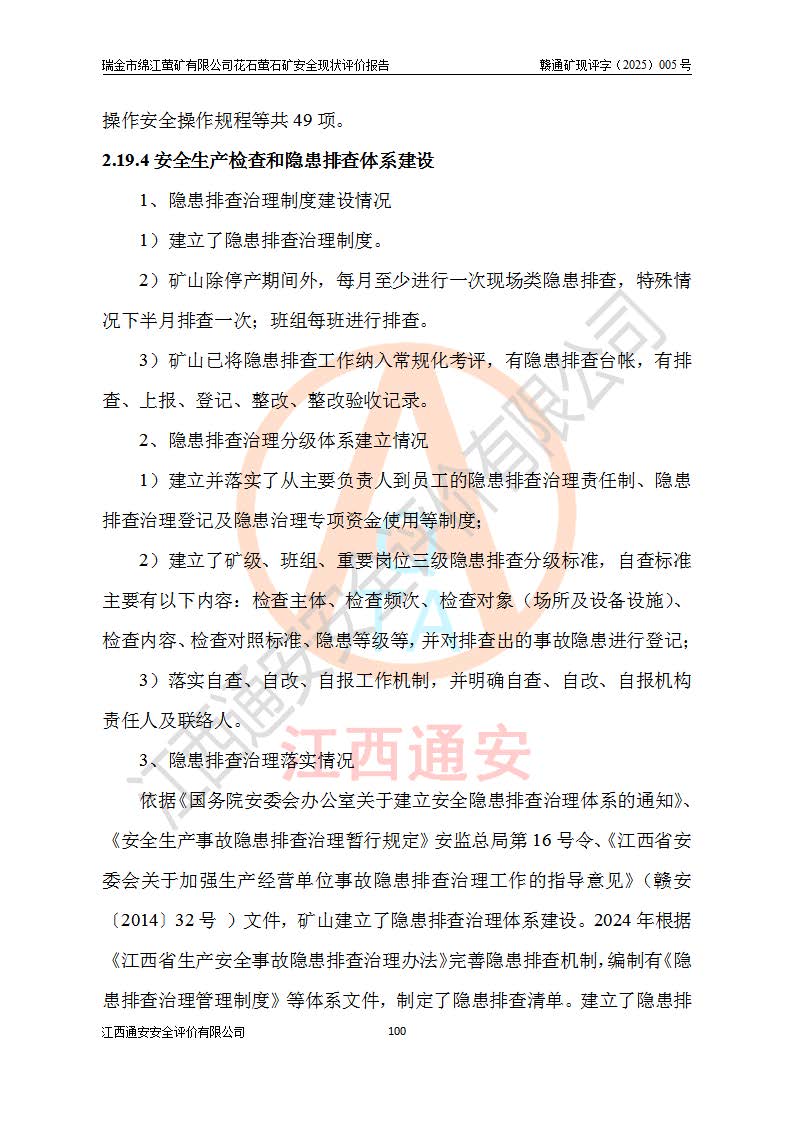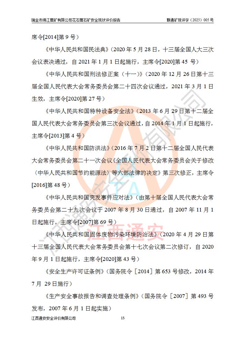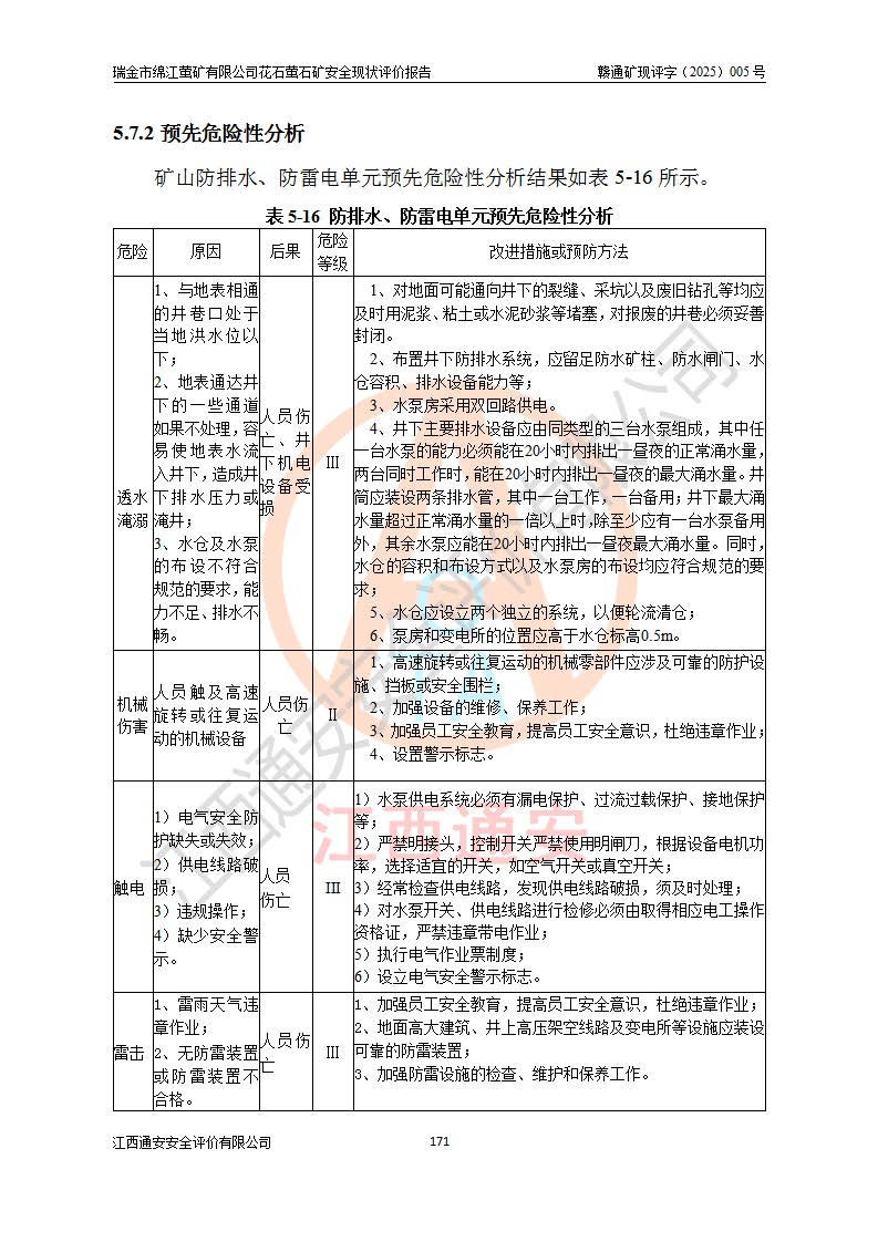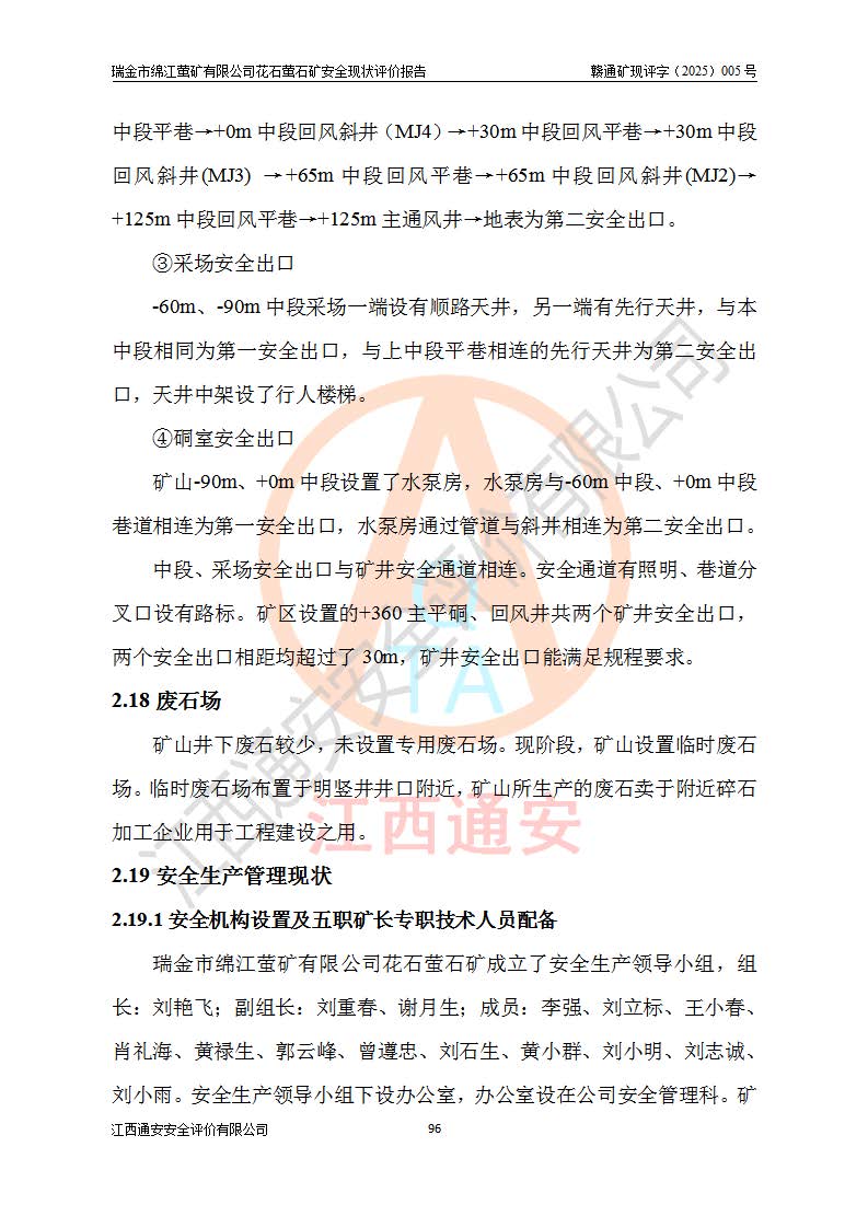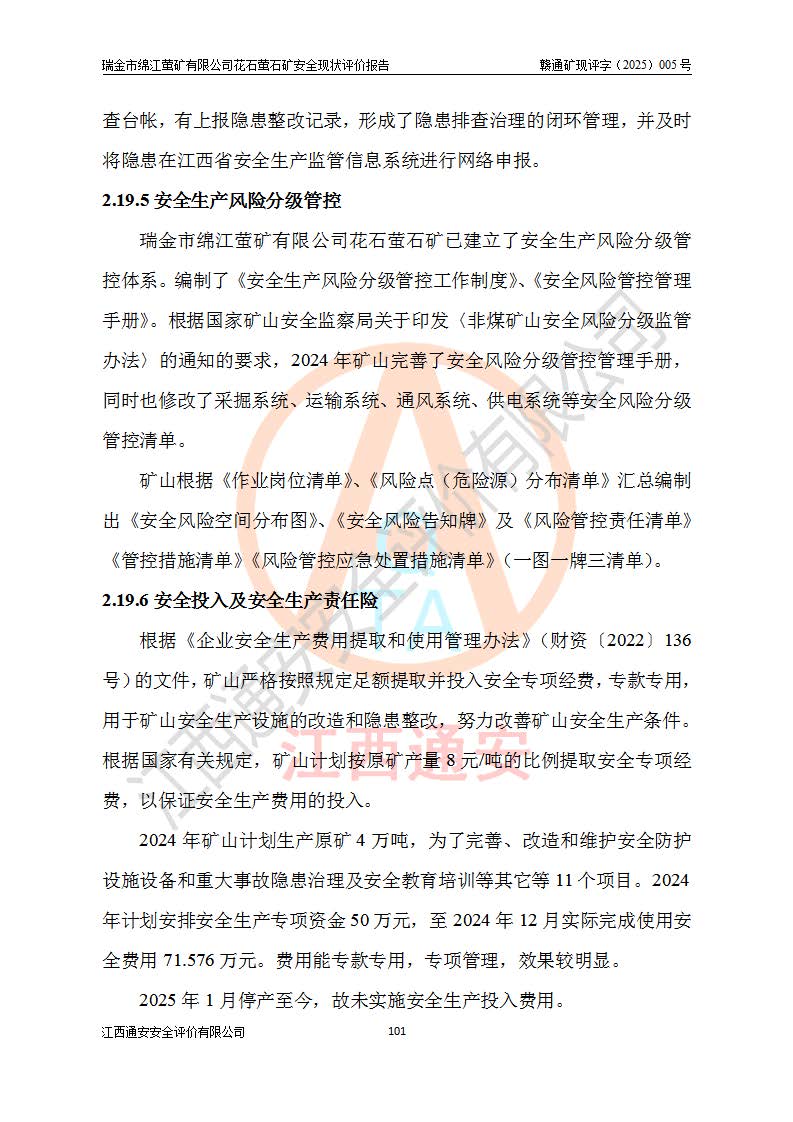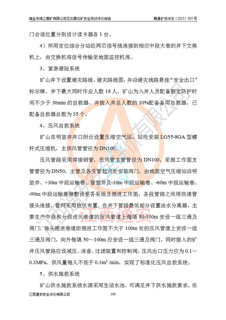 瑞金市綿江螢礦有限公司花石螢石礦區(qū)位于瑞金市南西215°方位直距30km處,礦區(qū)中心位置地理坐標(biāo)為東經(jīng)115°51′24″,北緯25°39′21″,行政區(qū)劃屬瑞金市謝坊鎮(zhèn)管轄。 礦山前身為瑞金市金鑫礦產(chǎn)品實(shí)業(yè)有限公司花石螢礦。為了進(jìn)一步穩(wěn)固螢石礦產(chǎn)業(yè)鏈,2024年9月瑞金市綿江螢礦有限公司申請(qǐng)將瑞金市金鑫礦產(chǎn)品實(shí)業(yè)有限公司花石螢礦采礦權(quán)**至其公司。2025年4月6日,花石螢石礦完成了采礦權(quán)人**手續(xù),并取得了新采礦許可證。 該螢石礦區(qū)開采始于上世紀(jì)九十年代,由當(dāng)?shù)孛癖娫诨ㄊV點(diǎn)和廟背坑礦點(diǎn)零星開采(廟背坑礦點(diǎn)位于花石礦點(diǎn)東側(cè),兩個(gè)礦點(diǎn)礦體直線距離約1km,廟背坑礦點(diǎn)已停止采礦活動(dòng)。本次評(píng)價(jià)對(duì)象為花石礦點(diǎn))。本世紀(jì)初,經(jīng)礦業(yè)秩序整頓、規(guī)范礦山開采,兩礦點(diǎn)分別由不同采礦權(quán)人依法辦理了采礦許可證,即廟背坑螢礦和花石螢石礦。2005年12月,根據(jù)贛州市人民**《贛市府辦發(fā)〔2005〕14號(hào)》文件有關(guān)礦業(yè)權(quán)整合的指示精神要求,兩個(gè)采礦權(quán)整合為一個(gè)采礦權(quán)人,即瑞金市金鑫礦產(chǎn)品實(shí)業(yè)有限公司,整合后采礦權(quán)面積2.4707km2,開采標(biāo)高+220m~0m。整合后,2011年8月,花石螢石礦委托江西省冶金設(shè)計(jì)院有限責(zé)任公司編制了《瑞金市金鑫礦產(chǎn)品實(shí)業(yè)有限公司花石螢礦地下開采整改初步設(shè)計(jì)安全專篇》。整改設(shè)計(jì)開采對(duì)象為花石區(qū)段V1礦體,采用豎井+盲豎井聯(lián)合開拓,主要井筒為SJ3豎井、MJ1盲豎井,SJ3豎井連接+125m中段,采用JTP-1.2×1.0型礦用提升絞車提升,MJ1盲豎井連接+65m中段、+83m中段,采用JTK-1.0×0.8型塊式制動(dòng)礦用提升絞車提升。設(shè)計(jì)開采深度+220m至+67m標(biāo)高,共布置+125m、+83m、+65m三個(gè)中段;設(shè)計(jì)生產(chǎn)規(guī)模為4萬噸/年,采礦方法選用淺孔留礦法。 根據(jù)整改設(shè)計(jì)要求,礦山經(jīng)過近一年多的整改施工,2012年9月通過由原贛州市安全生產(chǎn)監(jiān)督管理局組織的安全設(shè)施整改驗(yàn)收。2012年9月26日取得了由原江西省安全生產(chǎn)監(jiān)督管理局延期換發(fā)的《安全生產(chǎn)許可證》(編號(hào):FM安許證字[2005]M0033號(hào)),許可范圍:螢石礦4萬噸/年,豎井+盲豎井聯(lián)合開拓,+67m中段地下開采。 由于原整改設(shè)計(jì)范圍內(nèi)(+67m以上中段)V1礦體資源儲(chǔ)量無法使礦井達(dá)到持續(xù)穩(wěn)定的生產(chǎn)接替,根據(jù)2011年11月264核工業(yè)大隊(duì)《江西省瑞金市花石螢石礦資源儲(chǔ)量核實(shí)報(bào)告》及礦山提交的2013年度資源儲(chǔ)量動(dòng)態(tài)檢測(cè)報(bào)告。2013年4月,花石螢石礦又委托江西省冶金設(shè)計(jì)院有限責(zé)任公司為其編制了《瑞金市金鑫礦產(chǎn)品實(shí)業(yè)有限公司花石螢礦花石礦區(qū)地下開采改建工程初步設(shè)計(jì)安全專篇》。設(shè)計(jì)開采范圍+83m~+0m標(biāo)高;采用豎井開拓。設(shè)計(jì)新建開拓工程為新豎井及+83m、+40m、+0m三個(gè)中段。采礦方法為淺孔留礦法。 由于部分工程與設(shè)計(jì)不符。2014年10月,礦山委托江西省冶金設(shè)計(jì)院有限責(zé)任公司編制了《瑞金市金鑫礦產(chǎn)品實(shí)業(yè)有限公司花石螢礦花石礦區(qū)地下開采改建工程變更設(shè)計(jì)》,其中段布置變更為+30m、+0m中段;通風(fēng)系統(tǒng)變更為以新豎井為進(jìn)風(fēng)井;采用SJ3北東已有的平峒(PD)及平硐內(nèi)的人行、回風(fēng)斜巷MXJ1、MXJ2 、MXJ3并配置相關(guān)工程后作為礦區(qū)北東翼礦體開采的北東翼回風(fēng)系統(tǒng)。主扇安裝于+190m中段回風(fēng)道。 2015年9月,礦山改建工程安全設(shè)施通過了原江西省安全生產(chǎn)監(jiān)督管理局組織專家組竣工驗(yàn)收,并取得了原江西省安監(jiān)局延期換發(fā)的《安全生產(chǎn)許可證》(編號(hào):FM安許證字[2005]M0033號(hào)),許可范圍:螢石礦4萬噸/年,豎井開拓,+30m、0m中段地下開采。 花石螢礦V1礦體經(jīng)過多年開采后,原改建工程設(shè)計(jì)范圍內(nèi)(+0m以上中段)螢石礦資源儲(chǔ)量日漸減少。為了擴(kuò)大礦區(qū)資源儲(chǔ)量,延長(zhǎng)礦山服務(wù)年限,查明礦區(qū)深部螢石礦資源儲(chǔ)量。2014年礦山申請(qǐng)了采礦權(quán)變更開采深度的請(qǐng)示。2015年1月16日礦山取得了原贛州市礦產(chǎn)資源管理局頒發(fā)的劃定礦區(qū)范圍批復(fù)(贛市礦劃復(fù)[2015]0001號(hào)),劃定礦區(qū)范圍面積2.47km2,礦區(qū)范圍由7個(gè)拐點(diǎn)圈定,開采深度由+220m~-150m。同年,礦山委托江西省核工業(yè)地質(zhì)局二六四大隊(duì)編制完成了《江西省瑞金市花石螢石礦區(qū)資源儲(chǔ)量核實(shí)報(bào)告》并經(jīng)過了贛州市金輝礦業(yè)技術(shù)服務(wù)有限公司評(píng)審(贛金輝儲(chǔ)審字[2014]12號(hào)),原贛州市礦產(chǎn)資源管理局以“贛市礦儲(chǔ)備字[2014]18號(hào))”文對(duì)該報(bào)告?zhèn)浒浮?/span> 為了使礦井達(dá)到持續(xù)穩(wěn)定的生產(chǎn)接替,保持三級(jí)礦量平衡,2015年7月委托了江西省冶金設(shè)計(jì)院有