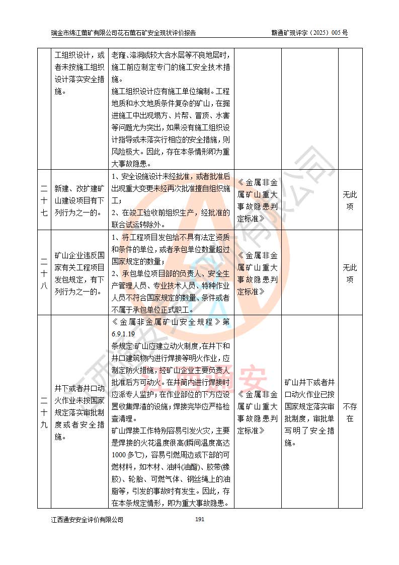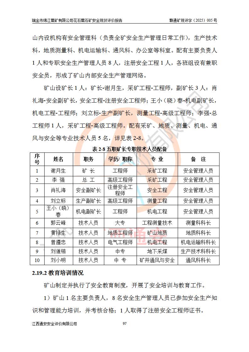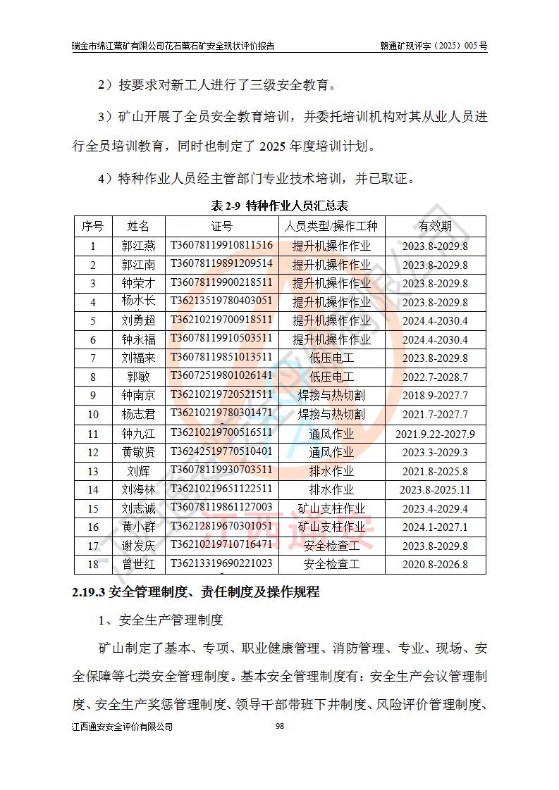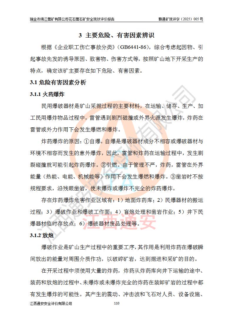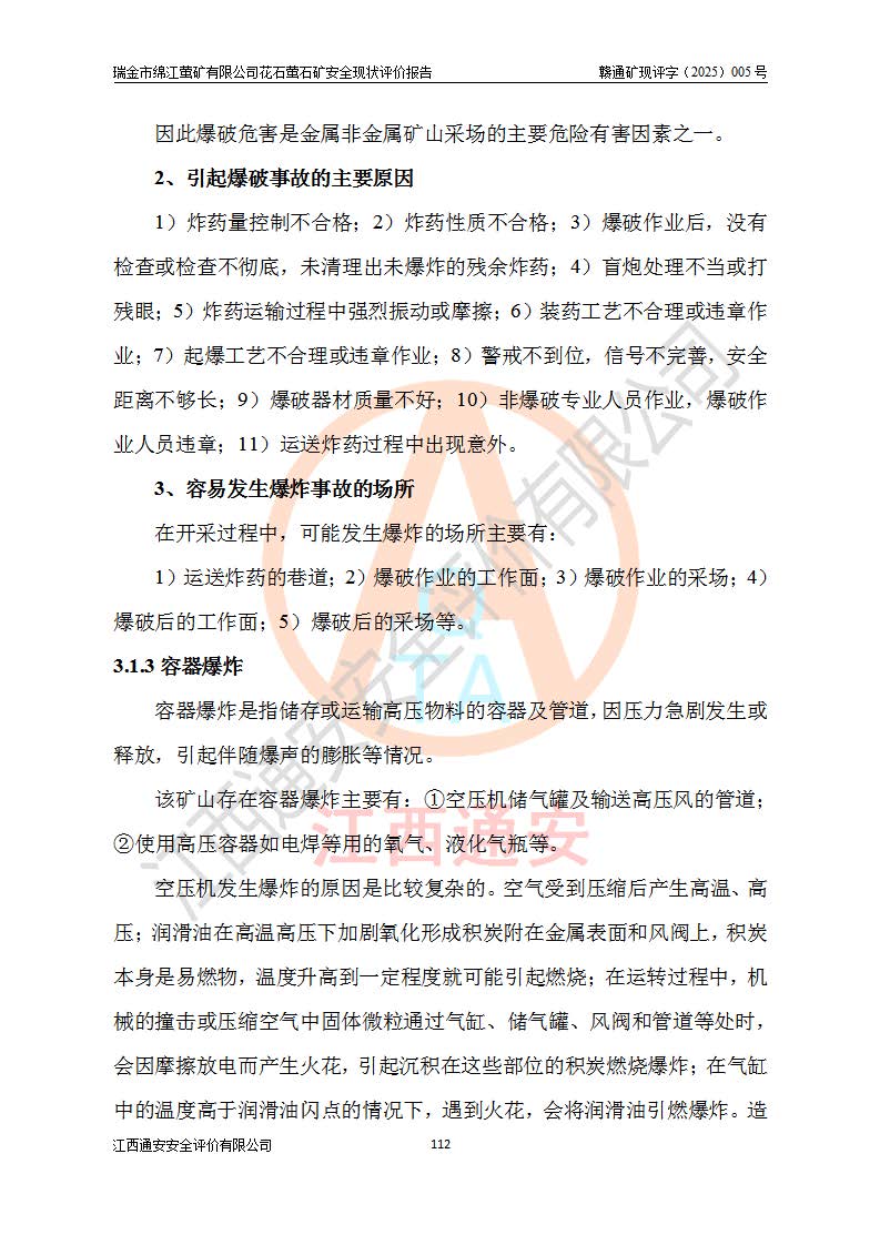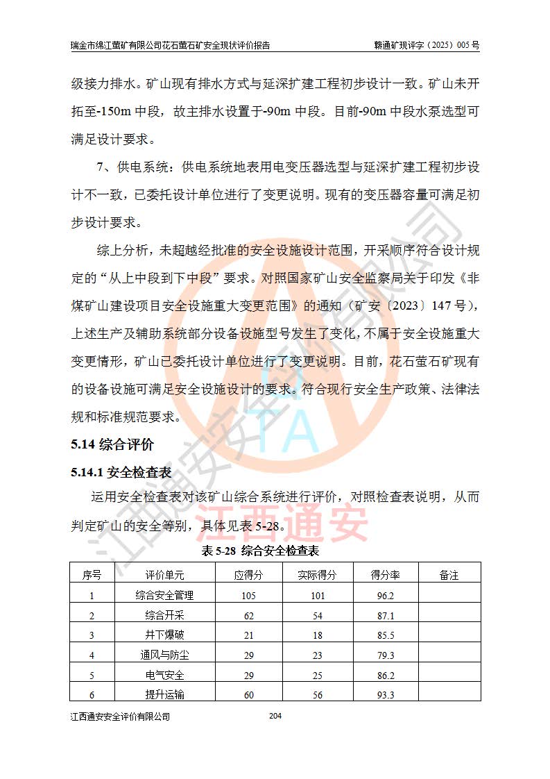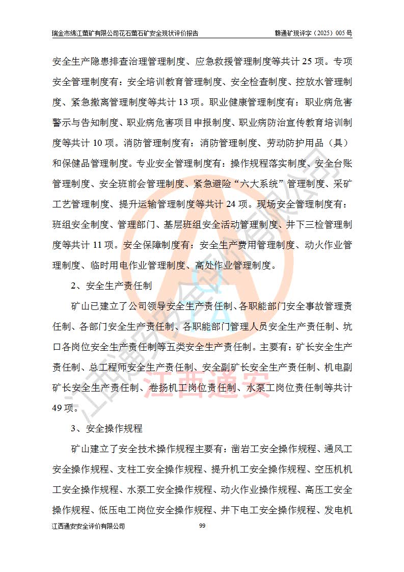瑞金市綿江螢礦有限公司花石螢石礦區(qū)位于瑞金市南西215°方位直距30km處,礦區(qū)中心位置地理坐標(biāo)為東經(jīng)115°51′24″,北緯25°39′21″,行政區(qū)劃屬瑞金市謝坊鎮(zhèn)管轄。 礦山前身為瑞金市金鑫礦產(chǎn)品實(shí)業(yè)有限公司花石螢礦。為了進(jìn)一步穩(wěn)固螢石礦產(chǎn)業(yè)鏈,2024年9月瑞金市綿江螢礦有限公司申請(qǐng)將瑞金市金鑫礦產(chǎn)品實(shí)業(yè)有限公司花石螢礦采礦權(quán)**至其公司。2025年4月6日,花石螢石礦完成了采礦權(quán)人**手續(xù),并取得了新采礦許可證。 該螢石礦區(qū)開采始于上世紀(jì)九十年代,由當(dāng)?shù)孛癖娫诨ㄊV點(diǎn)和廟背坑礦點(diǎn)零星開采(廟背坑礦點(diǎn)位于花石礦點(diǎn)東側(cè),兩個(gè)礦點(diǎn)礦體直線距離約1km,廟背坑礦點(diǎn)已停止采礦活動(dòng)。本次評(píng)價(jià)對(duì)象為花石礦點(diǎn))。本世紀(jì)初,經(jīng)礦業(yè)秩序整頓、規(guī)范礦山開采,兩礦點(diǎn)分別由不同采礦權(quán)人依法辦理了采礦許可證,即廟背坑螢礦和花石螢石礦。2005年12月,根據(jù)贛州市人民**《贛市府辦發(fā)〔2005〕14號(hào)》文件有關(guān)礦業(yè)權(quán)整合的指示精神要求,兩個(gè)采礦權(quán)整合為一個(gè)采礦權(quán)人,即瑞金市金鑫礦產(chǎn)品實(shí)業(yè)有限公司,整合后采礦權(quán)面積2.4707km2,開采標(biāo)高+220m~0m。整合后,2011年8月,花石螢石礦委托江西省冶金設(shè)計(jì)院有限責(zé)任公司編制了《瑞金市金鑫礦產(chǎn)品實(shí)業(yè)有限公司花石螢礦地下開采整改初步設(shè)計(jì)安全專篇》。整改設(shè)計(jì)開采對(duì)象為花石區(qū)段V1礦體,采用豎井+盲豎井聯(lián)合開拓,主要井筒為SJ3豎井、MJ1盲豎井,SJ3豎井連接+125m中段,采用JTP-1.2×1.0型礦用提升絞車提升,MJ1盲豎井連接+65m中段、+83m中段,采用JTK-1.0×0.8型塊式制動(dòng)礦用提升絞車提升。設(shè)計(jì)開采深度+220m至+67m標(biāo)高,共布置+125m、+83m、+65m三個(gè)中段;設(shè)計(jì)生產(chǎn)規(guī)模為4萬噸/年,采礦方法選用淺孔留礦法。 根據(jù)整改設(shè)計(jì)要求,礦山經(jīng)過近一年多的整改施工,2012年9月通過由原贛州市安全生產(chǎn)監(jiān)督管理局組織的安全設(shè)施整改驗(yàn)收。2012年9月26日取得了由原江西省安全生產(chǎn)監(jiān)督管理局延期換發(fā)的《安全生產(chǎn)許可證》(編號(hào):FM安許證字[2005]M0033號(hào)),許可范圍:螢石礦4萬噸/年,豎井+盲豎井聯(lián)合開拓,+67m中段地下開采。 由于原整改設(shè)計(jì)范圍內(nèi)(+67m以上中段)V1礦體資源儲(chǔ)量無法使礦井達(dá)到持續(xù)穩(wěn)定的生產(chǎn)接替,根據(jù)2011年11月264核工業(yè)大隊(duì)《江西省瑞金市花石螢石礦資源儲(chǔ)量核實(shí)報(bào)告》及礦山提交的2013年度資源儲(chǔ)量動(dòng)態(tài)檢測(cè)報(bào)告。2013年4月,花石螢石礦又委托江西省冶金設(shè)計(jì)院有限責(zé)任公司為其編制了《瑞金市金鑫礦產(chǎn)品實(shí)業(yè)有限公司花石螢礦花石礦區(qū)地下開采改建工程初步設(shè)計(jì)安全專篇》。設(shè)計(jì)開采范圍+83m~+0m標(biāo)高;采用豎井開拓。設(shè)計(jì)新建開拓工程為新豎井及+83m、+40m、+0m三個(gè)中段。采礦方法為淺孔留礦法。 由于部分工程與設(shè)計(jì)不符。2014年10月,礦山委托江西省冶金設(shè)計(jì)院有限責(zé)任公司編制了《瑞金市金鑫礦產(chǎn)品實(shí)業(yè)有限公司花石螢礦花石礦區(qū)地下開采改建工程變更設(shè)計(jì)》,其中段布置變更為+30m、+0m中段;通風(fēng)系統(tǒng)變更為以新豎井為進(jìn)風(fēng)井;采用SJ3北東已有的平峒(PD)及平硐內(nèi)的人行、回風(fēng)斜巷MXJ1、MXJ2 、MXJ3并配置相關(guān)工程后作為礦區(qū)北東翼礦體開采的北東翼回風(fēng)系統(tǒng)。主扇安裝于+190m中段回風(fēng)道。 2015年9月,礦山改建工程安全設(shè)施通過了原江西省安全生產(chǎn)監(jiān)督管理局組織專家組竣工驗(yàn)收,并取得了原江西省安監(jiān)局延期換發(fā)的《安全生產(chǎn)許可證》(編號(hào):FM安許證字[2005]M0033號(hào)),許可范圍:螢石礦4萬噸/年,豎井開拓,+30m、0m中段地下開采。 花石螢礦V1礦體經(jīng)過多年開采后,原改建工程設(shè)計(jì)范圍內(nèi)(+0m以上中段)螢石礦資源儲(chǔ)量日漸減少。為了擴(kuò)大礦區(qū)資源儲(chǔ)量,延長(zhǎng)礦山服務(wù)年限,查明礦區(qū)深部螢石礦資源儲(chǔ)量。2014年礦山申請(qǐng)了采礦權(quán)變更開采深度的請(qǐng)示。2015年1月16日礦山取得了原贛州市礦產(chǎn)資源管理局頒發(fā)的劃定礦區(qū)范圍批復(fù)(贛市礦劃復(fù)[2015]0001號(hào)),劃定礦區(qū)范圍面積2.47km2,礦區(qū)范圍由7個(gè)拐點(diǎn)圈定,開采深度由+220m~-150m。同年,礦山委托江西省核工業(yè)地質(zhì)局二六四大隊(duì)編制完成了《江西省瑞金市花石螢石礦區(qū)資源儲(chǔ)量核實(shí)報(bào)告》并經(jīng)過了贛州市金輝礦業(yè)技術(shù)服務(wù)有限公司評(píng)審(贛金輝儲(chǔ)審字[2014]12號(hào)),原贛州市礦產(chǎn)資源管理局以“贛市礦儲(chǔ)備字[2014]18號(hào))”文對(duì)該報(bào)告?zhèn)浒浮?/span> 為了使礦井達(dá)到持續(xù)穩(wěn)定的生產(chǎn)接替,保持三級(jí)礦量平衡,2015年7月委托了江西省冶金設(shè)計(jì)院有