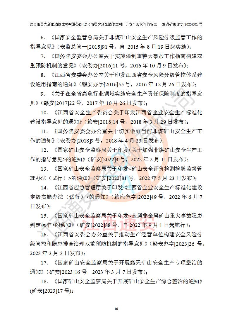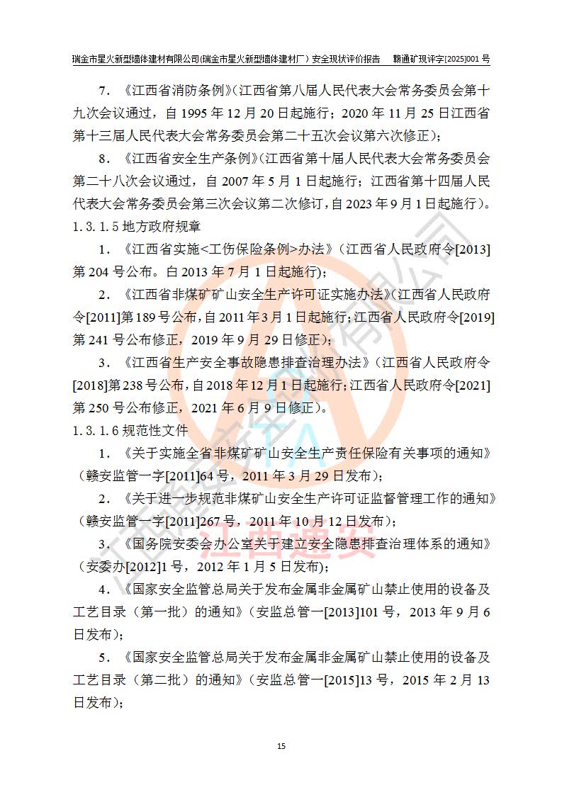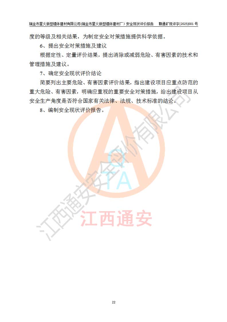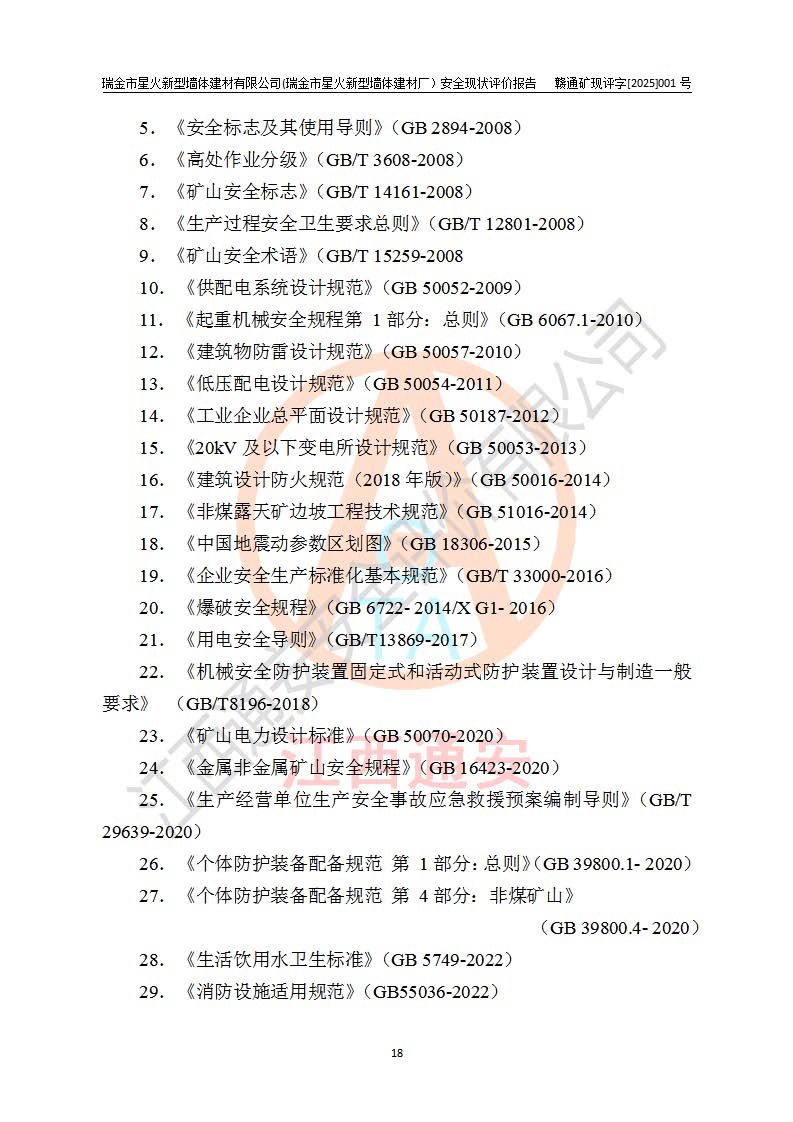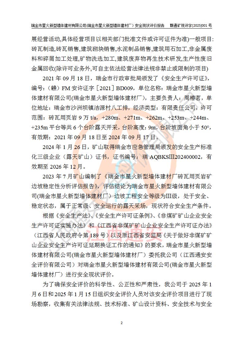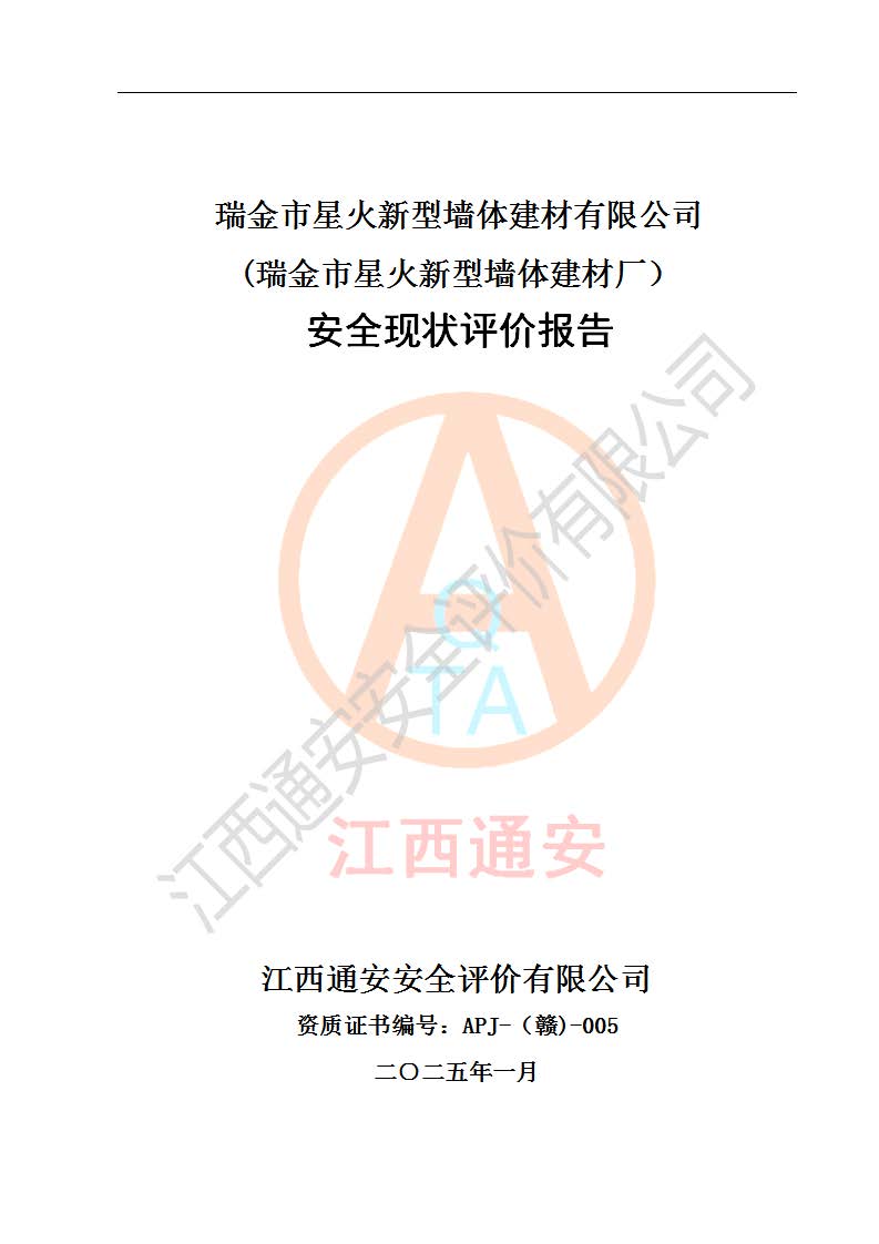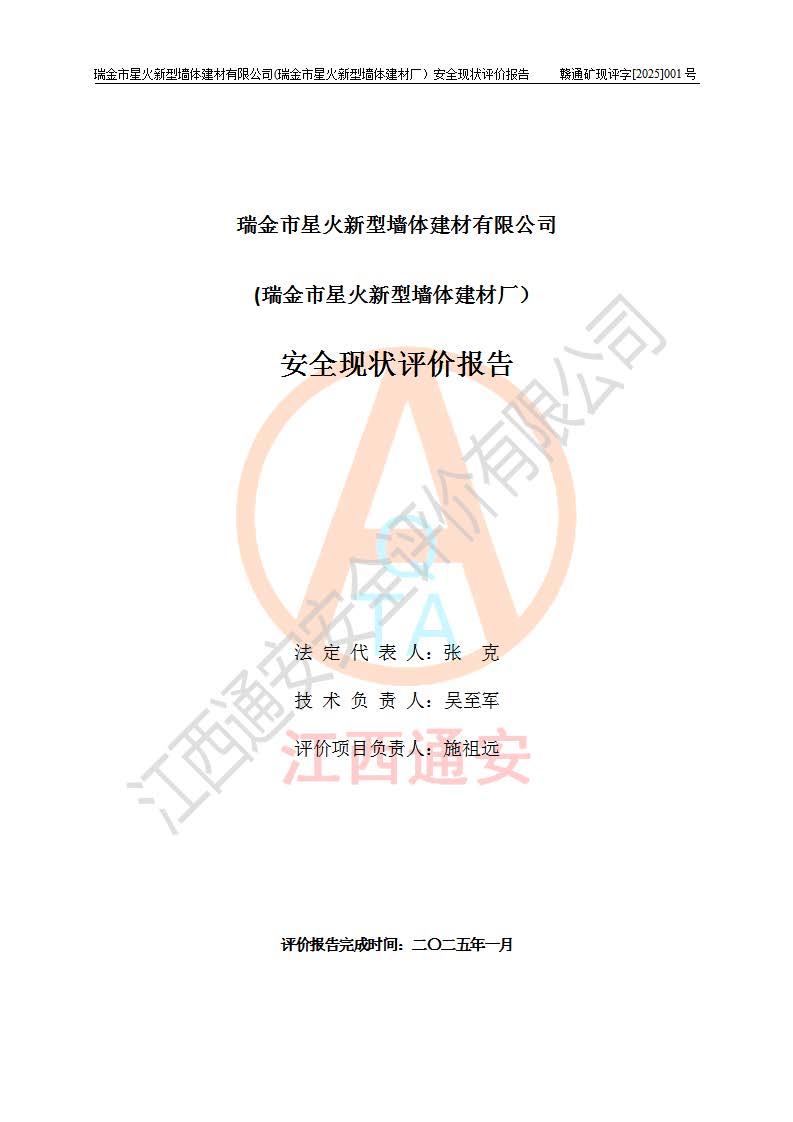 項(xiàng)目名稱 | 瑞金市星火新型墻體建材有限公司(瑞金市星火新型墻體建材廠)安全現(xiàn)狀評(píng)價(jià)報(bào)告 | ||||