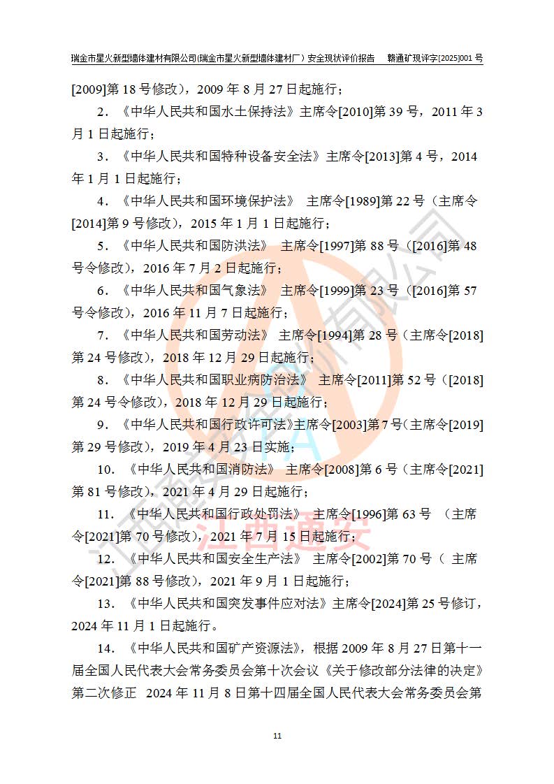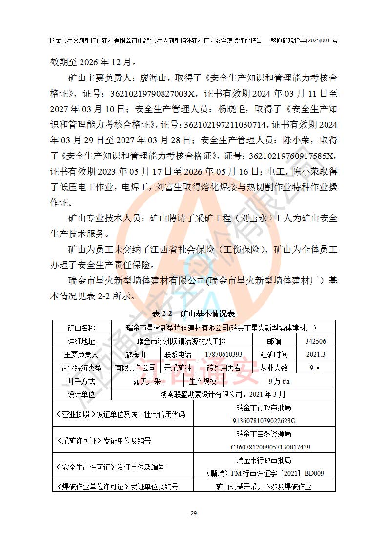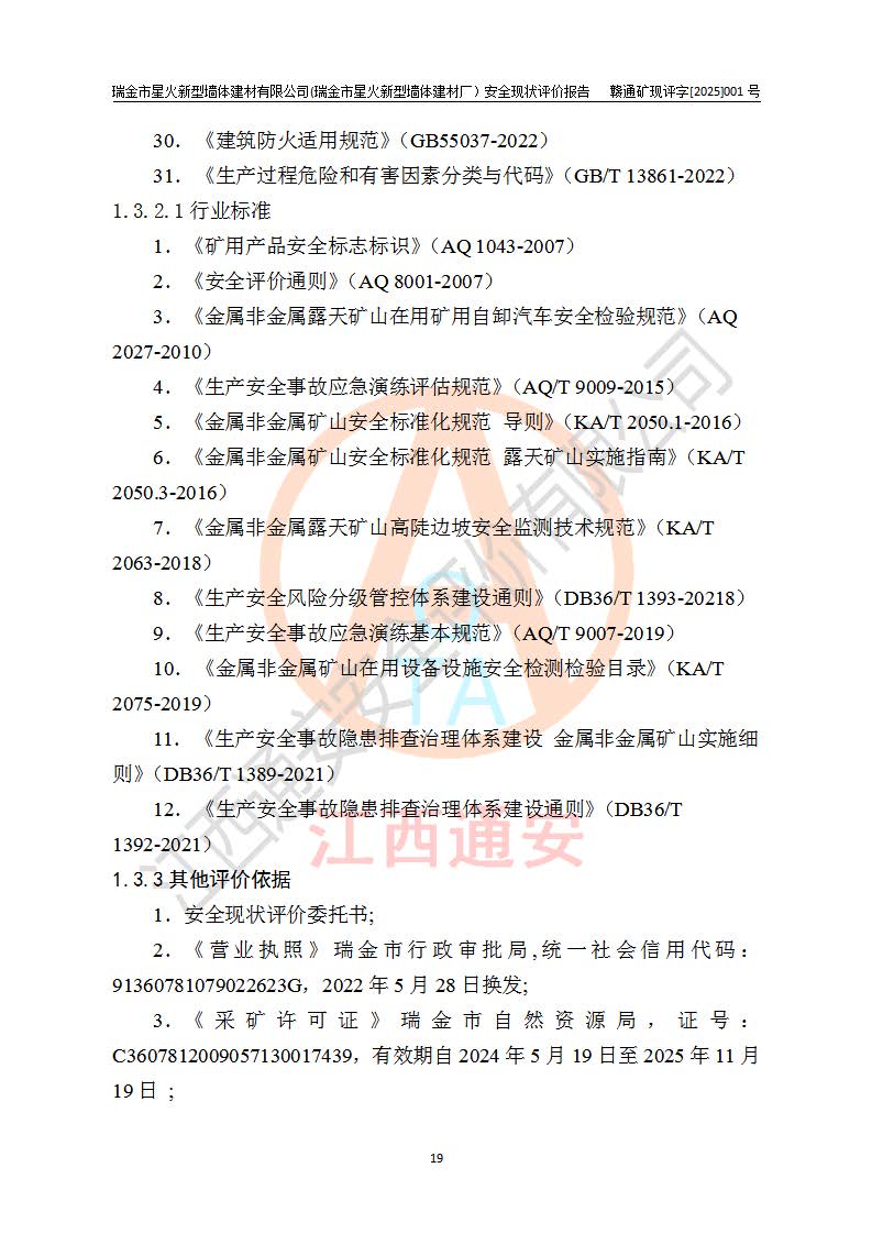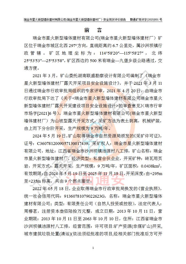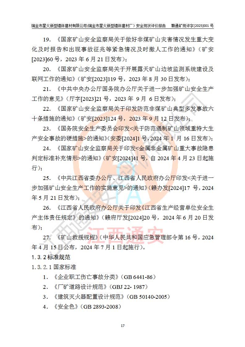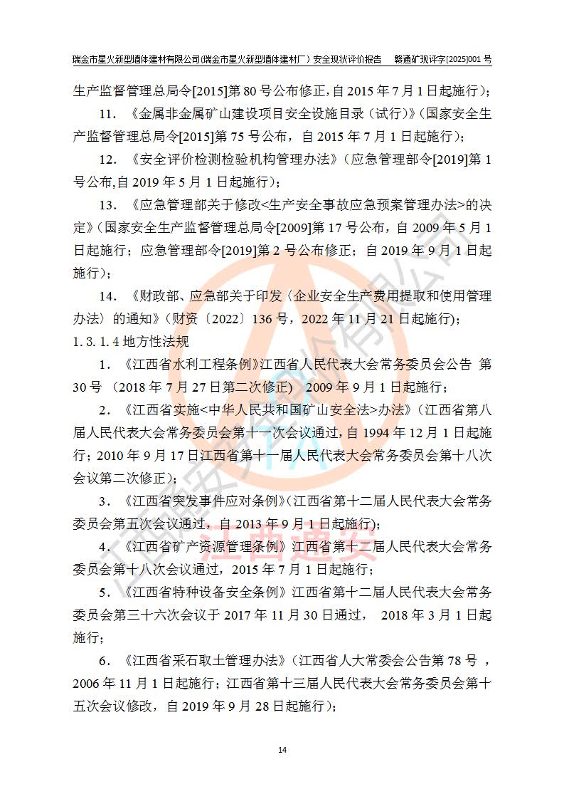 項(xiàng)目名稱 | 瑞金市星火新型墻體建材有限公司(瑞金市星火新型墻體建材廠)安全現(xiàn)狀評(píng)價(jià)報(bào)告 | ||||