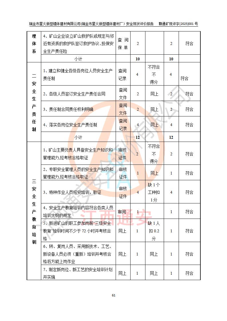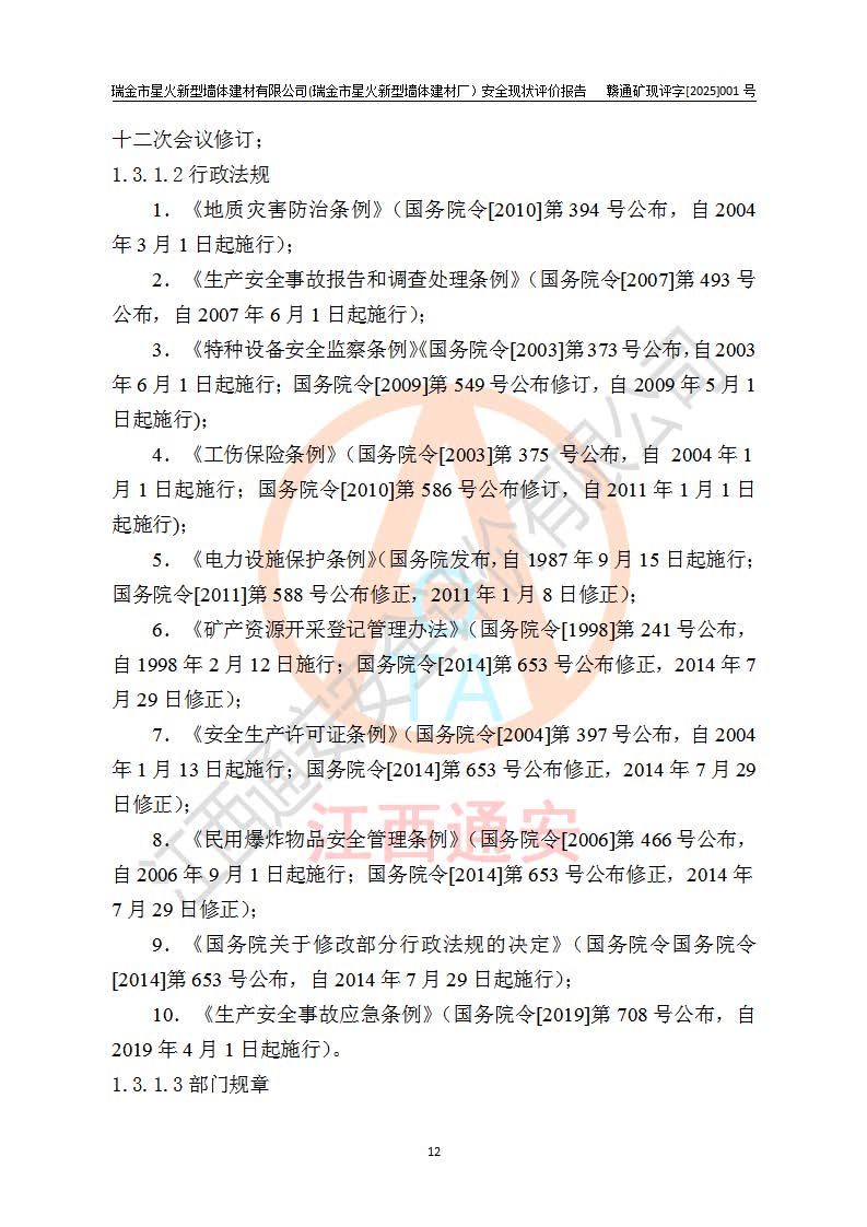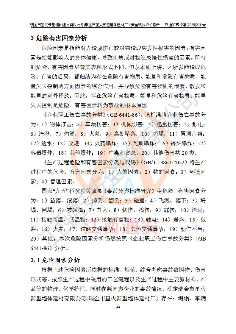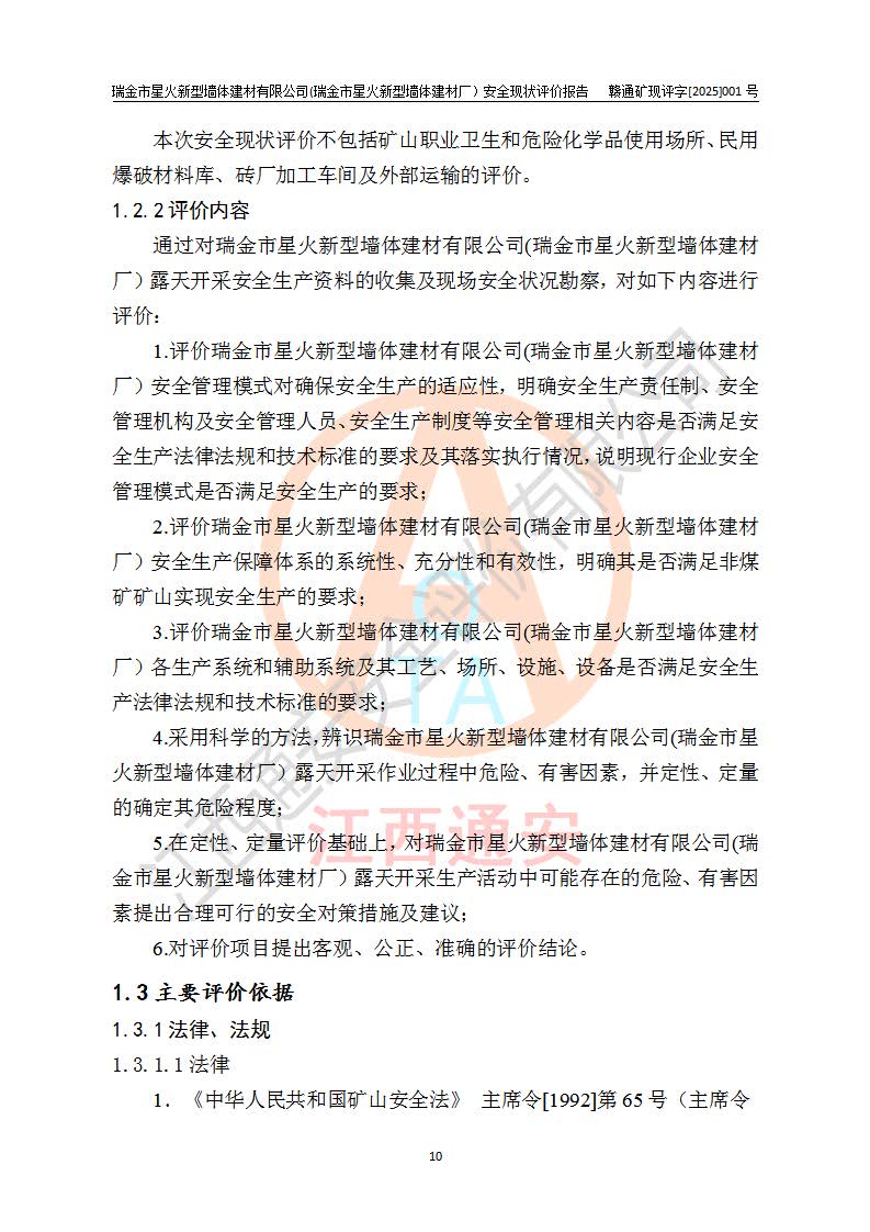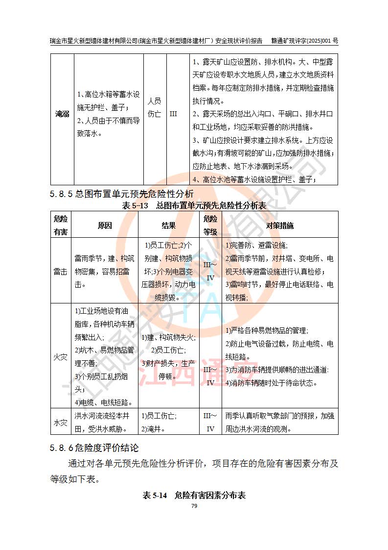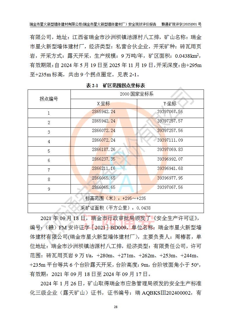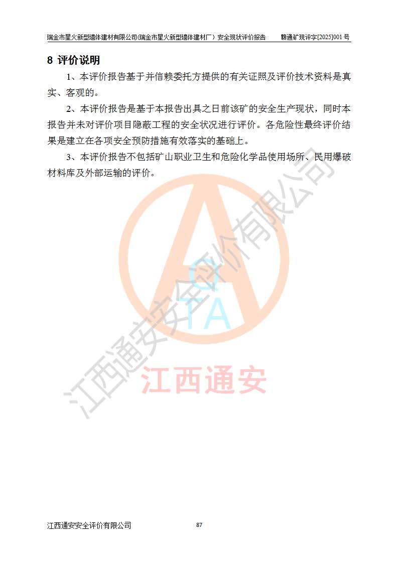 項(xiàng)目名稱 | 瑞金市星火新型墻體建材有限公司(瑞金市星火新型墻體建材廠)安全現(xiàn)狀評(píng)價(jià)報(bào)告 | ||||