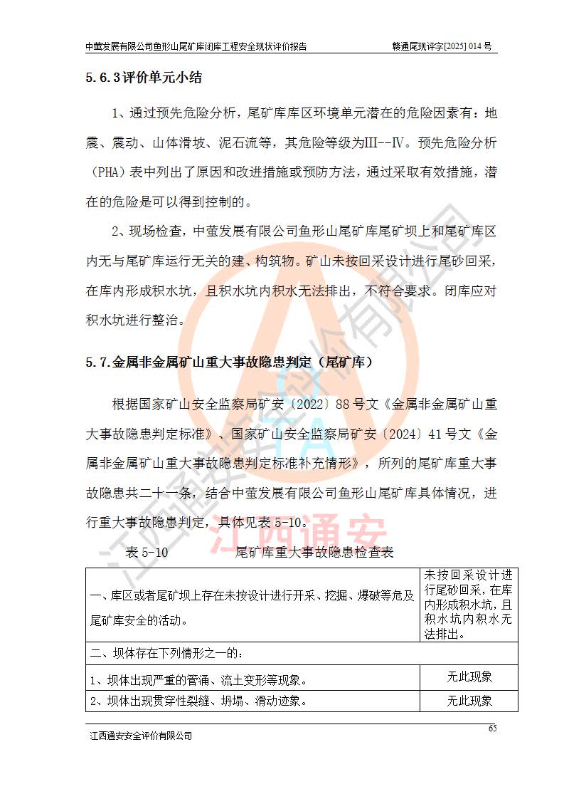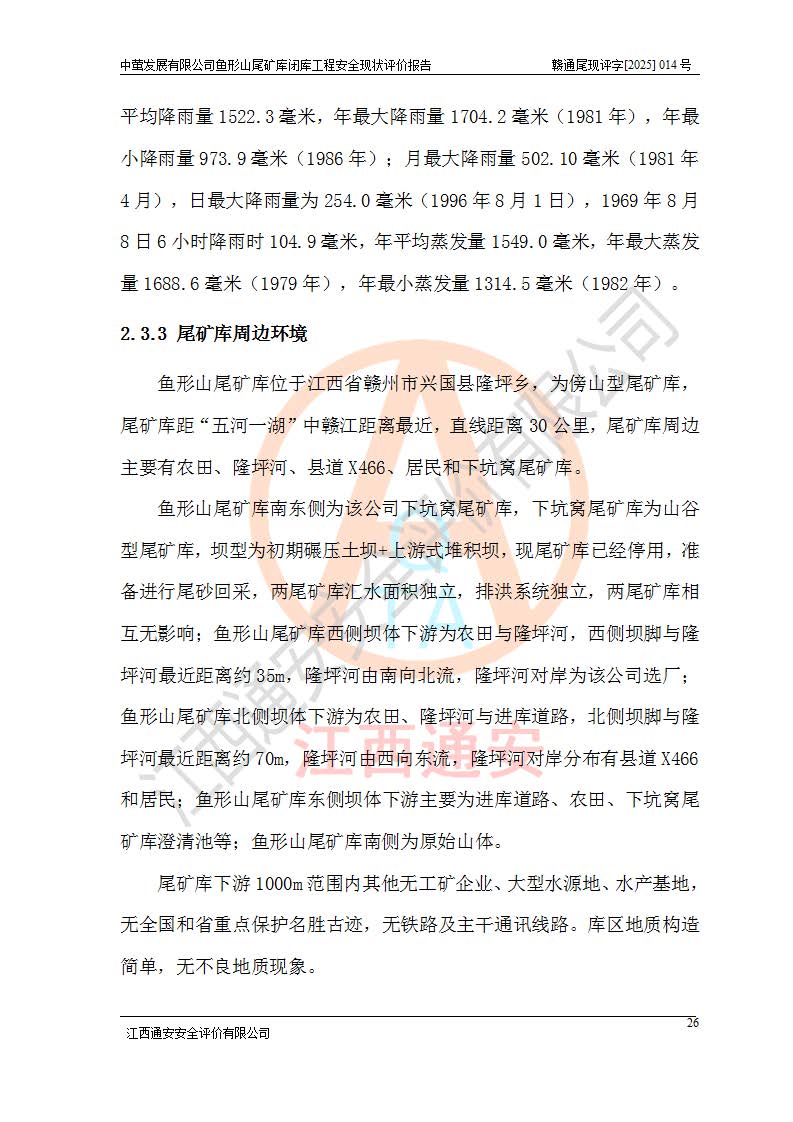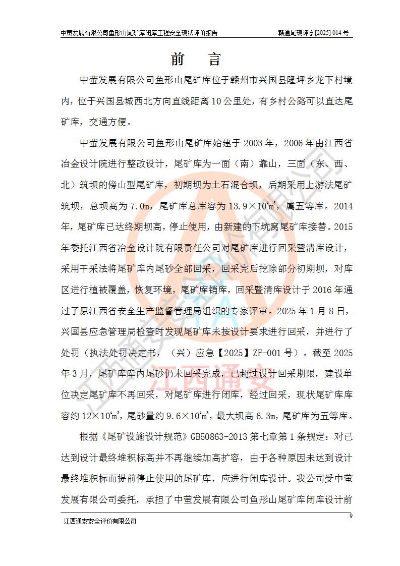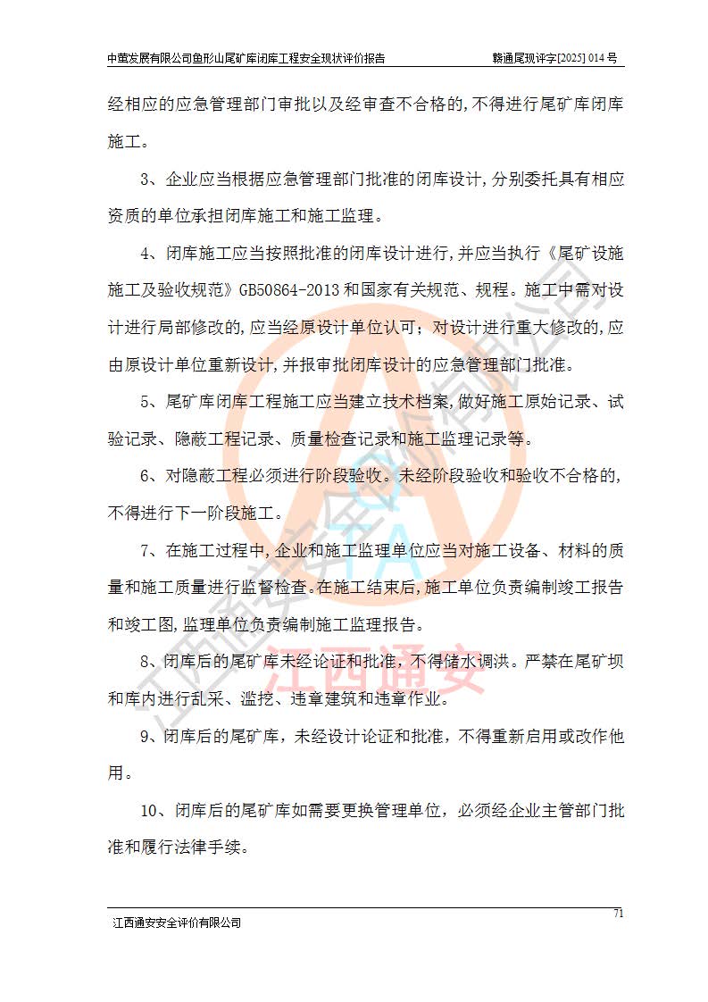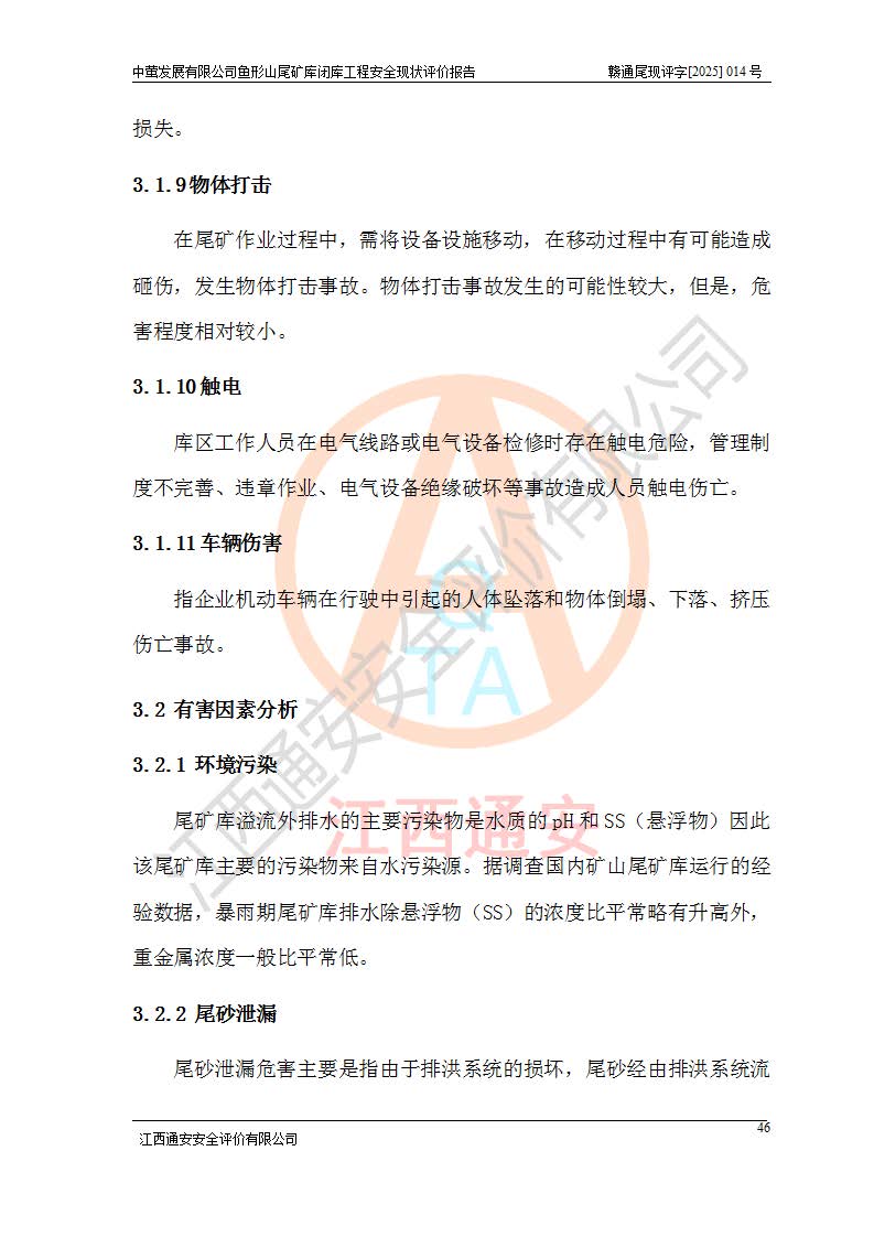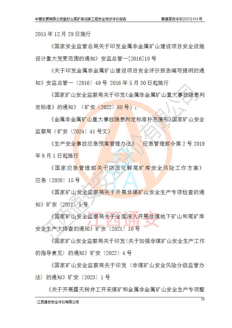存在的問題: 1、初期壩未設(shè)置排水棱體,下游坡比較陡,初期壩壩頂被尾砂掩埋,尾礦壩穩(wěn)定性不滿足規(guī)范要求; 2、堆積壩外坡比較陡,不滿足規(guī)范要求,東側(cè)整個尾礦壩已被下游尾砂堆掩埋,堆積壩未設(shè)置壩面排水溝,未采取護(hù)坡措施,有沖刷拉溝現(xiàn)象; 3、原有排洪水系統(tǒng)已被尾砂掩埋,封堵情況不詳,現(xiàn)狀排水管泄流能力不滿足要求,且進(jìn)水口位于子壩壩前,子壩直接擋水,干灘長度不滿足要求; 4、尾礦壩上未設(shè)置安全監(jiān)測設(shè)施,安全標(biāo)志偏少; 5、未按設(shè)計進(jìn)行尾砂回采,在庫內(nèi)形成積水坑,且積水坑內(nèi)積水無法排出; 6、尾礦庫不再進(jìn)行尾砂回采,也不再使用,應(yīng)進(jìn)行閉庫。 整改措施: 1、在初期壩下游增設(shè)干砌塊石貼坡排水體,增加壩體穩(wěn)定性,在北側(cè)和東側(cè)初期壩壩腳增設(shè)壩腳排水溝。 2、對堆積壩削坡,增加壩體的穩(wěn)定性,削坡后覆土植草皮護(hù)坡,修建壩面壩肩排水溝。 3、新建溢洪道用于閉庫后尾礦庫排洪排水,拆除現(xiàn)有排水管;對原排洪系統(tǒng)進(jìn)行封堵。 4、閉庫時在尾礦壩上增設(shè)安全監(jiān)測設(shè)施,增設(shè)安全標(biāo)志。 5、對庫內(nèi)積水坑進(jìn)行平整。 6、應(yīng)進(jìn)行閉庫,整治尾礦庫庫內(nèi)干灘面,為防止干灘面水土流失,覆土植草,覆土范圍為整個庫區(qū)范圍。在庫內(nèi)干灘面設(shè)置庫面排水溝,截洪溝、新建溢洪道,形成庫內(nèi)排水網(wǎng),能**的將庫內(nèi)雨水排至庫外。 |