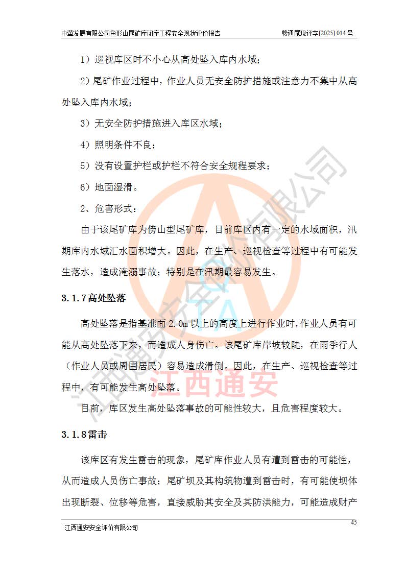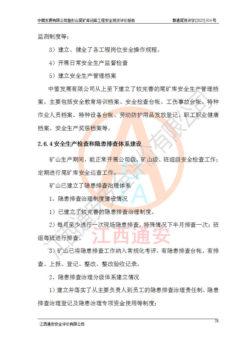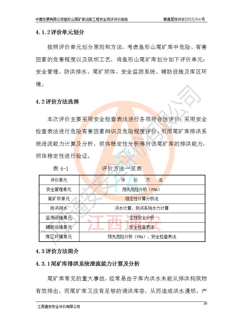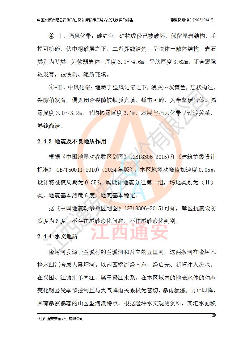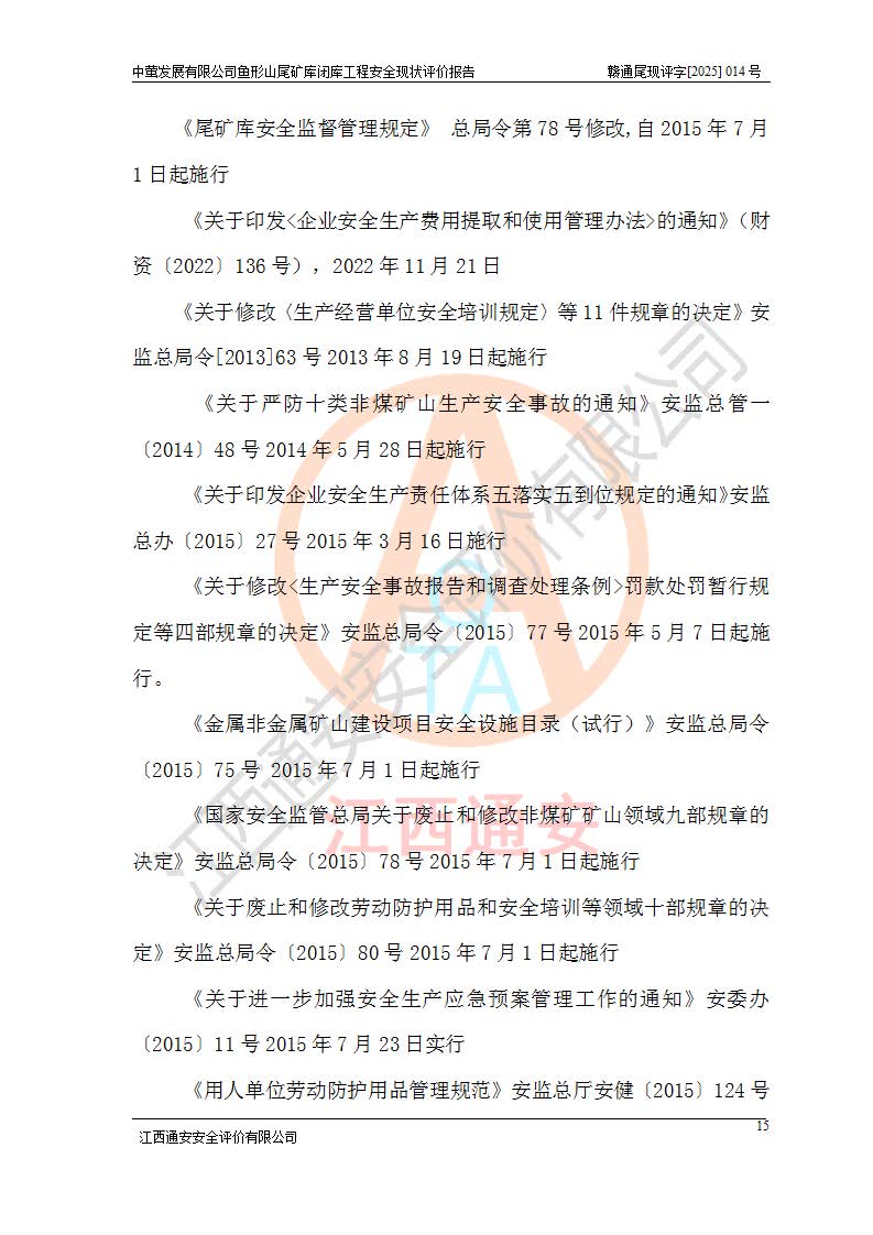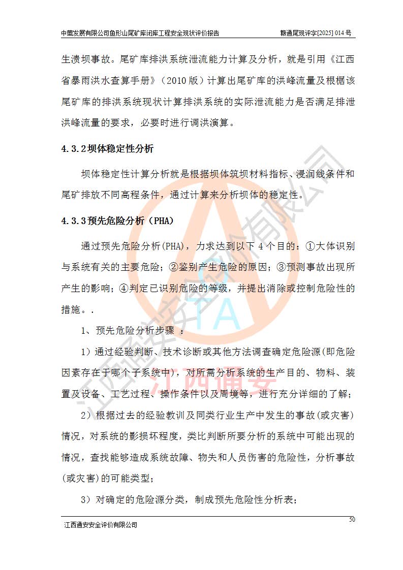 存在的問題: 1、初期壩未設(shè)置排水棱體,下游坡比較陡,初期壩壩頂被尾砂掩埋,尾礦壩穩(wěn)定性不滿足規(guī)范要求; 2、堆積壩外坡比較陡,不滿足規(guī)范要求,東側(cè)整個尾礦壩已被下游尾砂堆掩埋,堆積壩未設(shè)置壩面排水溝,未采取護(hù)坡措施,有沖刷拉溝現(xiàn)象; 3、原有排洪水系統(tǒng)已被尾砂掩埋,封堵情況不詳,現(xiàn)狀排水管泄流能力不滿足要求,且進(jìn)水口位于子壩壩前,子壩直接擋水,干灘長度不滿足要求; 4、尾礦壩上未設(shè)置安全監(jiān)測設(shè)施,安全標(biāo)志偏少; 5、未按設(shè)計進(jìn)行尾砂回采,在庫內(nèi)形成積水坑,且積水坑內(nèi)積水無法排出; 6、尾礦庫不再進(jìn)行尾砂回采,也不再使用,應(yīng)進(jìn)行閉庫。 整改措施: 1、在初期壩下游增設(shè)干砌塊石貼坡排水體,增加壩體穩(wěn)定性,在北側(cè)和東側(cè)初期壩壩腳增設(shè)壩腳排水溝。 2、對堆積壩削坡,增加壩體的穩(wěn)定性,削坡后覆土植草皮護(hù)坡,修建壩面壩肩排水溝。 3、新建溢洪道用于閉庫后尾礦庫排洪排水,拆除現(xiàn)有排水管;對原排洪系統(tǒng)進(jìn)行封堵。 4、閉庫時在尾礦壩上增設(shè)安全監(jiān)測設(shè)施,增設(shè)安全標(biāo)志。 5、對庫內(nèi)積水坑進(jìn)行平整。 6、應(yīng)進(jìn)行閉庫,整治尾礦庫庫內(nèi)干灘面,為防止干灘面水土流失,覆土植草,覆土范圍為整個庫區(qū)范圍。在庫內(nèi)干灘面設(shè)置庫面排水溝,截洪溝、新建溢洪道,形成庫內(nèi)排水網(wǎng),能**的將庫內(nèi)雨水排至庫外。 |