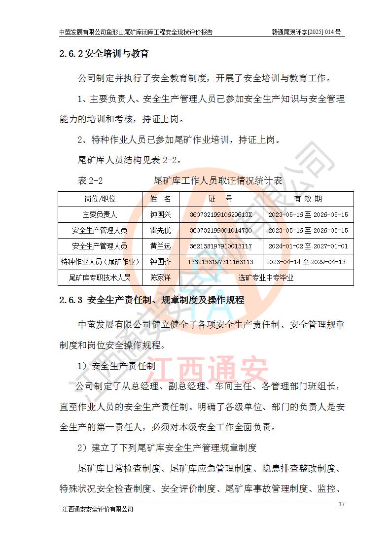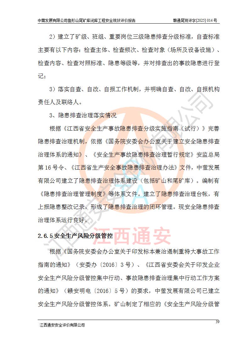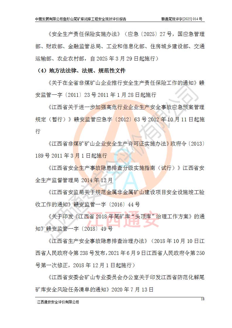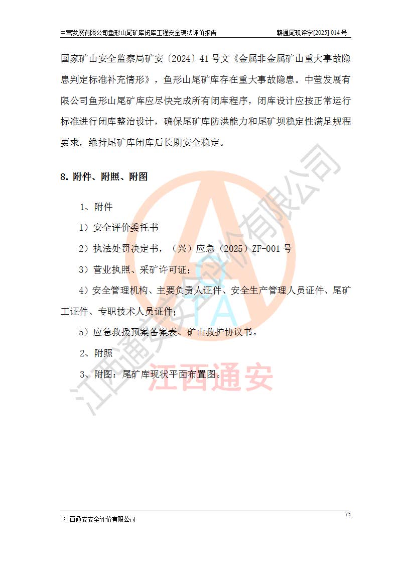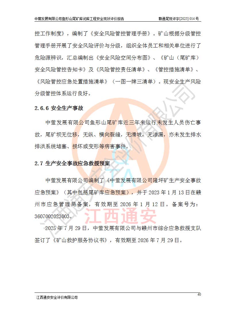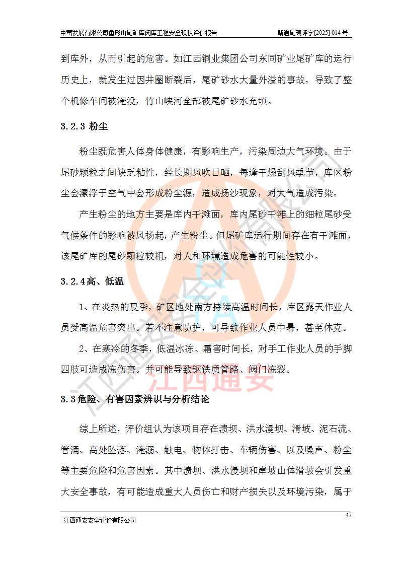 存在的問題: 1、初期壩未設(shè)置排水棱體,下游坡比較陡,初期壩壩頂被尾砂掩埋,尾礦壩穩(wěn)定性不滿足規(guī)范要求; 2、堆積壩外坡比較陡,不滿足規(guī)范要求,東側(cè)整個尾礦壩已被下游尾砂堆掩埋,堆積壩未設(shè)置壩面排水溝,未采取護(hù)坡措施,有沖刷拉溝現(xiàn)象; 3、原有排洪水系統(tǒng)已被尾砂掩埋,封堵情況不詳,現(xiàn)狀排水管泄流能力不滿足要求,且進(jìn)水口位于子壩壩前,子壩直接擋水,干灘長度不滿足要求; 4、尾礦壩上未設(shè)置安全監(jiān)測設(shè)施,安全標(biāo)志偏少; 5、未按設(shè)計進(jìn)行尾砂回采,在庫內(nèi)形成積水坑,且積水坑內(nèi)積水無法排出; 6、尾礦庫不再進(jìn)行尾砂回采,也不再使用,應(yīng)進(jìn)行閉庫。 整改措施: 1、在初期壩下游增設(shè)干砌塊石貼坡排水體,增加壩體穩(wěn)定性,在北側(cè)和東側(cè)初期壩壩腳增設(shè)壩腳排水溝。 2、對堆積壩削坡,增加壩體的穩(wěn)定性,削坡后覆土植草皮護(hù)坡,修建壩面壩肩排水溝。 3、新建溢洪道用于閉庫后尾礦庫排洪排水,拆除現(xiàn)有排水管;對原排洪系統(tǒng)進(jìn)行封堵。 4、閉庫時在尾礦壩上增設(shè)安全監(jiān)測設(shè)施,增設(shè)安全標(biāo)志。 5、對庫內(nèi)積水坑進(jìn)行平整。 6、應(yīng)進(jìn)行閉庫,整治尾礦庫庫內(nèi)干灘面,為防止干灘面水土流失,覆土植草,覆土范圍為整個庫區(qū)范圍。在庫內(nèi)干灘面設(shè)置庫面排水溝,截洪溝、新建溢洪道,形成庫內(nèi)排水網(wǎng),能**的將庫內(nèi)雨水排至庫外。 |